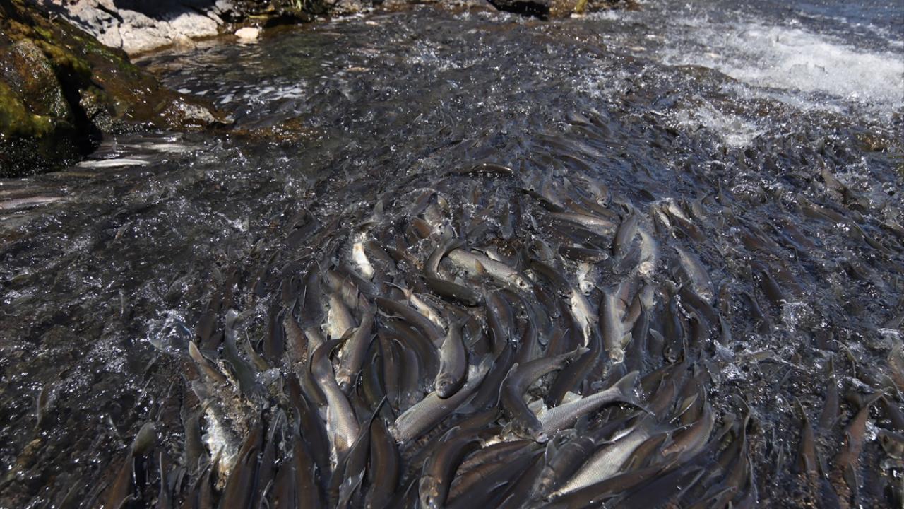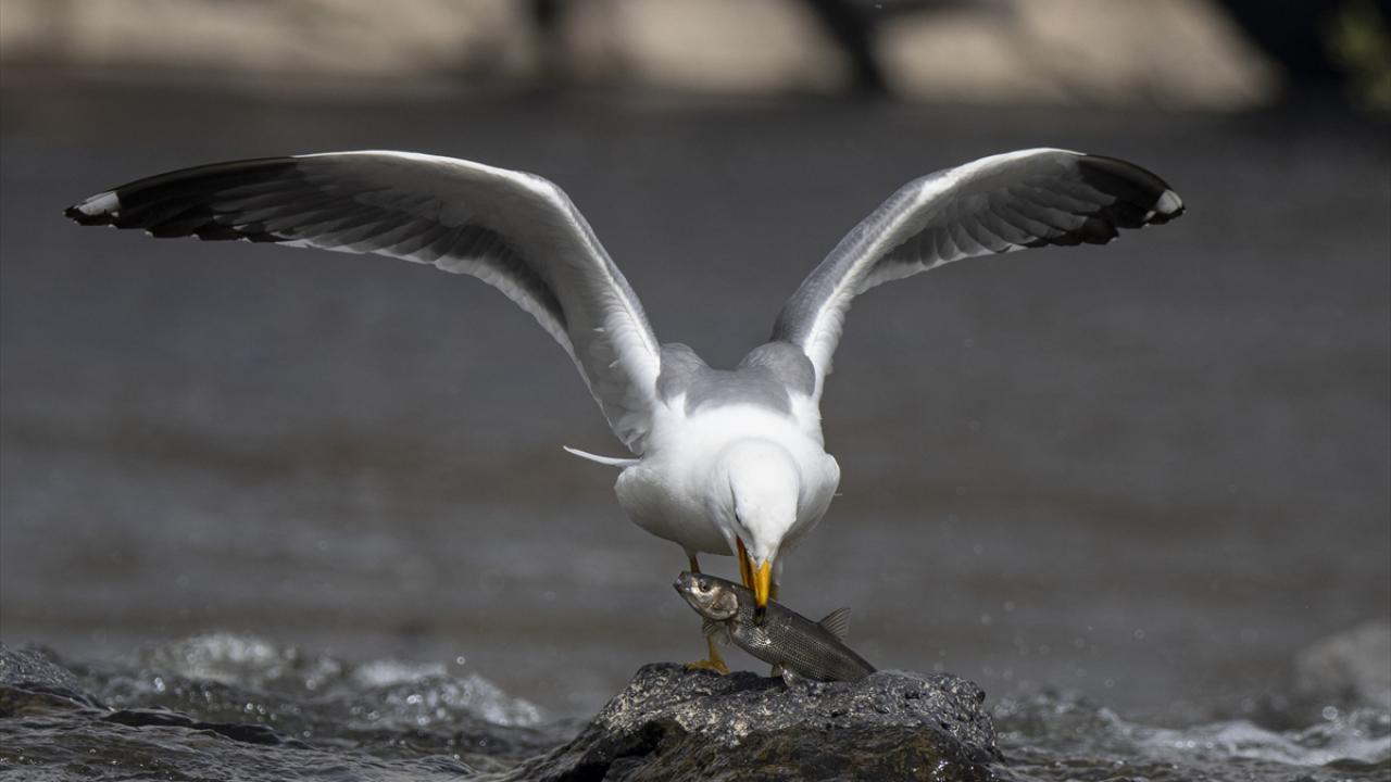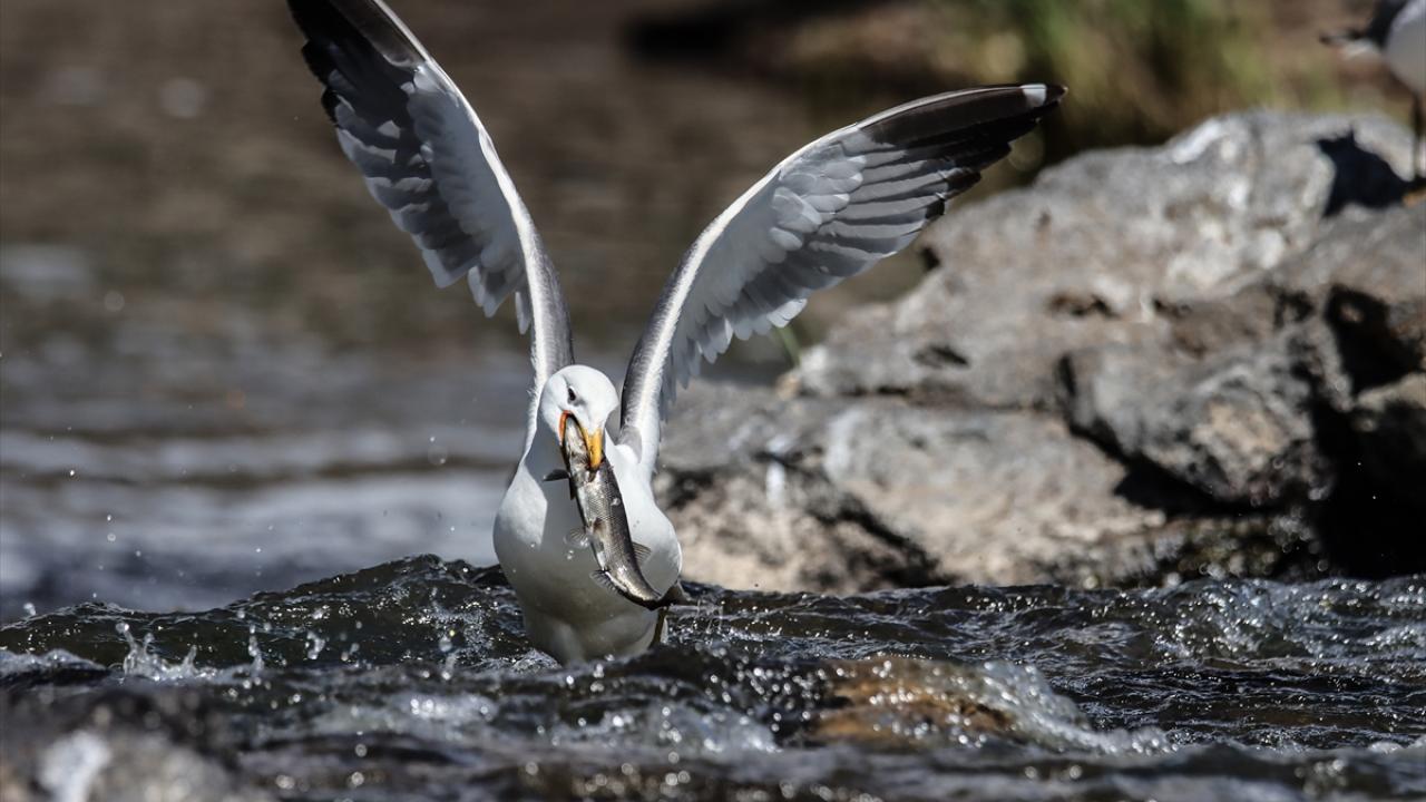 Göç eden balıkların martılar tarafından avlanması ise ilginç görüntüler oluşturdu.