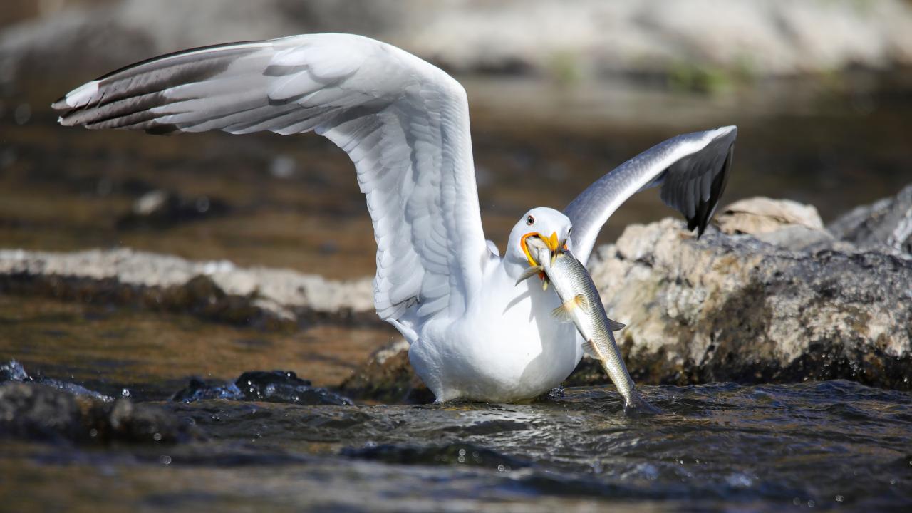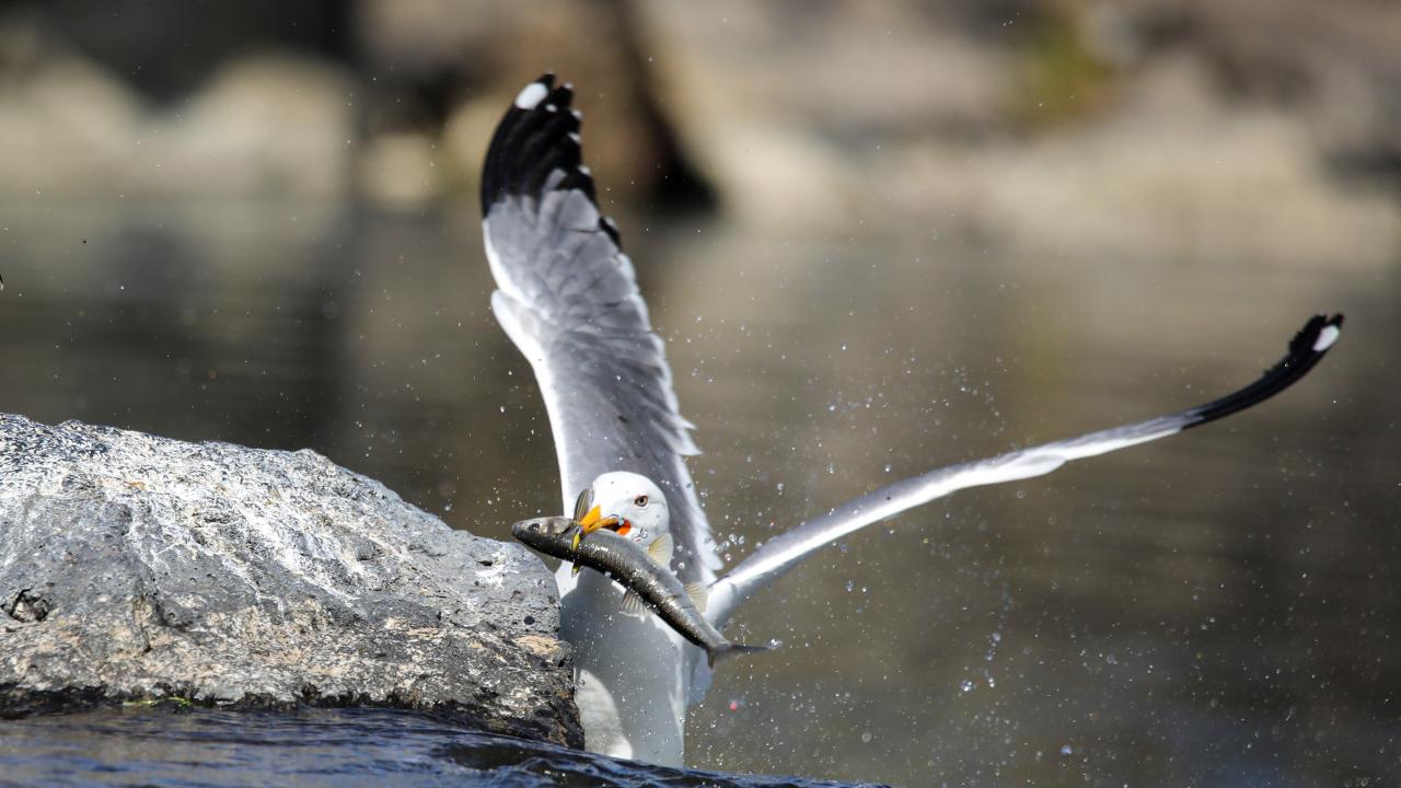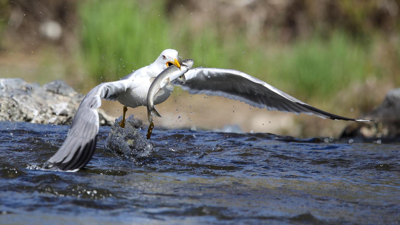 Bölgedeki martılar da su sıcaklığının yeterli seviyeye ulaşmasıyla tatlı sularda daha çok görülen balıkları avlayarak besleniyor.
