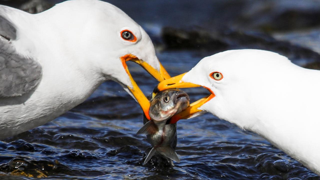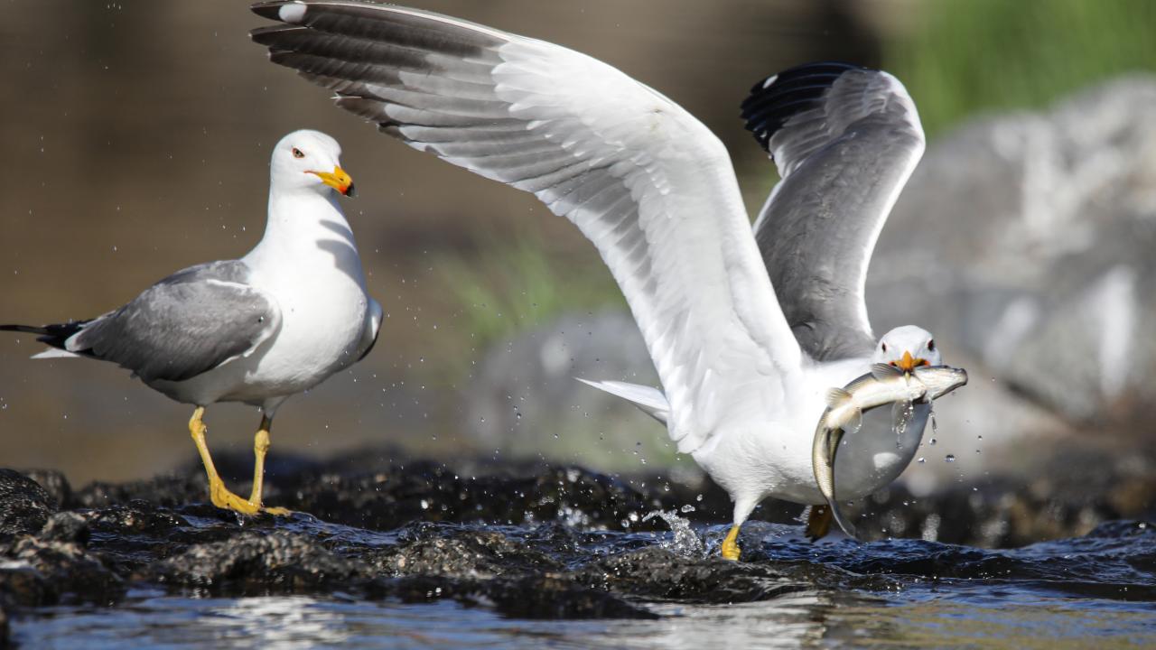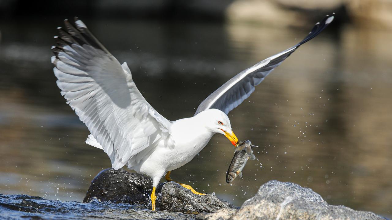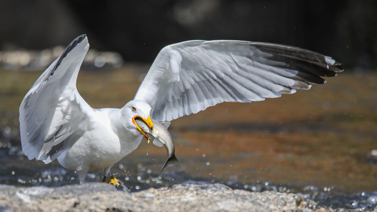 Bölgedeki martılar da su sıcaklığının yeterli seviyeye ulaşmasıyla tatlı sularda daha çok görülen balıkları avlayarak besleniyor.