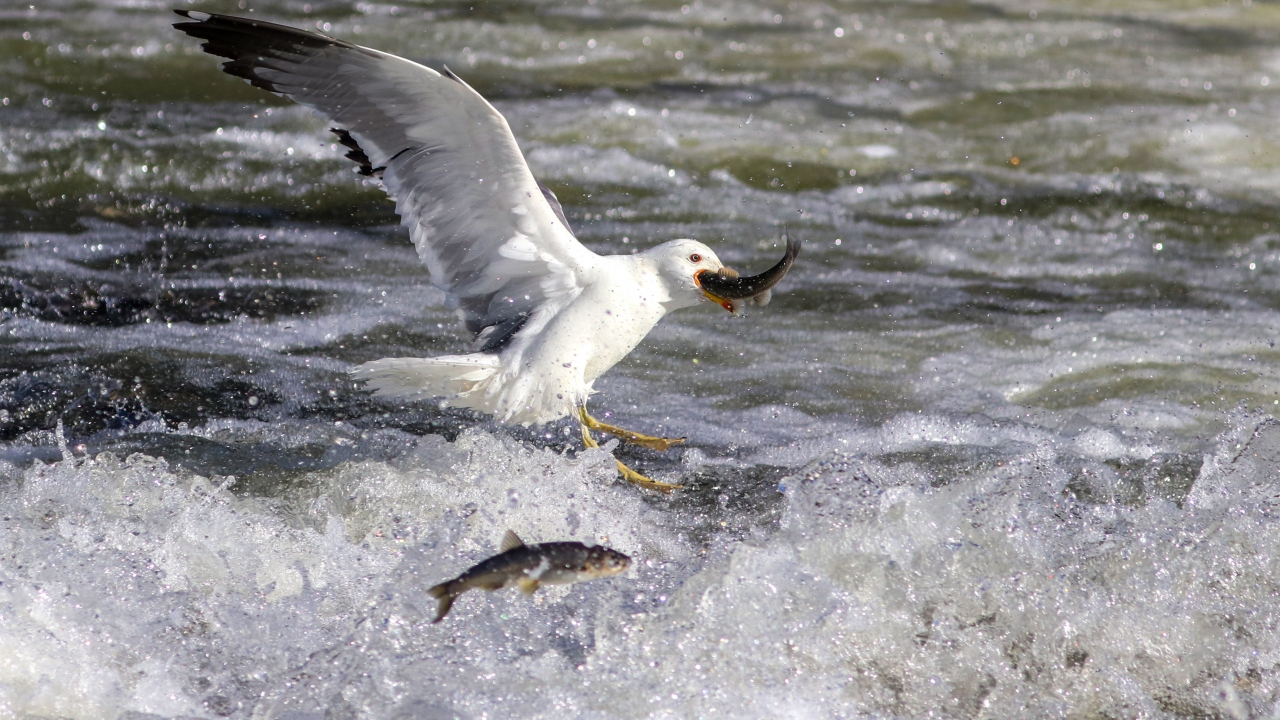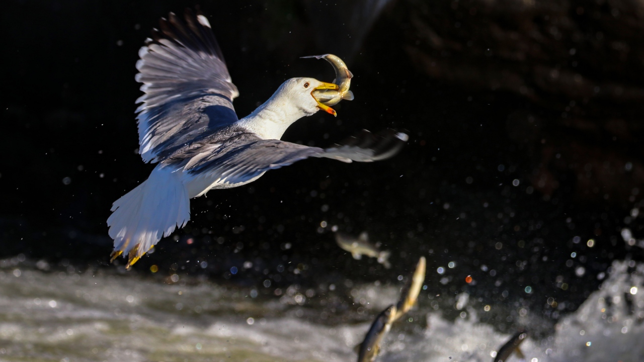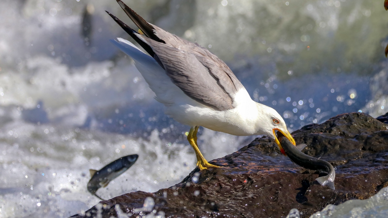 Van Gölü çevresinde yaşayan martılar, göç eden balıkları avlayarak besleniyor.