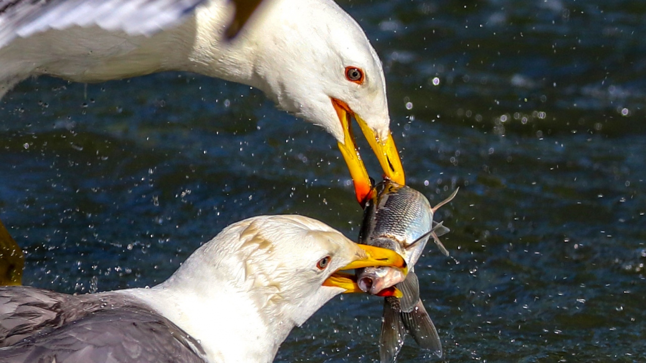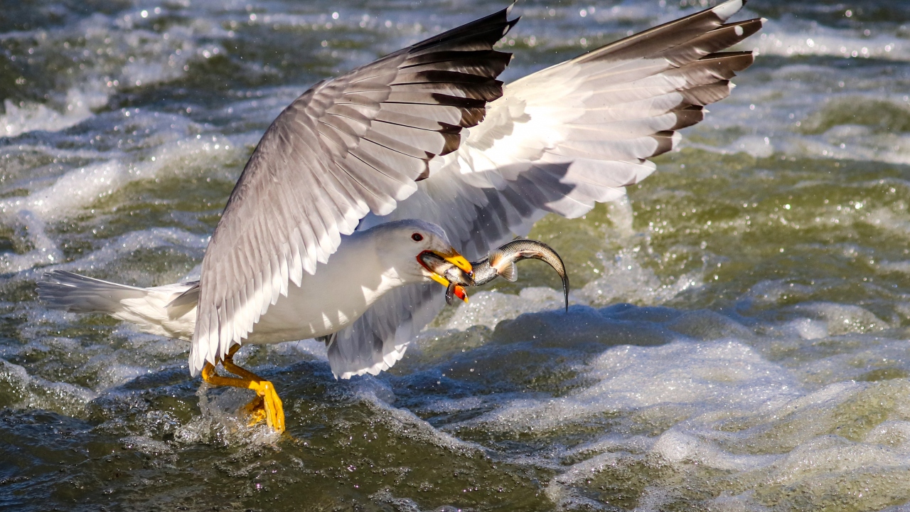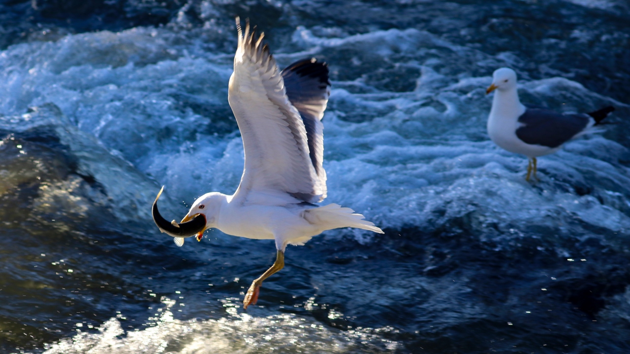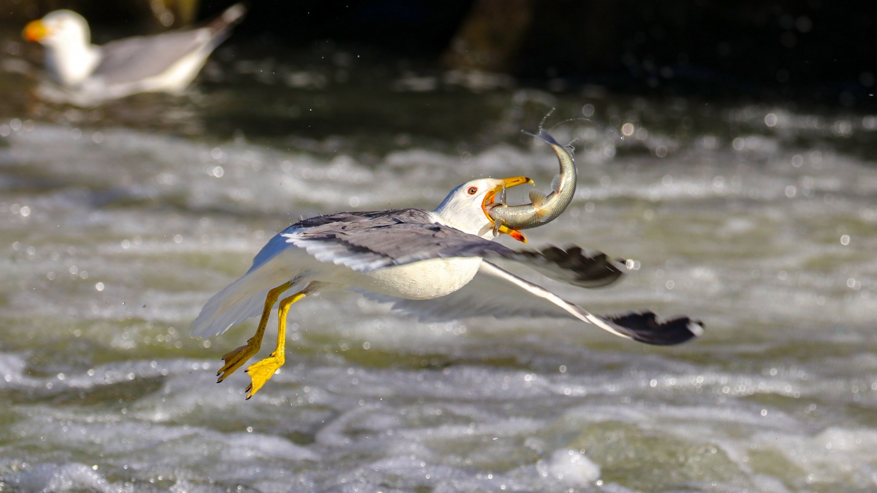 Van Gölü çevresinde yaşayan martılar, göç eden balıkları avlayarak besleniyor.