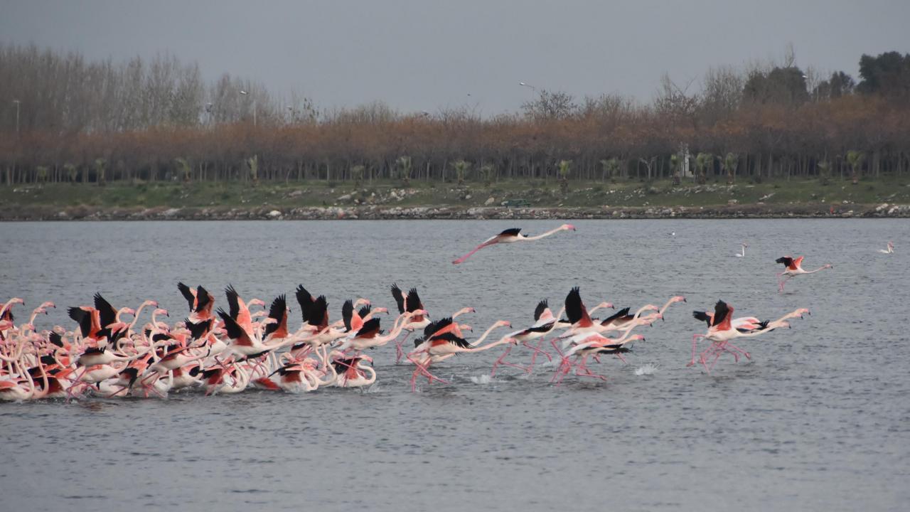 İzmir İnciraltı'nda bulunan ve Türkiye'nin iki kuş üreme sahasından biri olan Çakalburnu Lagünü, flamingolara ev sahipliği yapıyor.