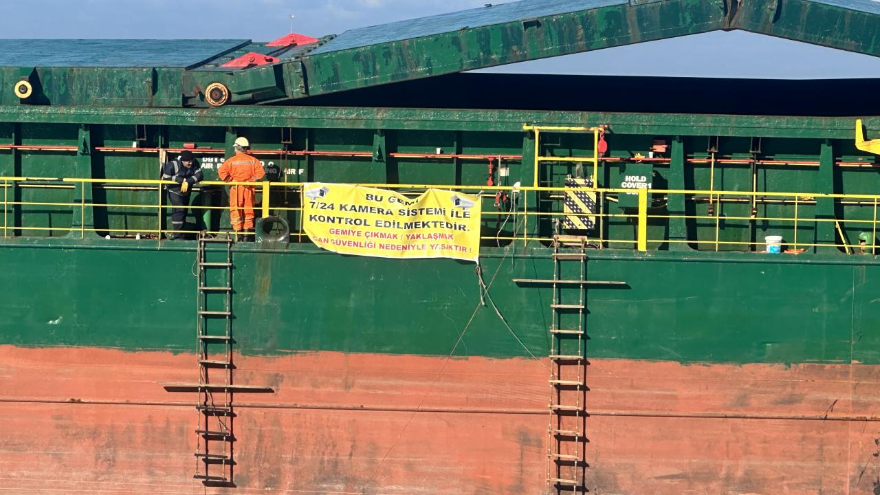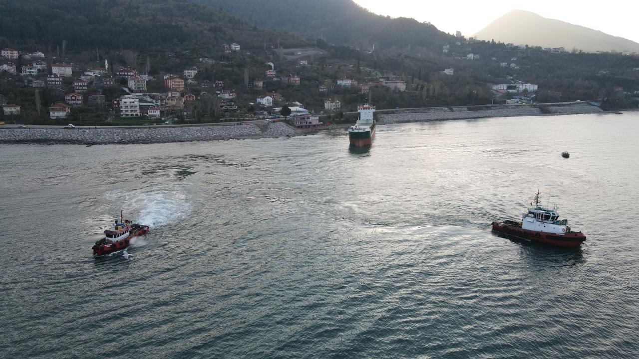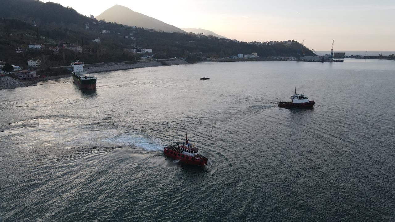 İnebolu Liman Başkanlığı gözetiminde sürdürülen çalışmalar kapsamında kıyıya paralel duran geminin baş kısmı kuzey yönüne doğru çevrildi.