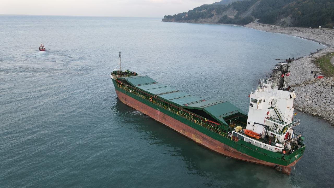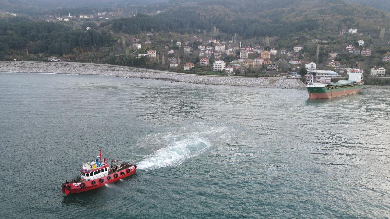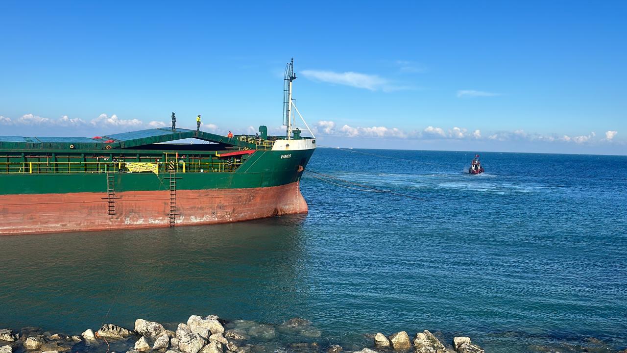 Rusya`dan İnebolu Limanı`na getirdiği üre yükünü boşalttıktan sonra 27 Kasım`da fırtına nedeniyle iskeleden sürüklenerek Karadeniz Mahallesi sahilinde karaya oturan,11 kişilik mürettebatın kurtarıldığı Kamerun bandıralı "Vamos" adlı 3 bin 666 grostonluk yük gemisini bulunduğu yerden çıkarmak için 3 gün önce yapılan ilk deneme başarısız olmuştu.