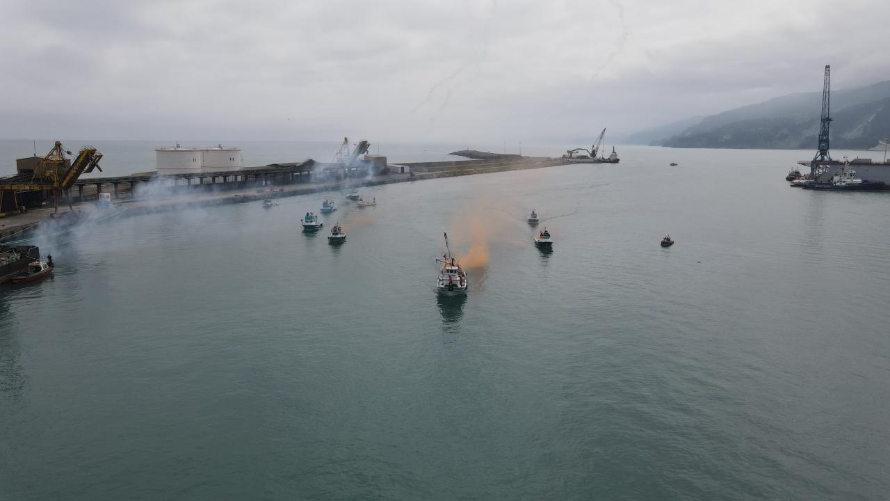 Sahil Güvenlik botu tarafından protokol selamlandı, sonrasında kahramanlık türküleri seslendirildi.