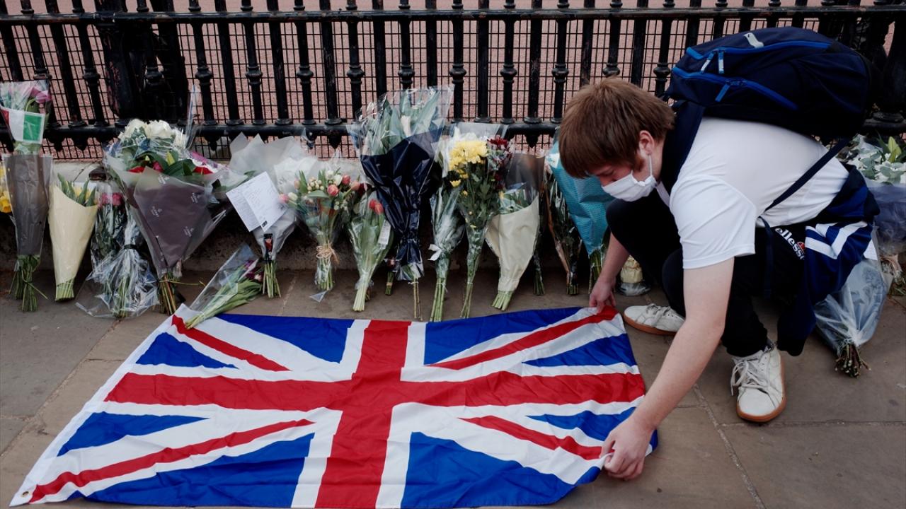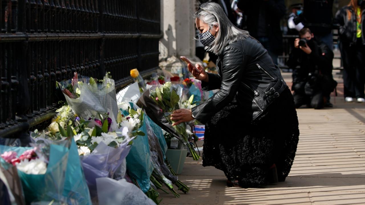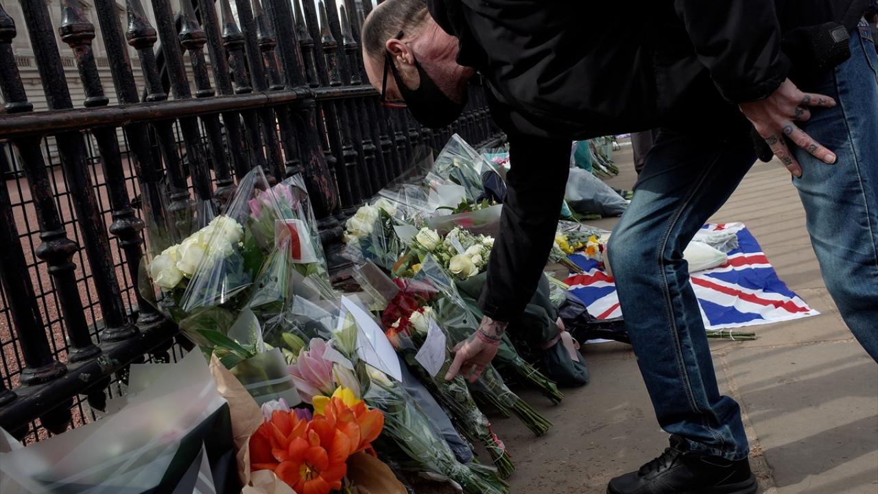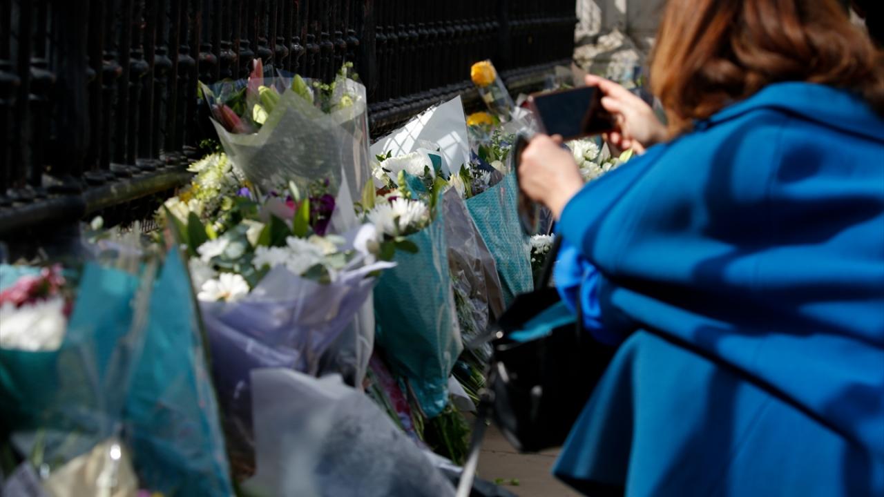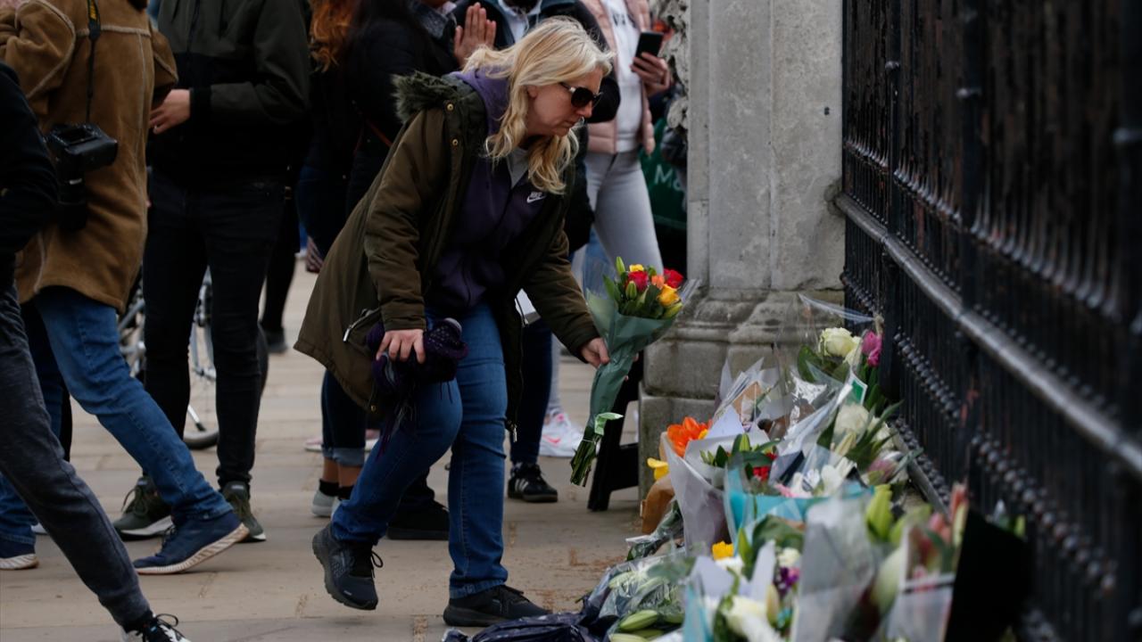 Buckingham Sarayı`nın kapısına çiçek bırakan İngilizler, burada asılı olan “vefat ilanının" fotoğrafını çekmek için uzun kuyruklar oluşturdu.