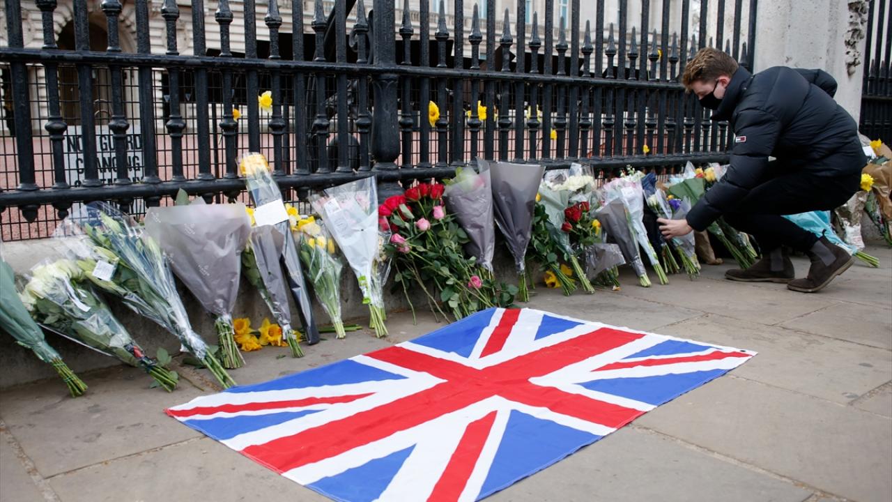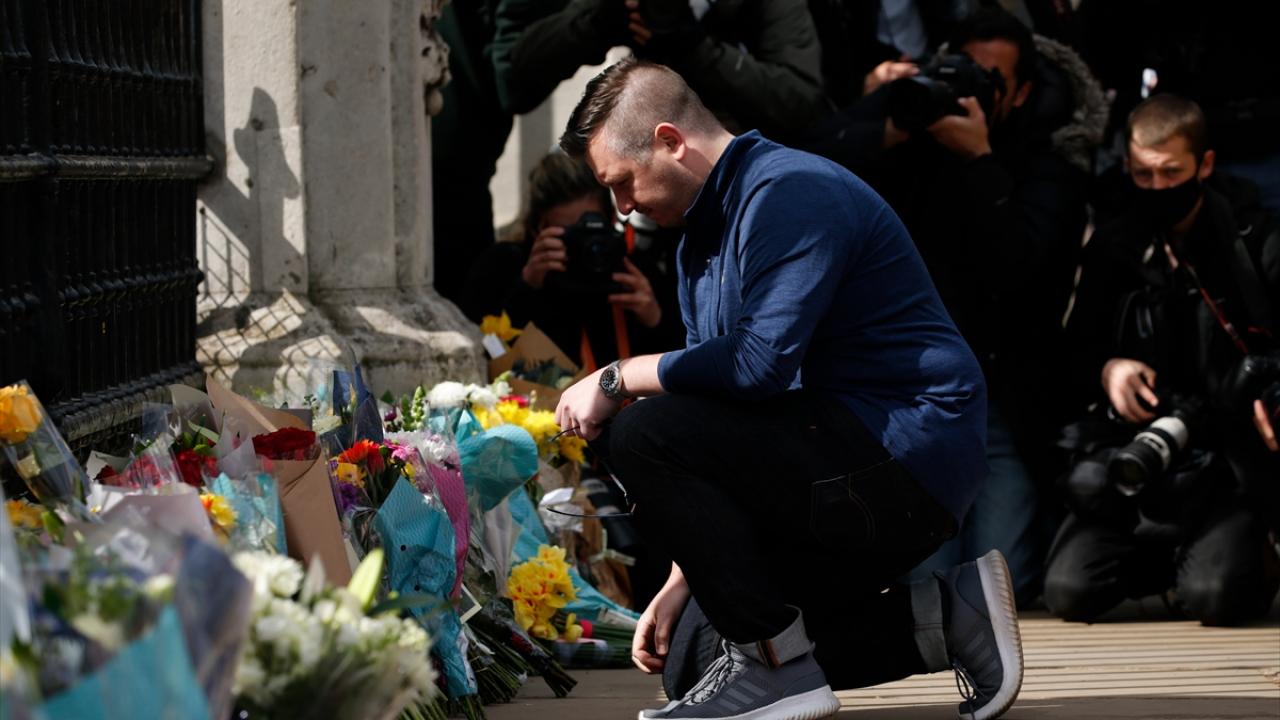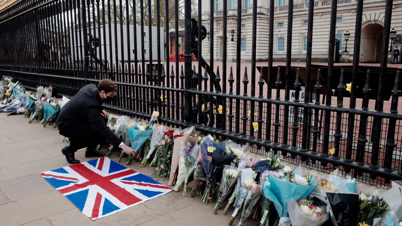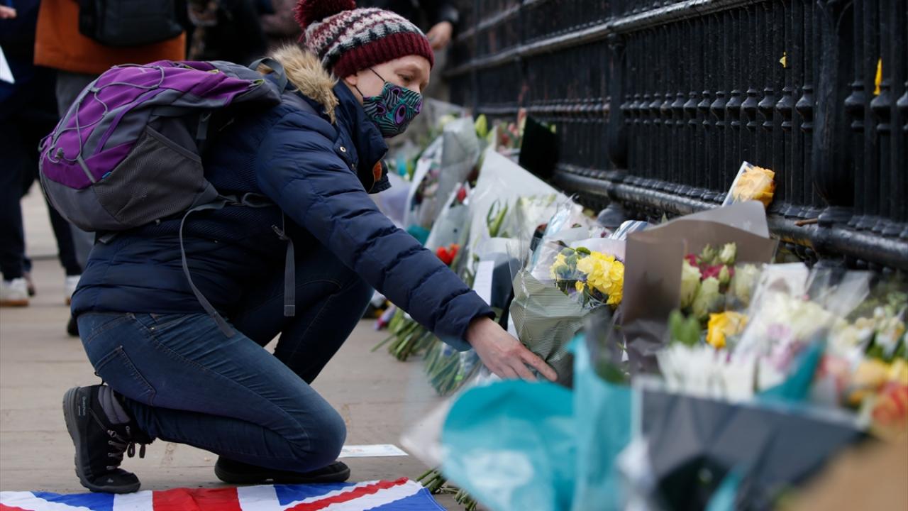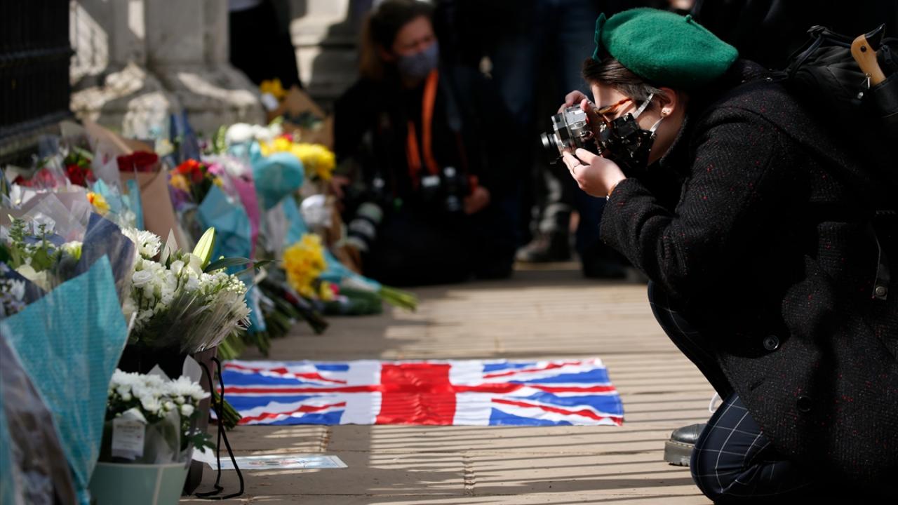 Buckingham Sarayı`nın kapısına çiçek bırakan İngilizler, burada asılı olan “vefat ilanının" fotoğrafını çekmek için uzun kuyruklar oluşturdu.