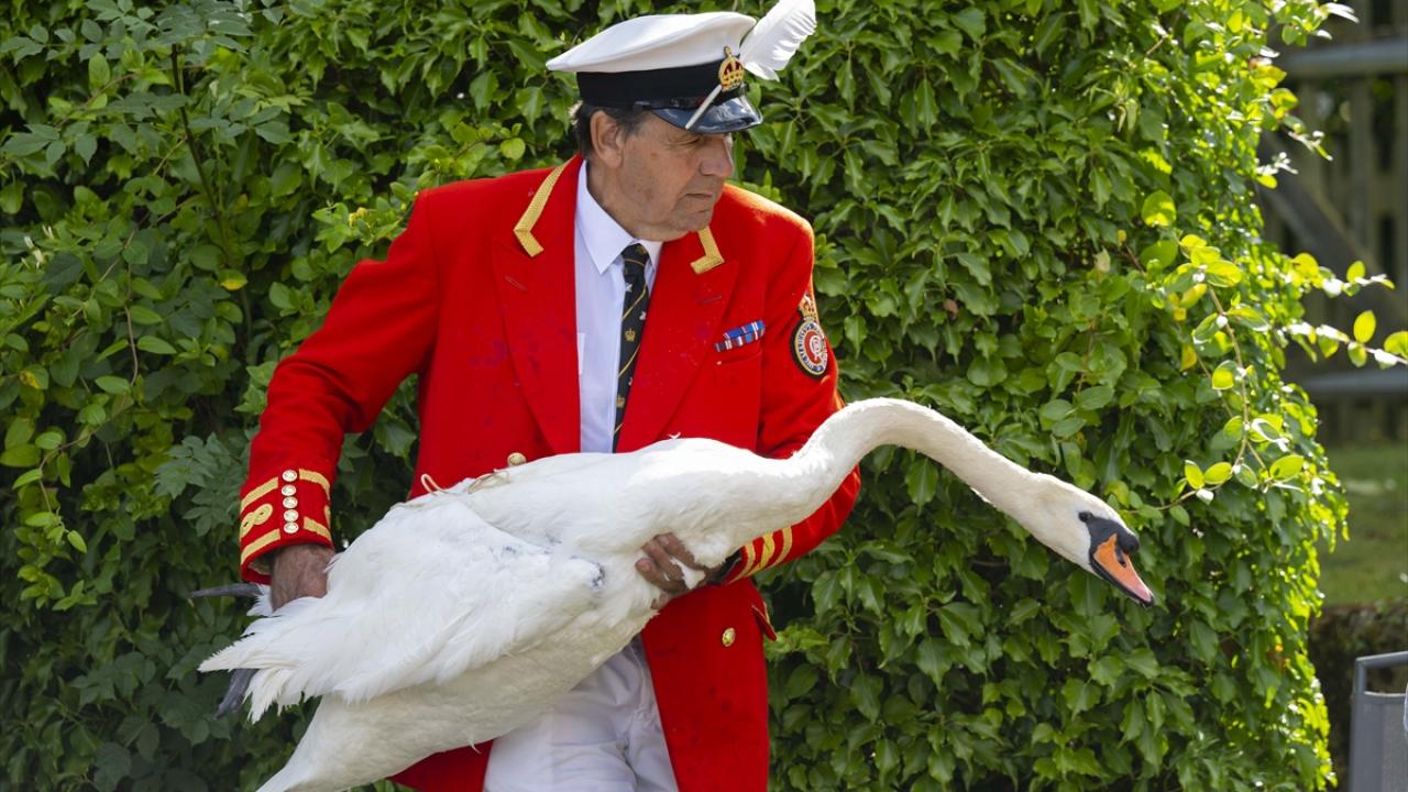 Kralın kuğu işaretçisi olan David Barber, kuğu sayımı yapıyor.