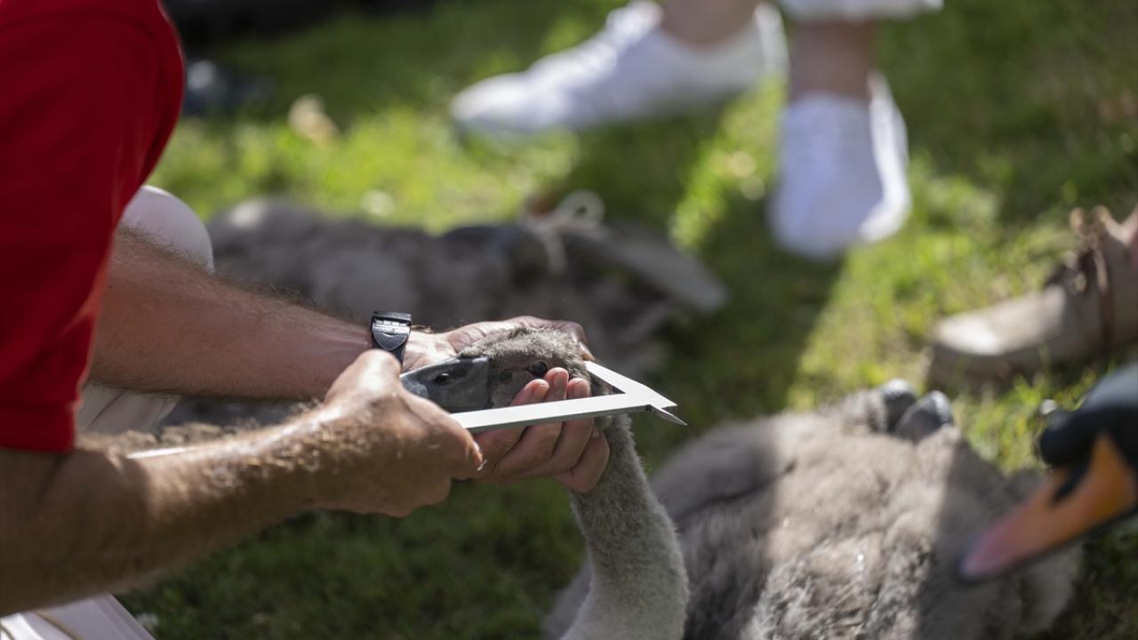 Görevliler sağlık kontrolü, ölçüm ve sayımları da yapıldıktan sonra kuğuları etiketleyerek nehre bıraktı.