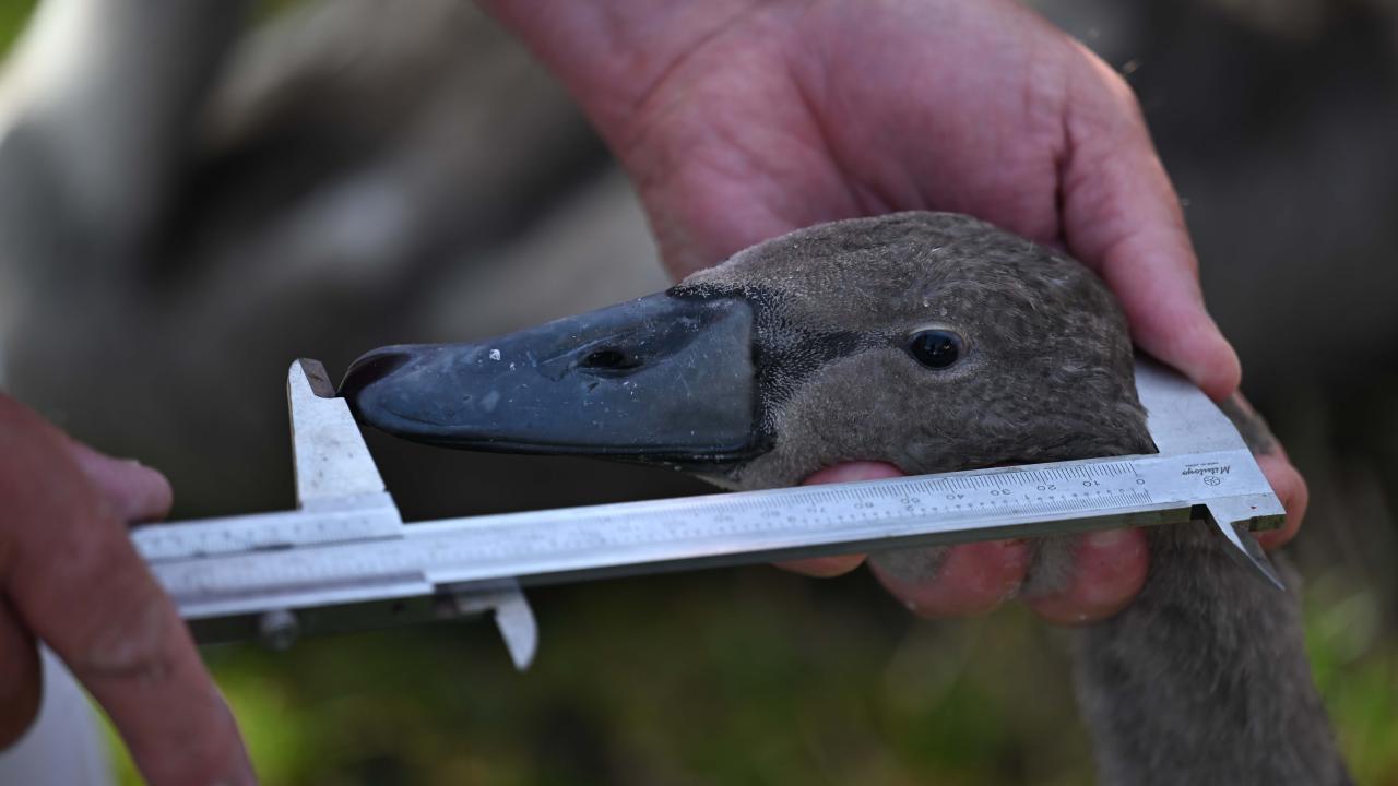 Görevliler sağlık kontrolü, ölçüm ve sayımları da yapıldıktan sonra kuğuları etiketleyerek nehre bıraktı.