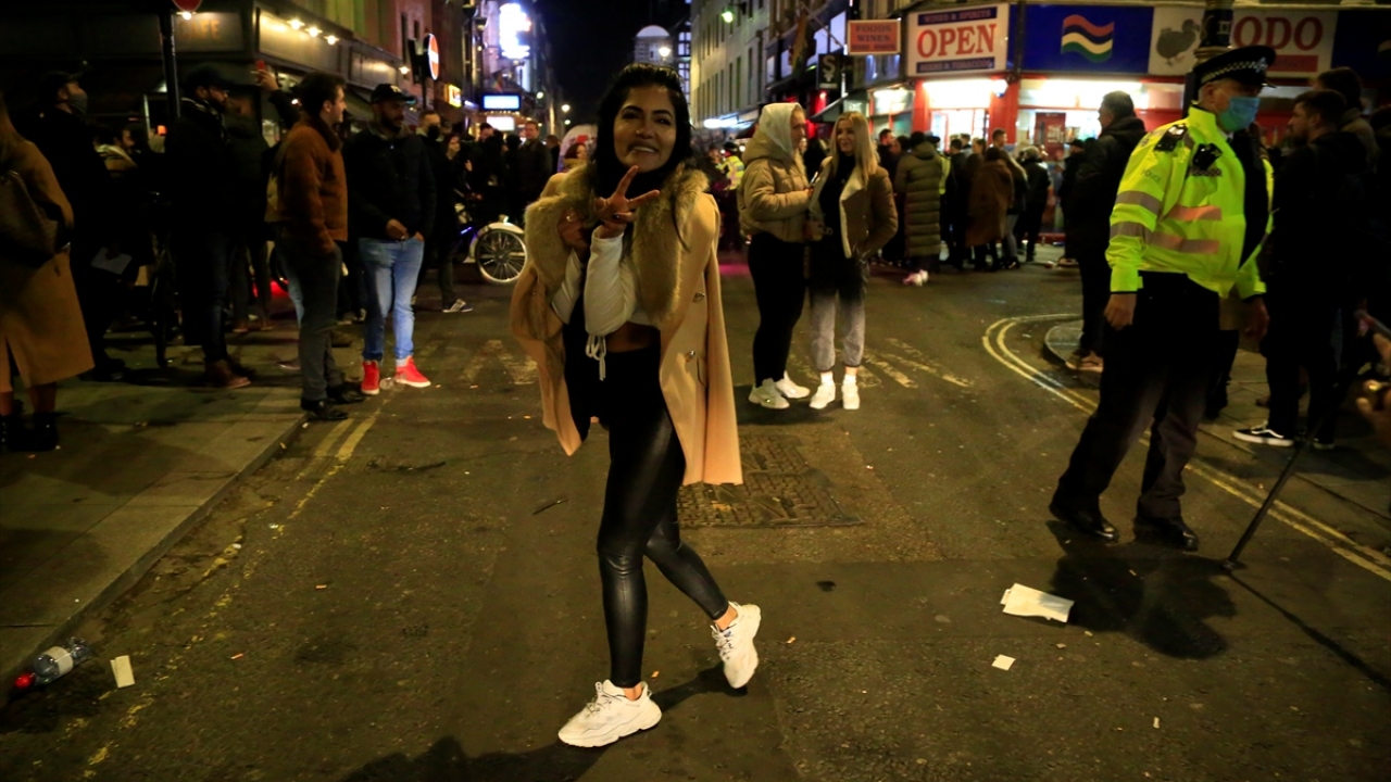 Barların kapatılmasının ardından başkent Londra’daki bir eğlence mekanında gençler sokaklarda eğlenmeye devam etti.