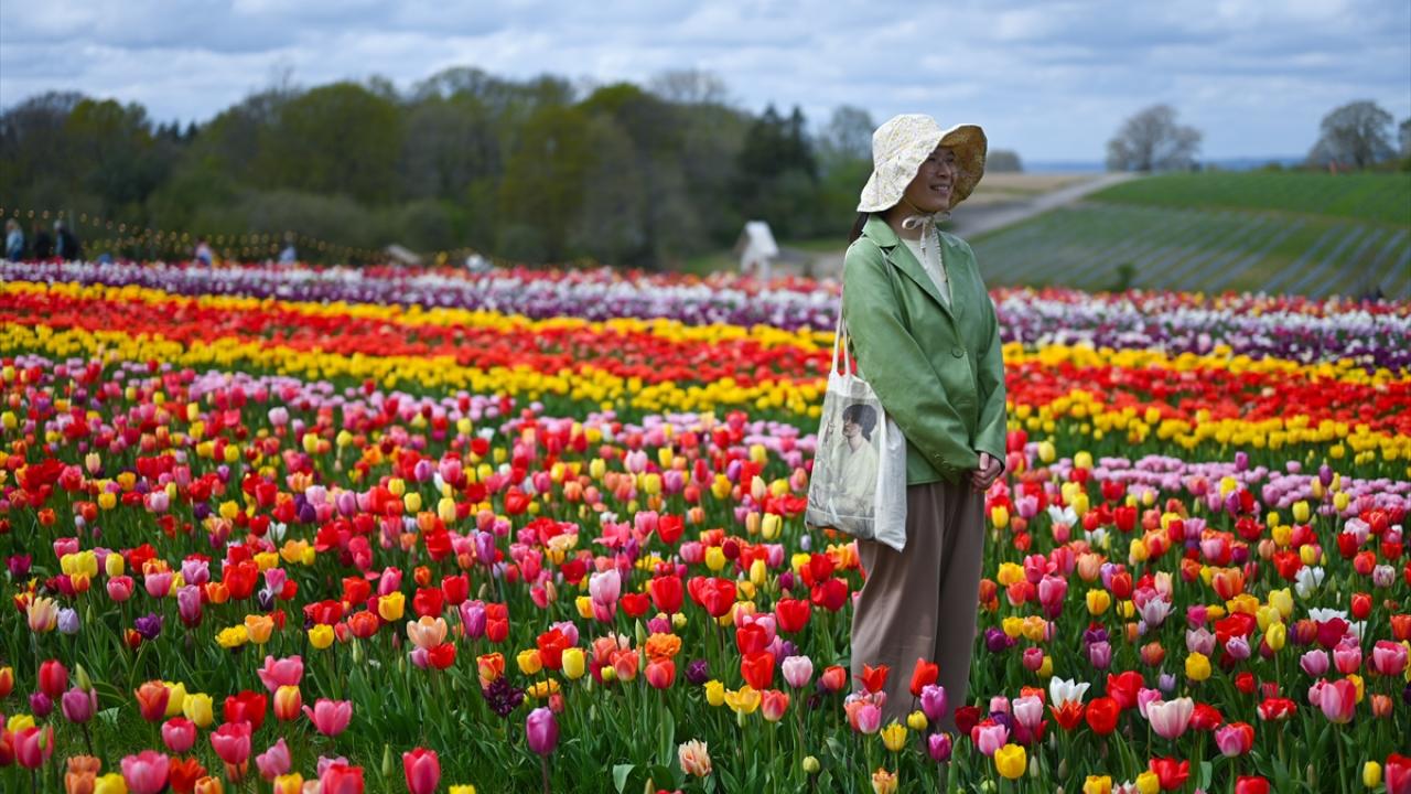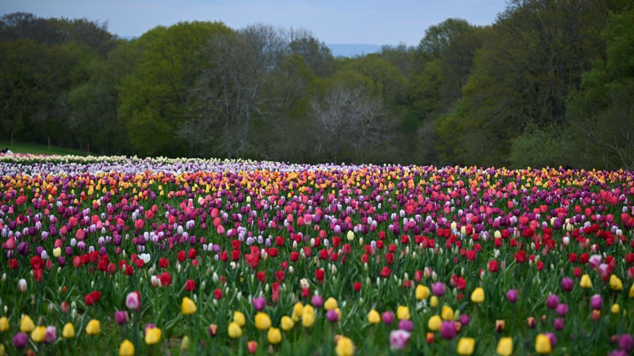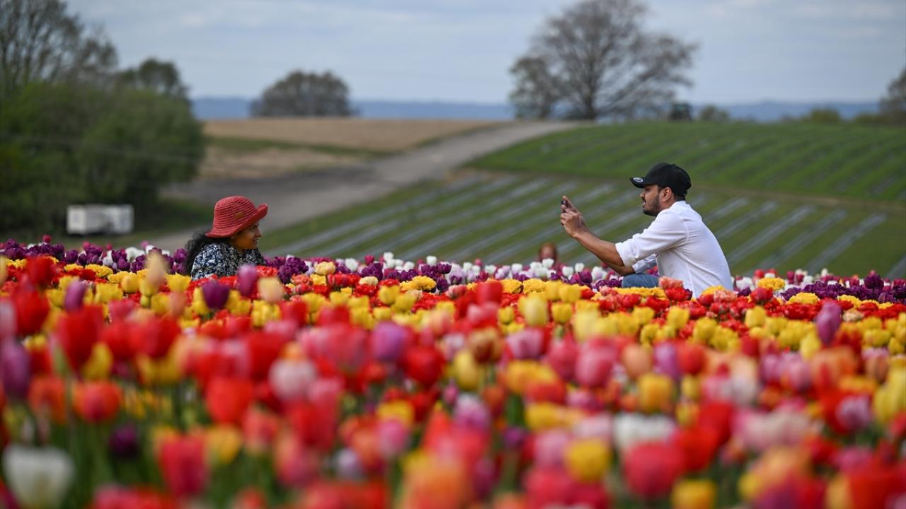 Lale festivali kapsamında kapılarını ziyaretçilerine açan çiftlikte 100 çeşidin üzerinde yaklaşık yarım milyon lale renk cümbüşü oluşturacak şekilde çiçek açtı.