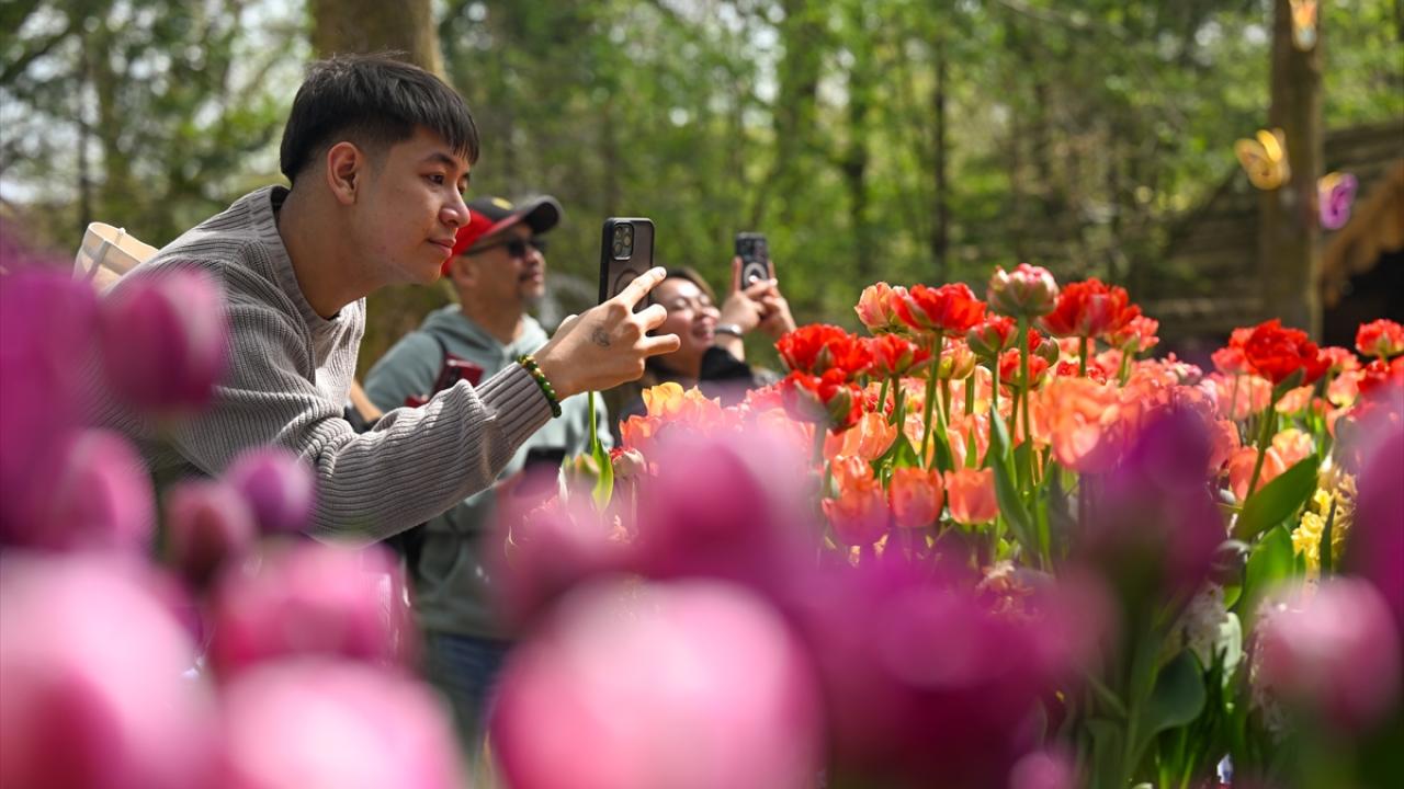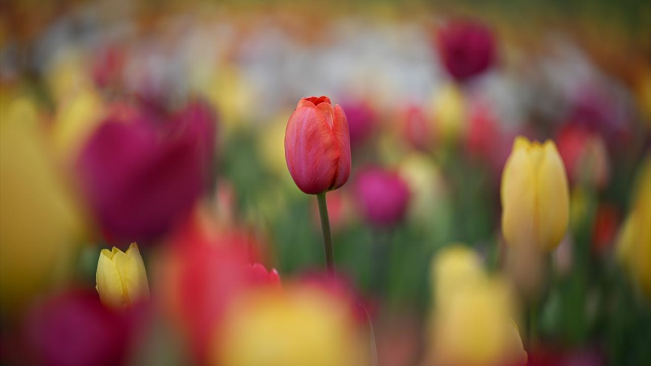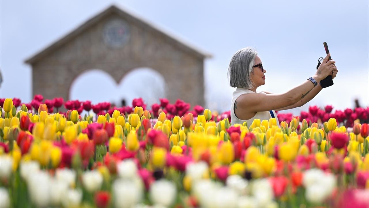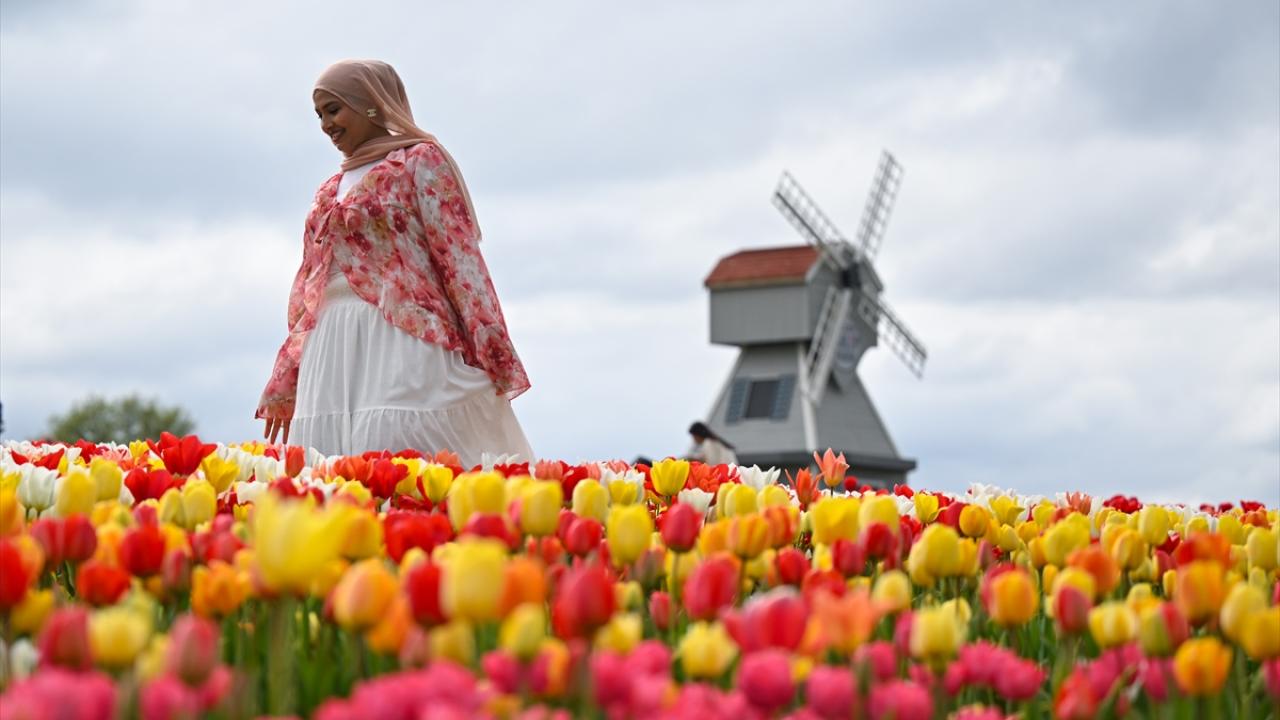 Yel değirmeni, motosiklet, ahşap köprü gibi otantik materyallerle süslenen lale bahçesindeki çiçekler, 15 günlük ömürlerini tamamlamalarının ardından bir sonraki yılın aynı döneminde tekrar açmak üzere köklerinde bulunan soğanlarına çekiliyor.