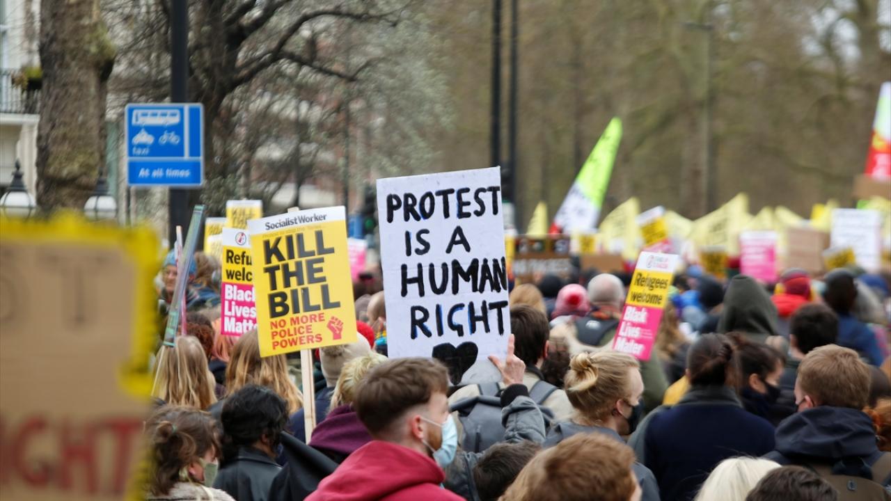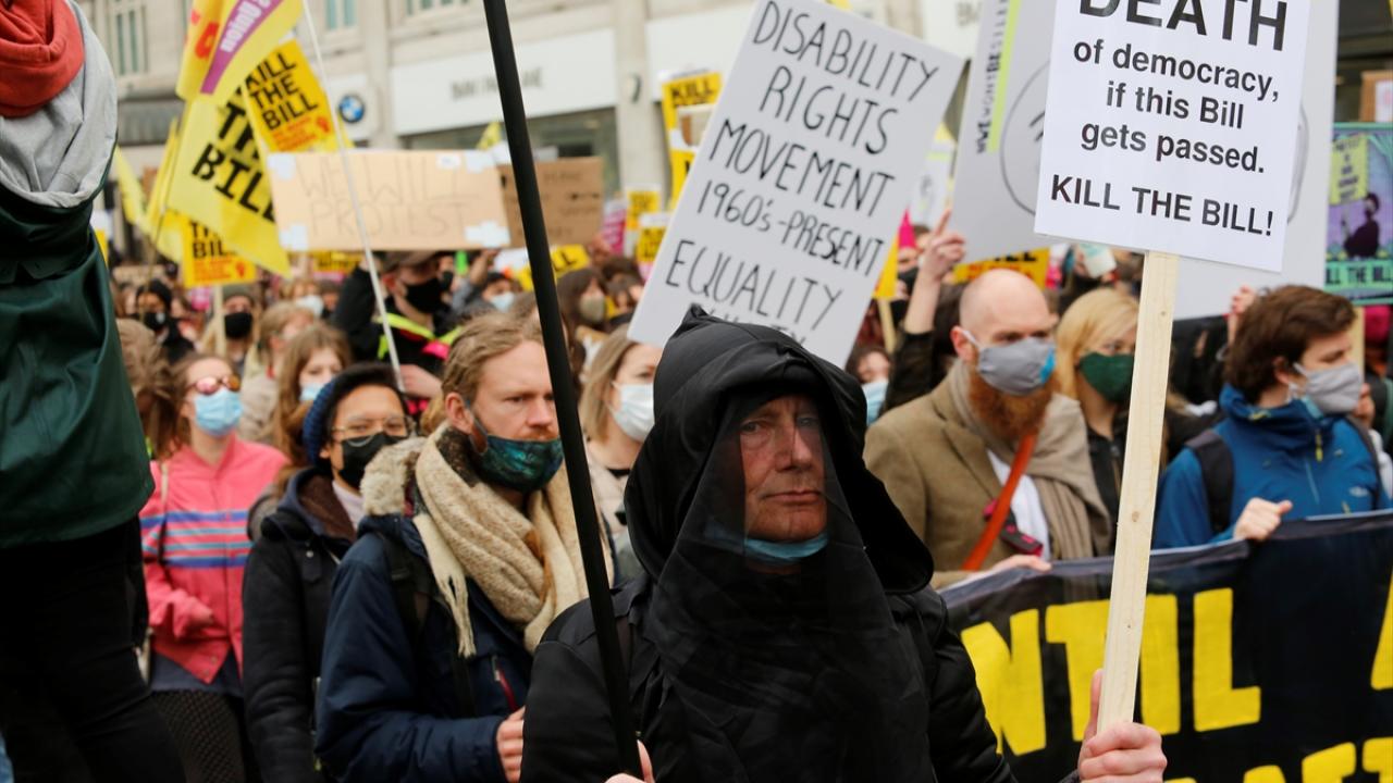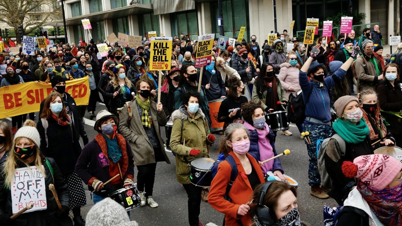 İngiltere’de polise daha fazla yetki veren yasal düzenleme protesto ediliyor. Tasarının geri çekilmesini isteyen binlerce kişi Londra’da protesto gösterisi düzenliyor.