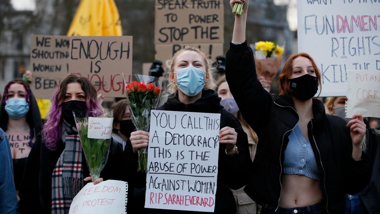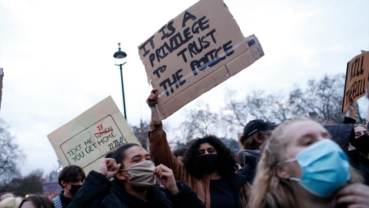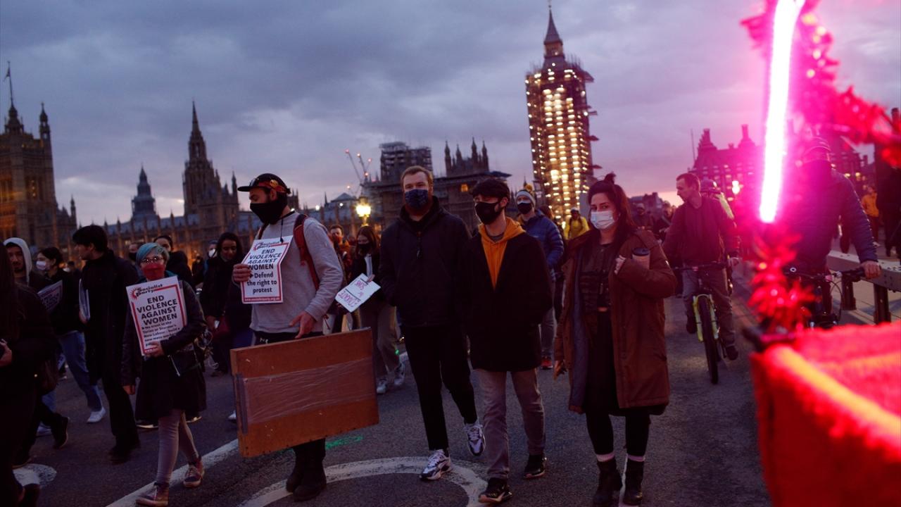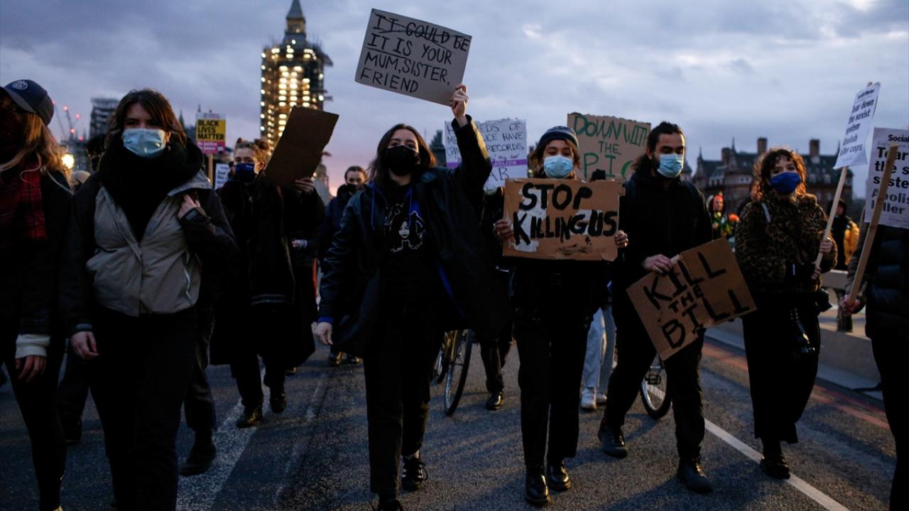 "Demokrasiyi koru", "Merhaba faşizm" ve "İstismarcıları korumaya son ver" yazılı pankartlar taşıyan protestocular, tasarıyı sunan İçişleri Bakanı Priti Patel`i de istifaya çağırdı.