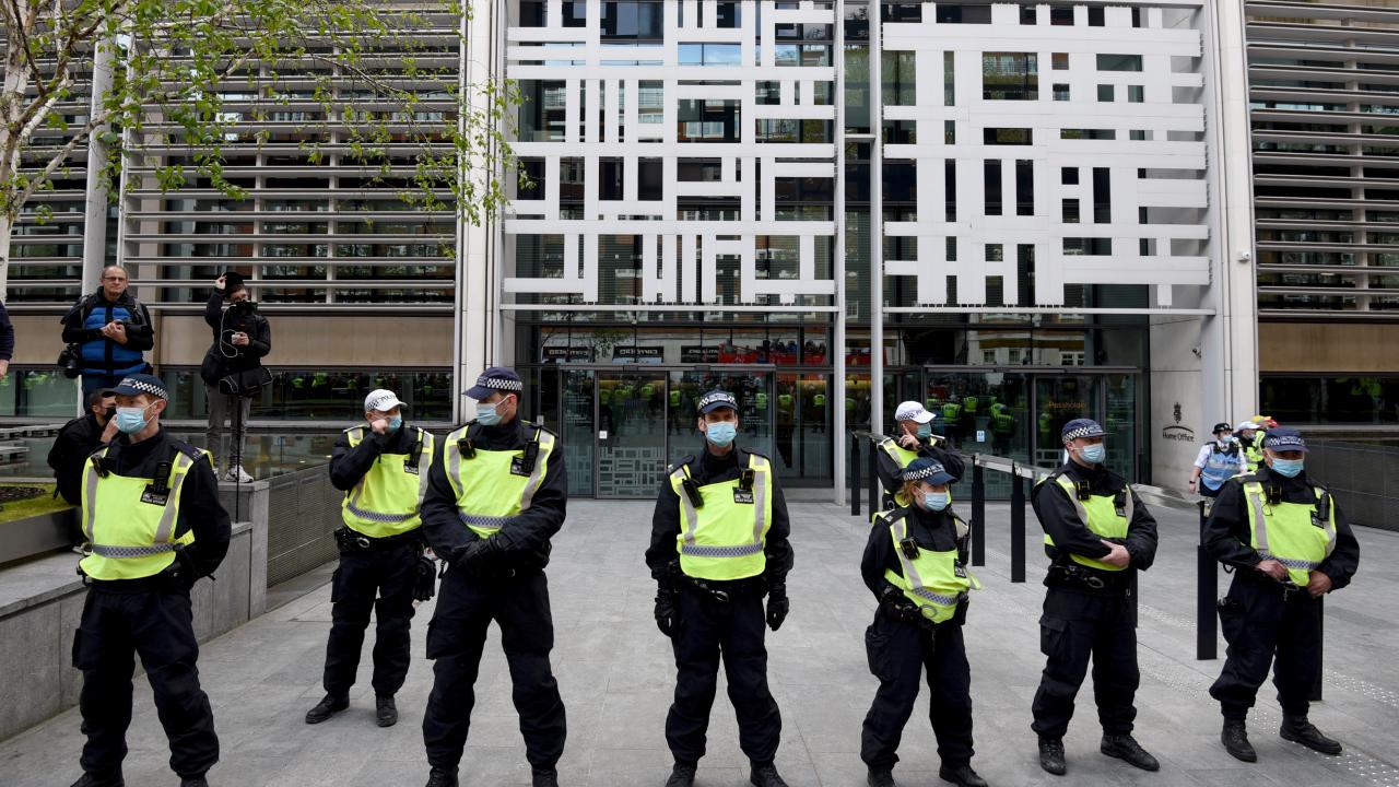 İçişleri Bakanlığı önünden geçen göstericiler, burada yapılan konuşmaların ardından Londra`nın işlek caddelerinde yürüyüşünü sürdürdü.