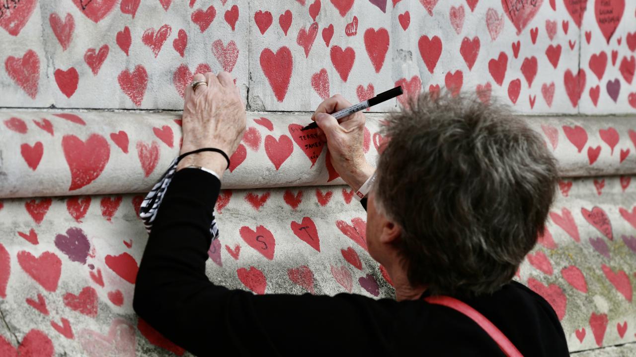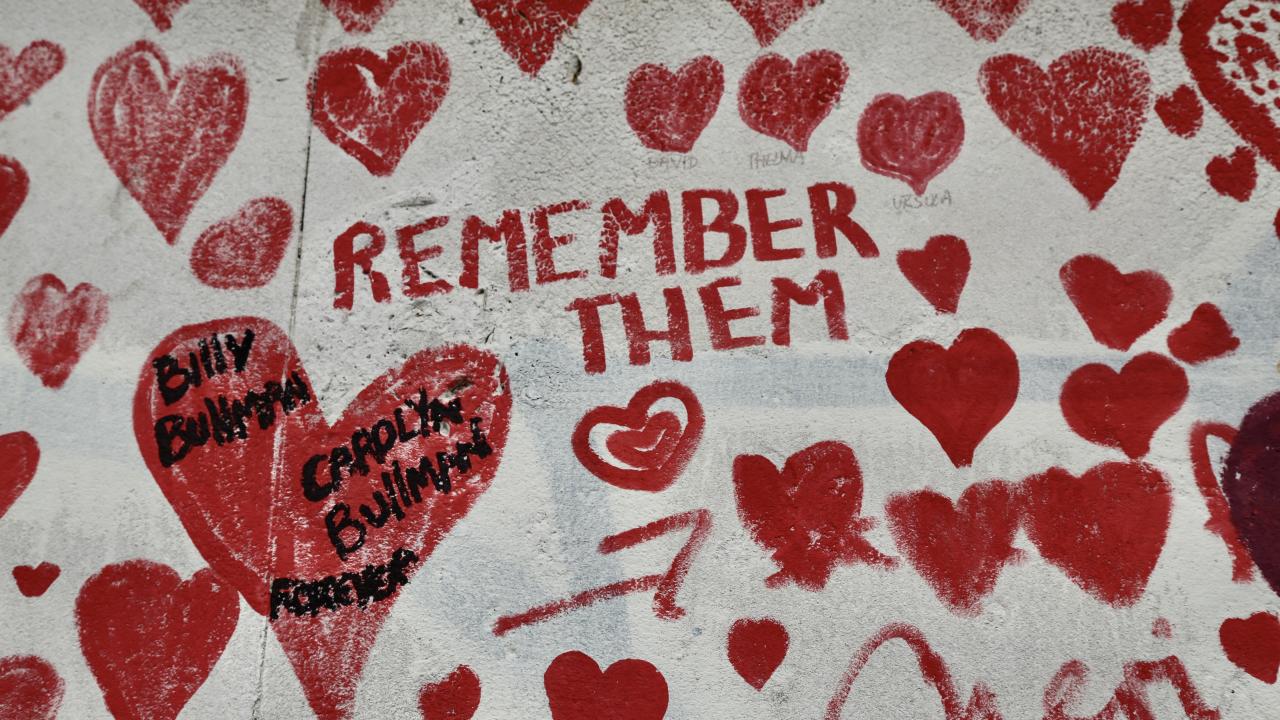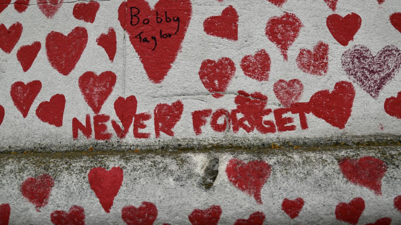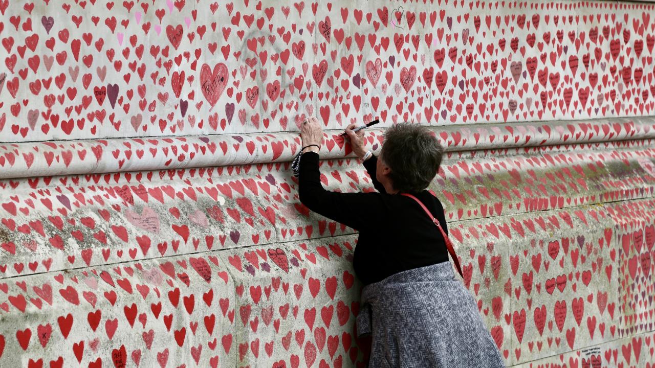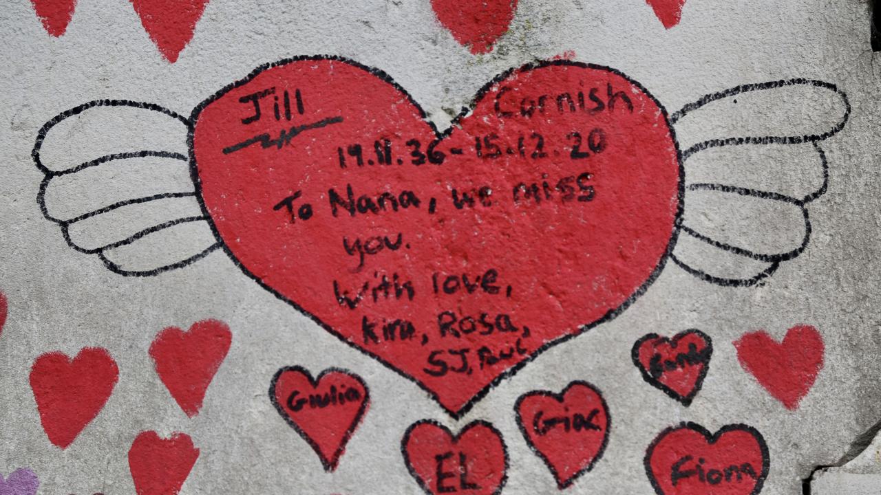 İngiltere’de koronavirüs nedeniyle hayatını kaybedenler için Londra'da 150 bin kalbin çizildiği bir anma duvarı oluşturuldu.