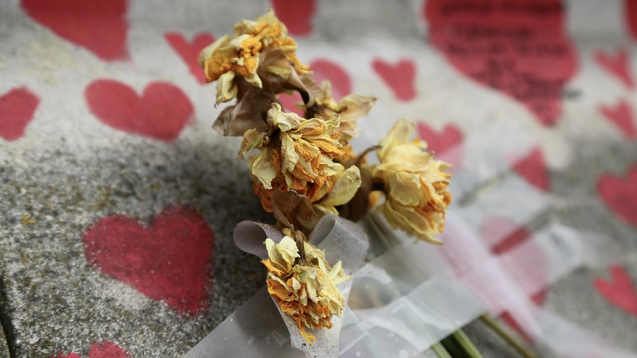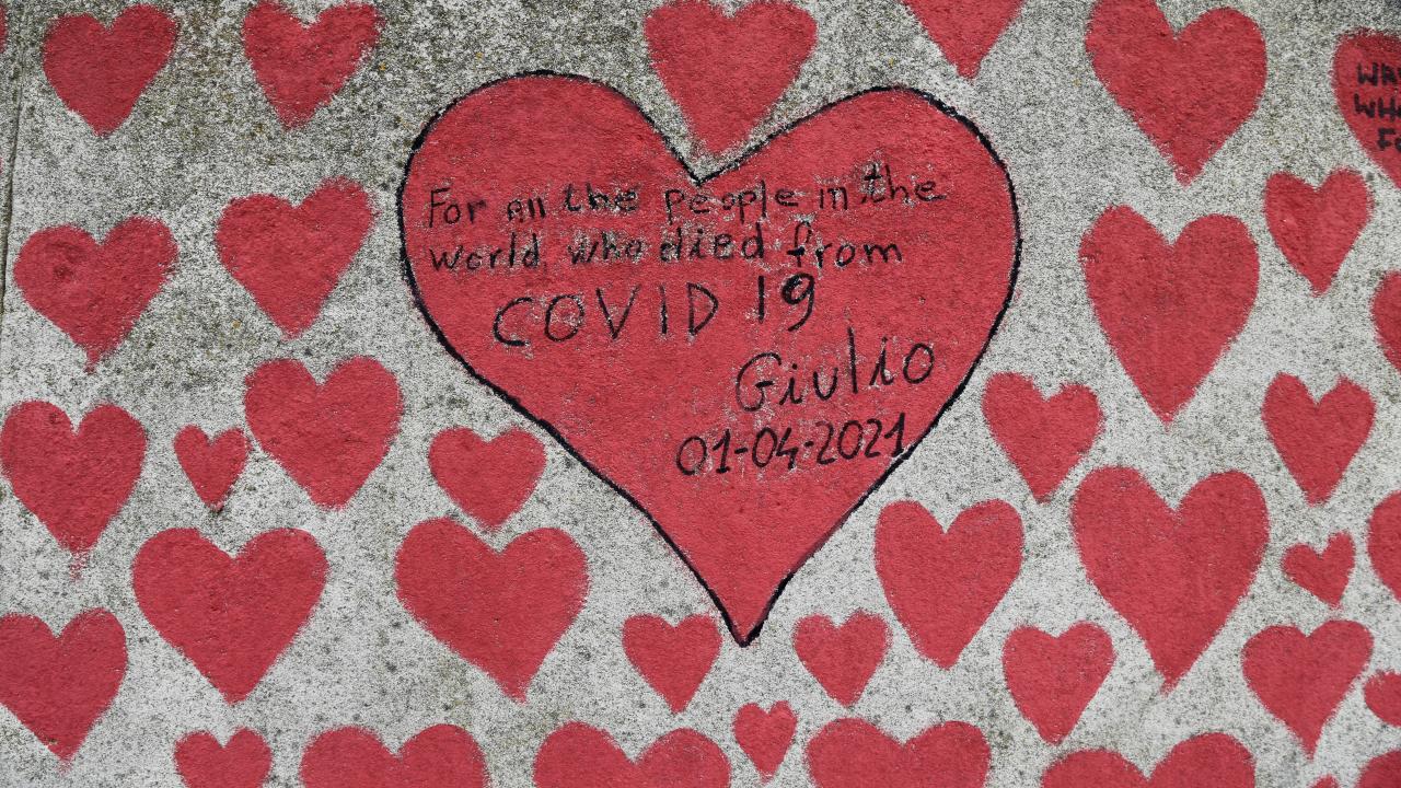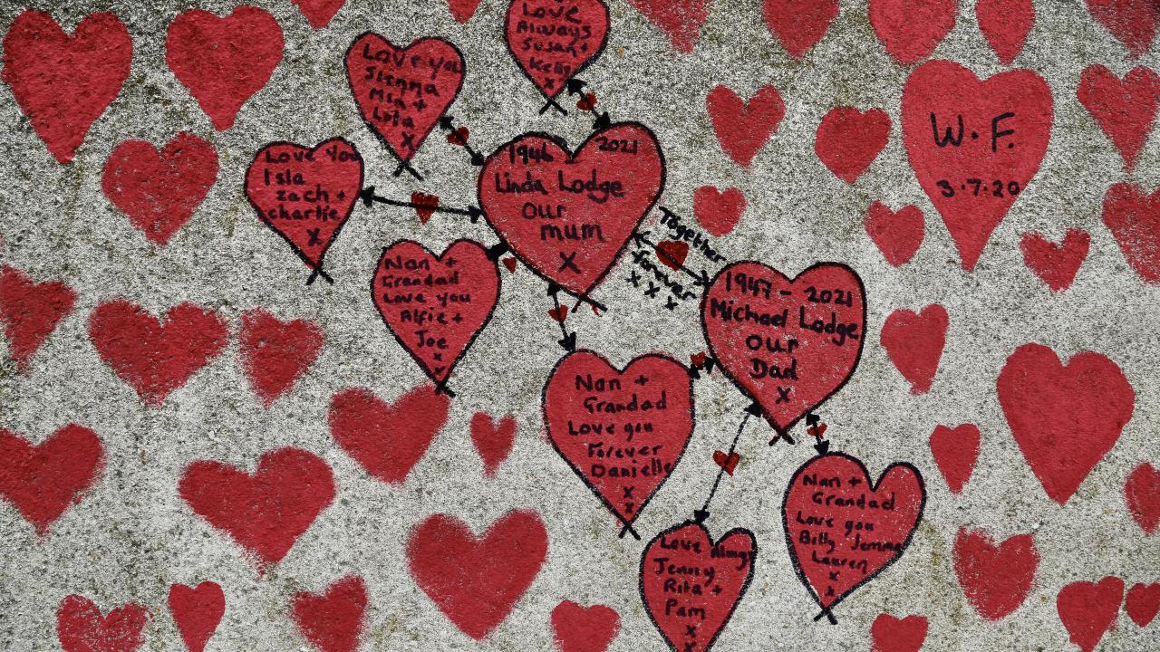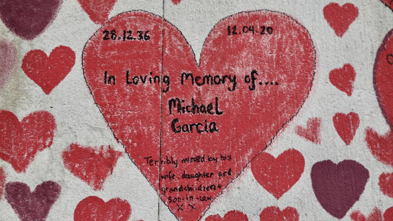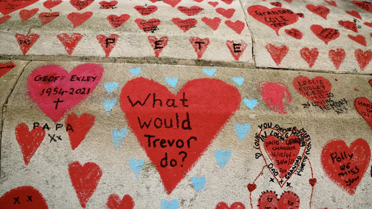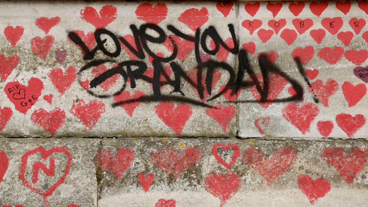 İngiltere’de koronavirüs nedeniyle hayatını kaybedenler için Londra'da 150 bin kalbin çizildiği bir anma duvarı oluşturuldu.