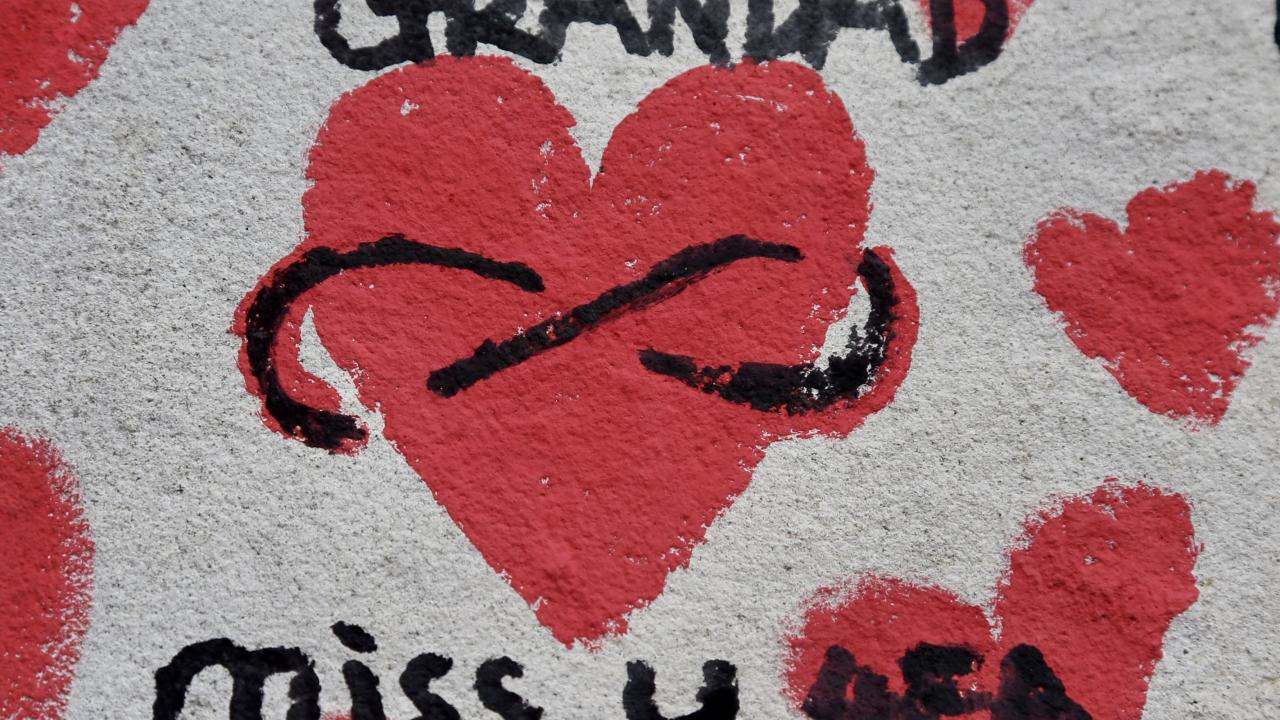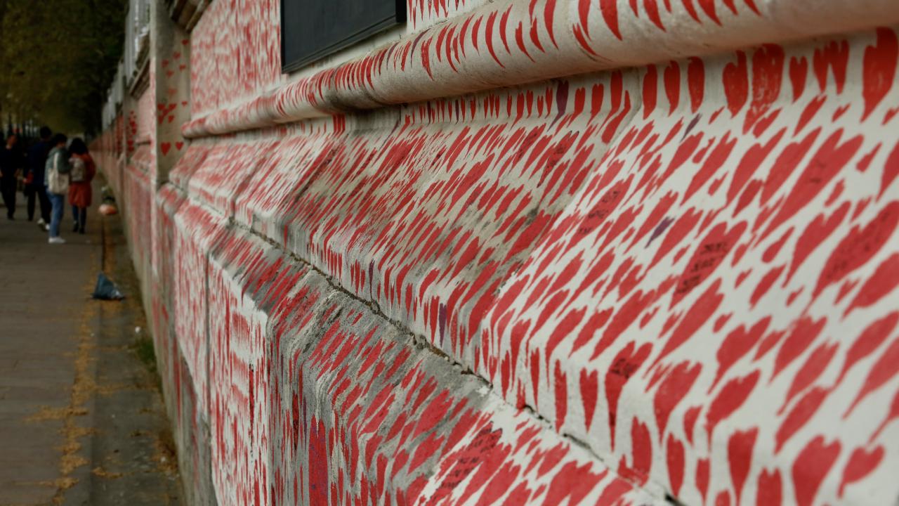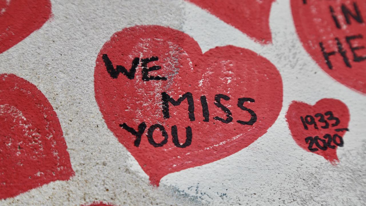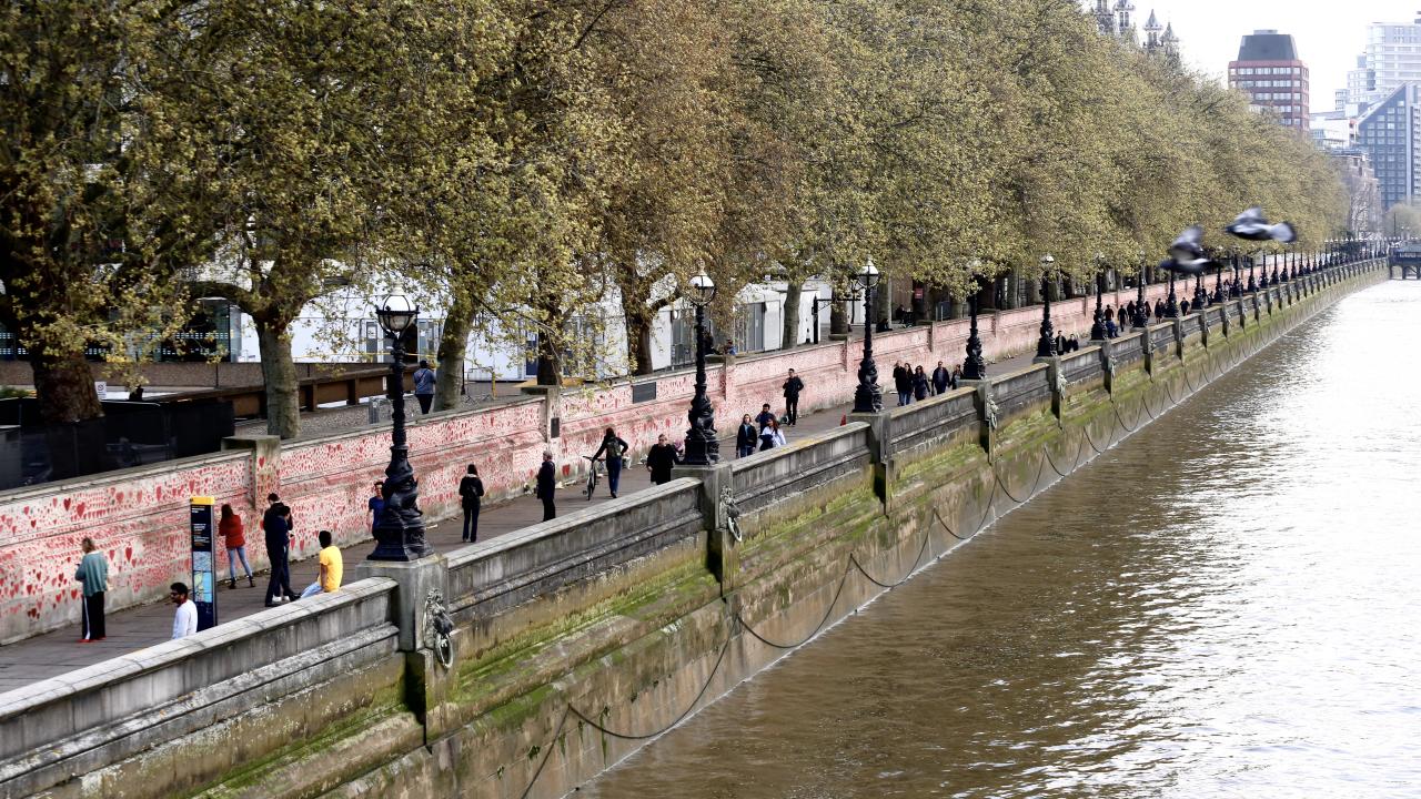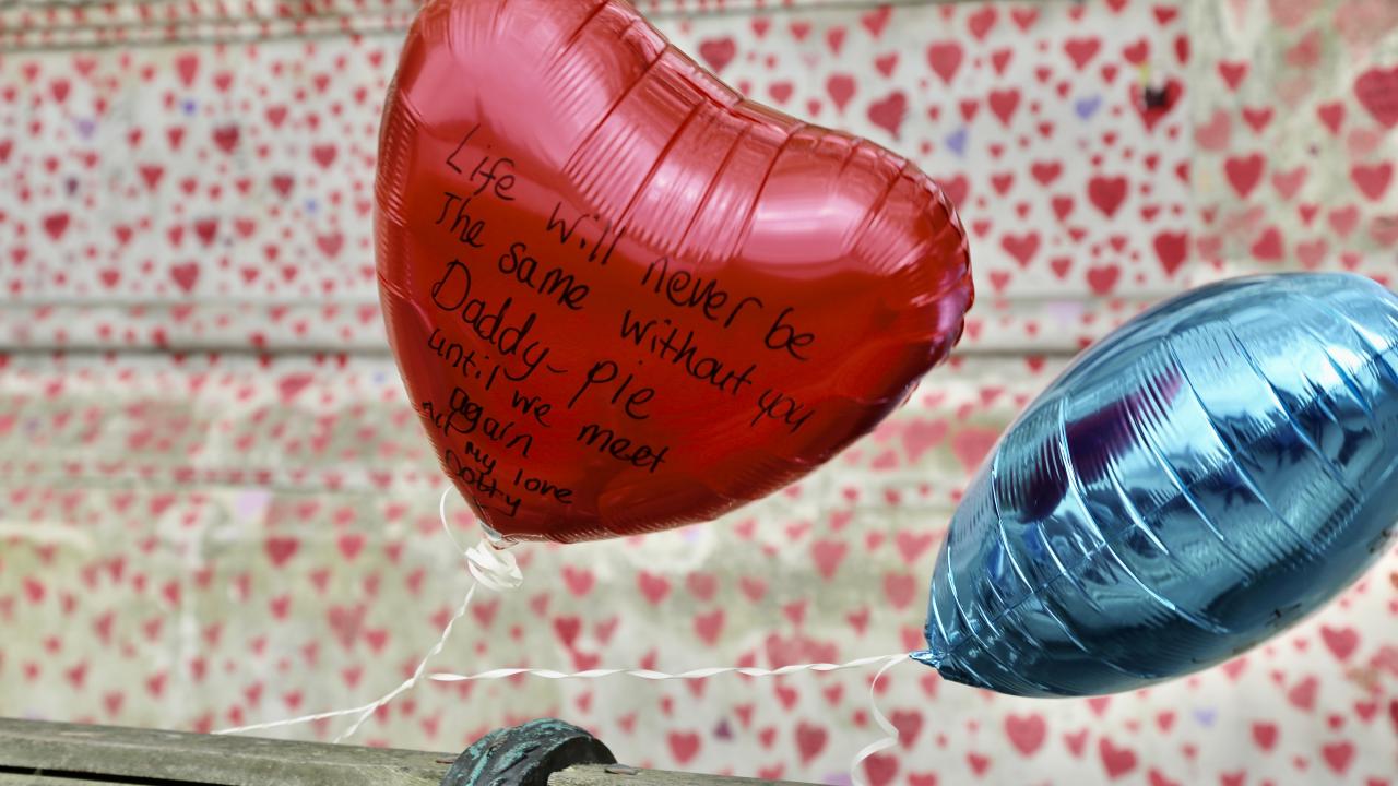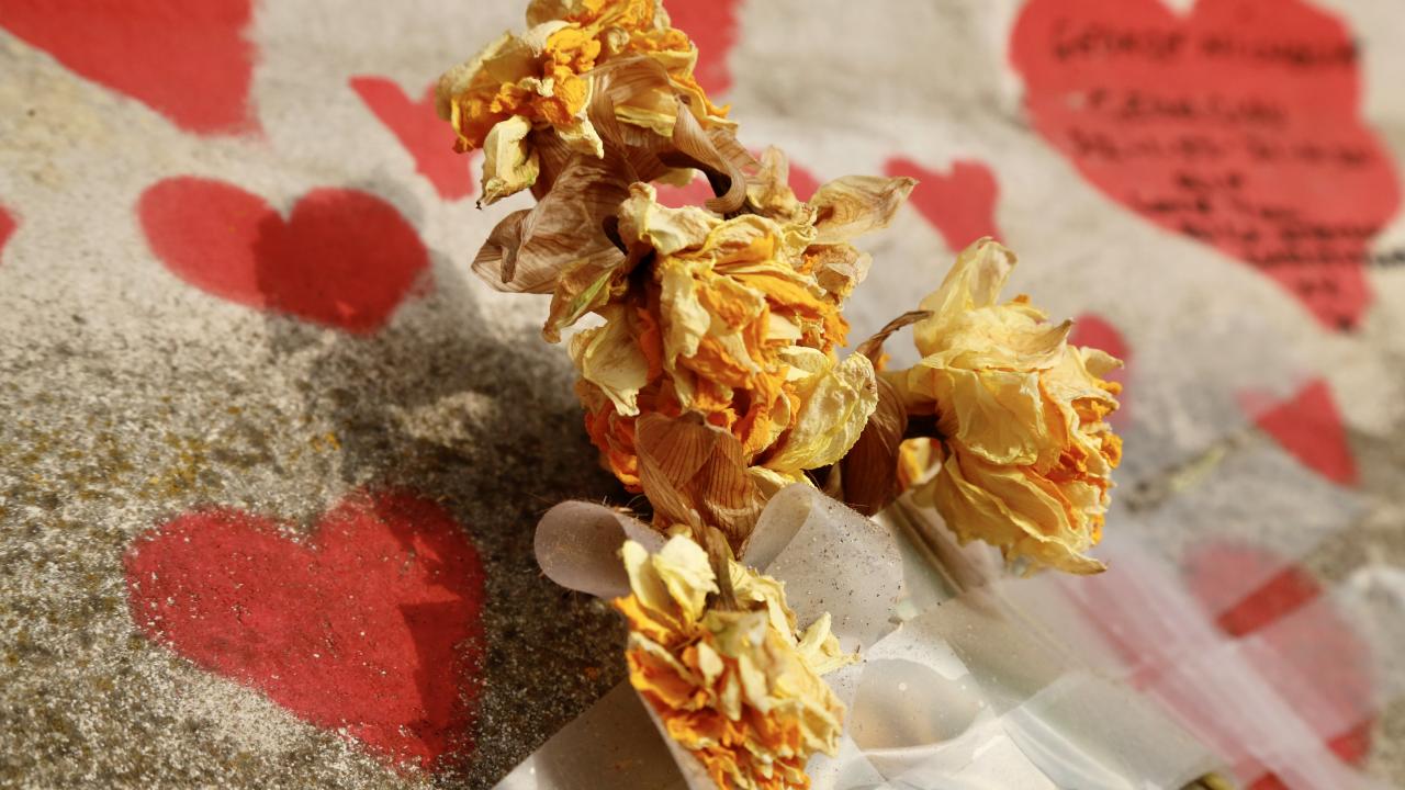 İngiltere’de koronavirüs nedeniyle hayatını kaybedenler için Londra'da 150 bin kalbin çizildiği bir anma duvarı oluşturuldu.