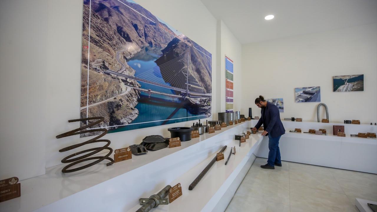 Eserler hakkında bilgi veren Keçeci, "Köprünün maketi, çalışan işçiler, tünel var. Elektrik yalıtım parçaları, dozerlerin kırılmış parçaları, bir işçinin kırılmış bareti, geride bıraktığı ayakkabısı, elbiseleri... Yaklaşık 4 ton malzemenin harmanlanmasından oluşan güzel bir sergi salonumuz oldu." dedi.