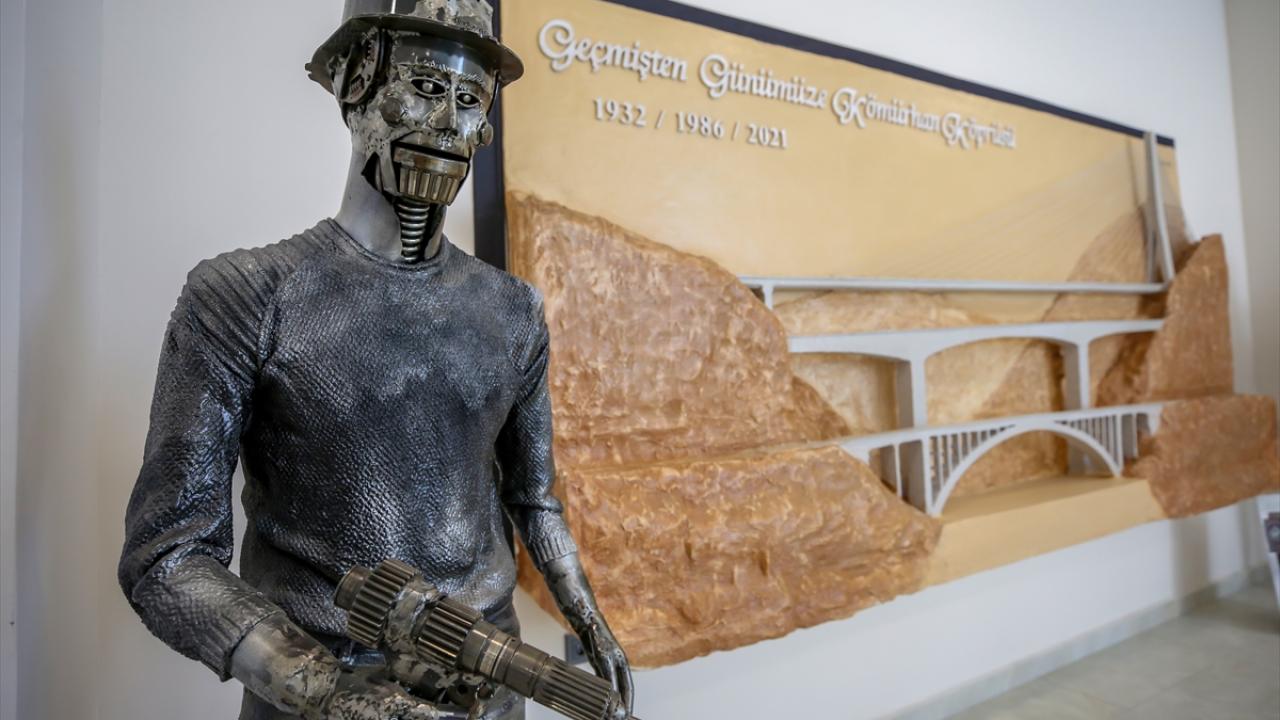 İhtişamlı görüntüsüyle dikkati çeken Kömürhan Köprüsü ile bağlantı tünelinin inşasından arta kalan atıklar, sanatsal çalışmada değerlendirildi.