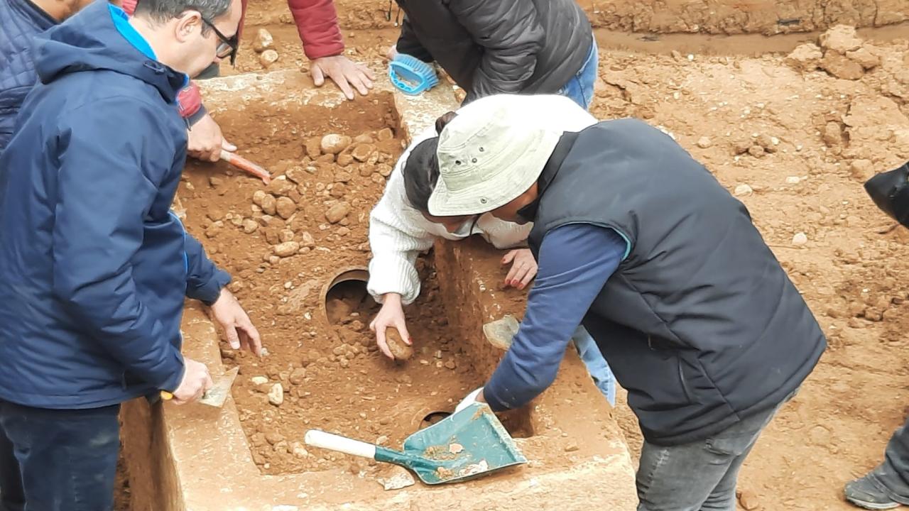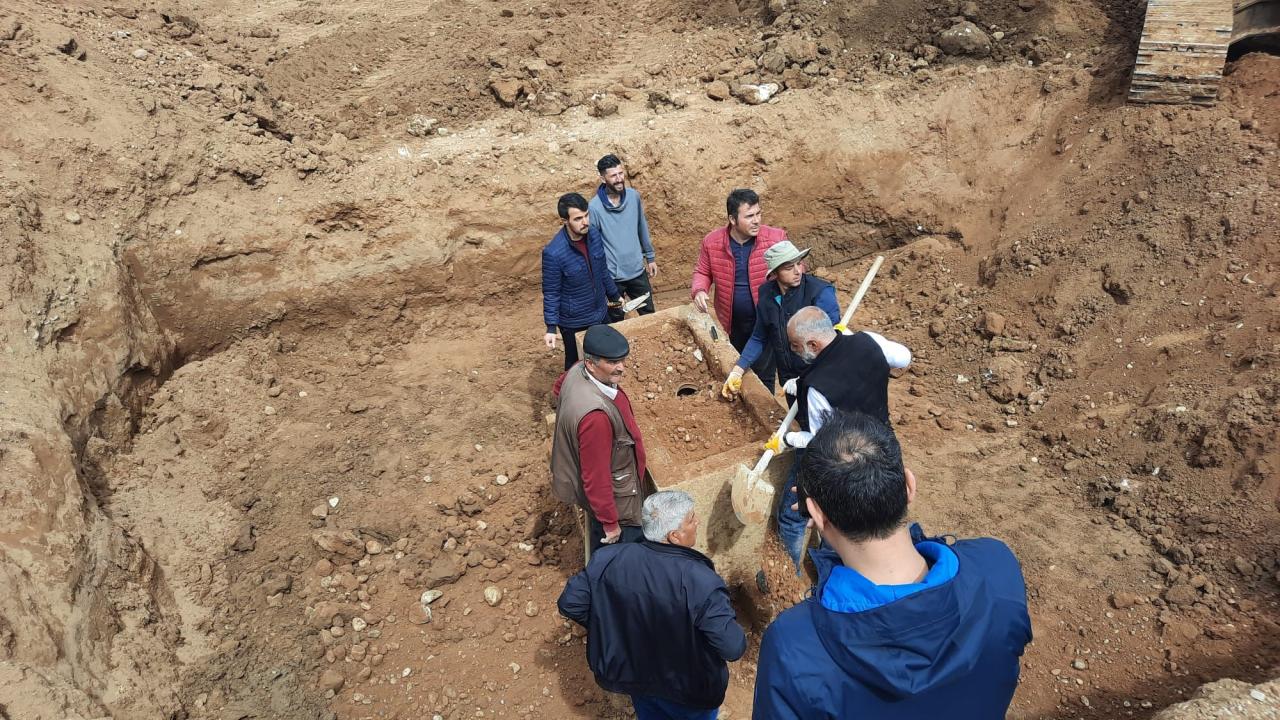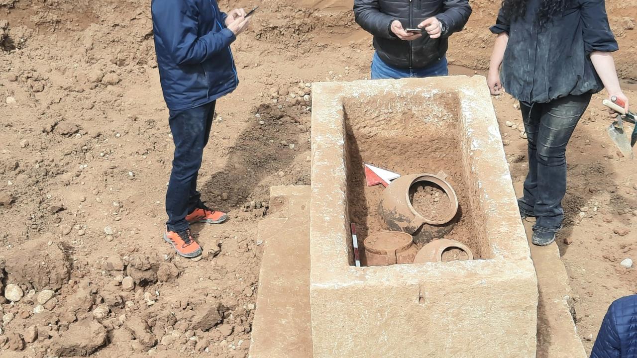İnşaat temel kazısında bulunan Roma dönemine ait lahitin içinden 3 küp çıktı