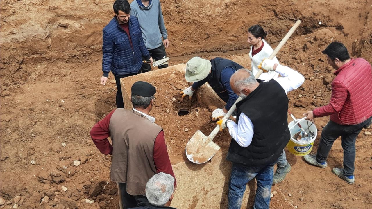 Bunun üzerine olay yerine arkeologlardan oluşa bir ekip sevk edildi. Lahitin bulunduğu alana gelen arkeologlar yaptıkları hassas kazı ile lahiti gün yüzüne çıkarmayı başardı. Bulunan lahitin daha sonra üst kapağı açıldı. Görevliler kapağı açılan lahidin içerisinde 3 toprak küp bulurken, küplerin içerisinden elde edilen objeler hakkında ise açıklama yapılmadı.
