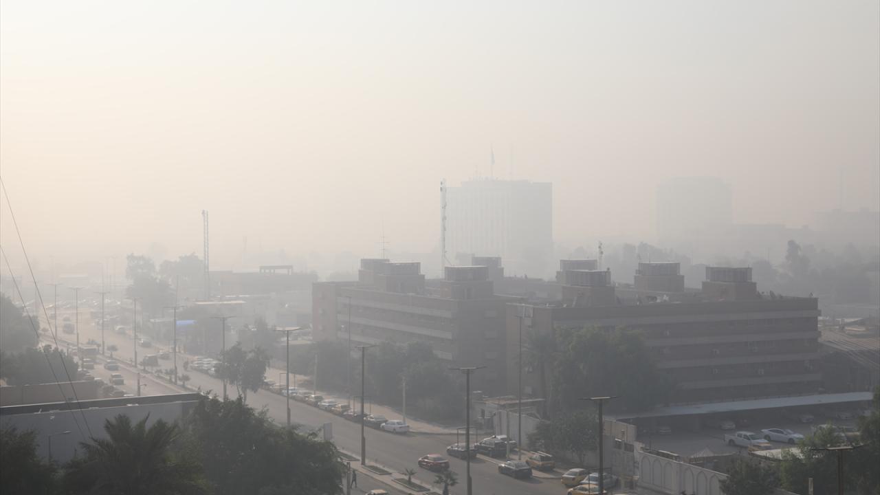 Irak’ın başkenti Bağdat’ta etkili olan hava kirliliği görüntülendi.