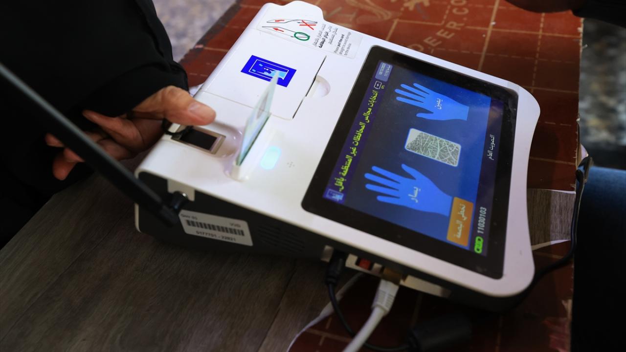 Başkent Bağdat`taki Masarah Okulu`na gelen seçmenler, elektronik kart sistemiyle oylarını kullandı.