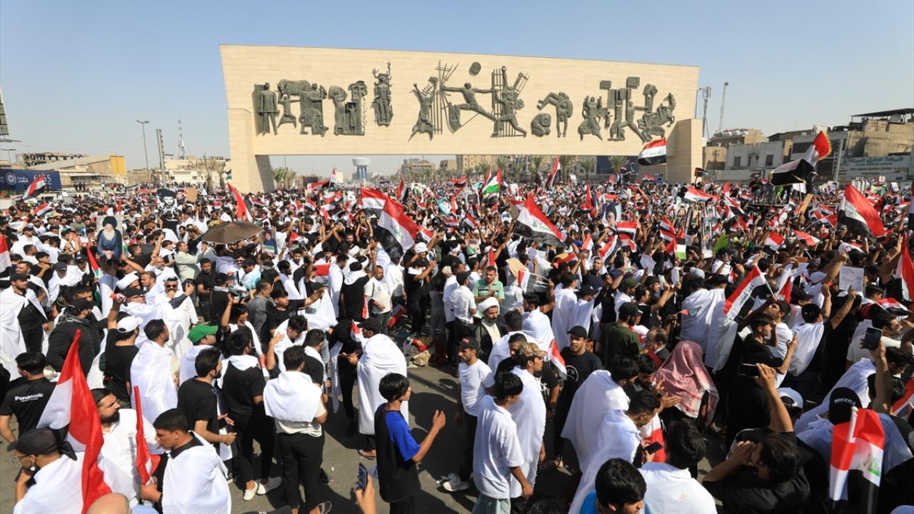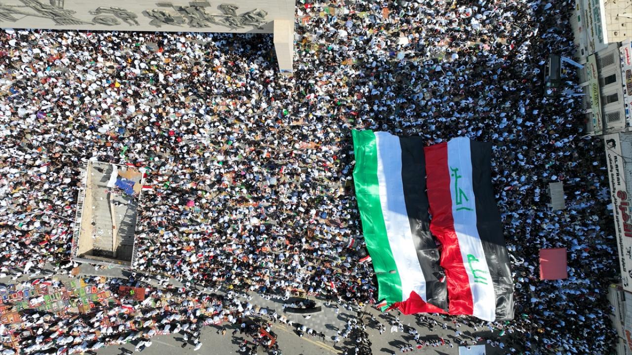 Iraklılar Tahrir Meydanı'nda toplanarak Filistinlilere destek gösterisi yaptı