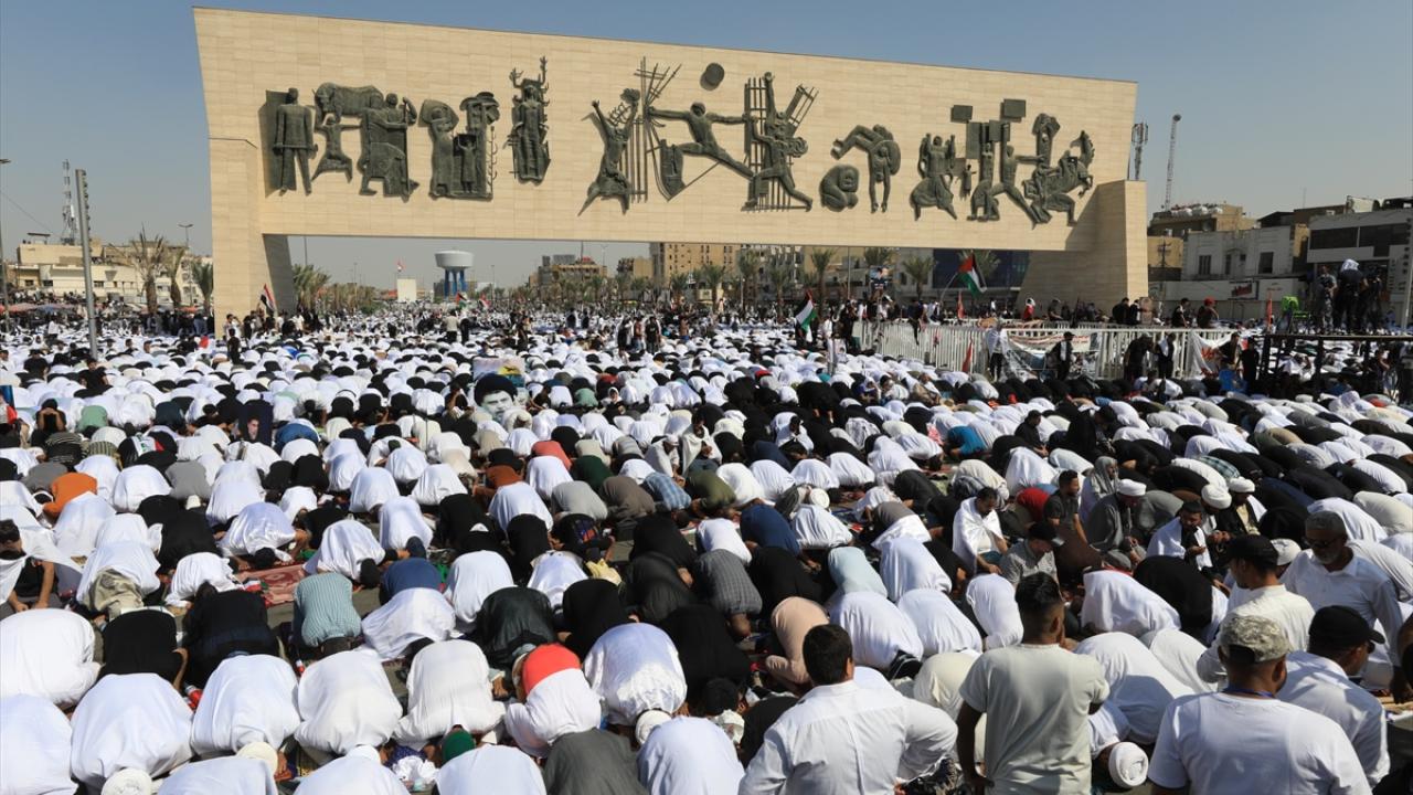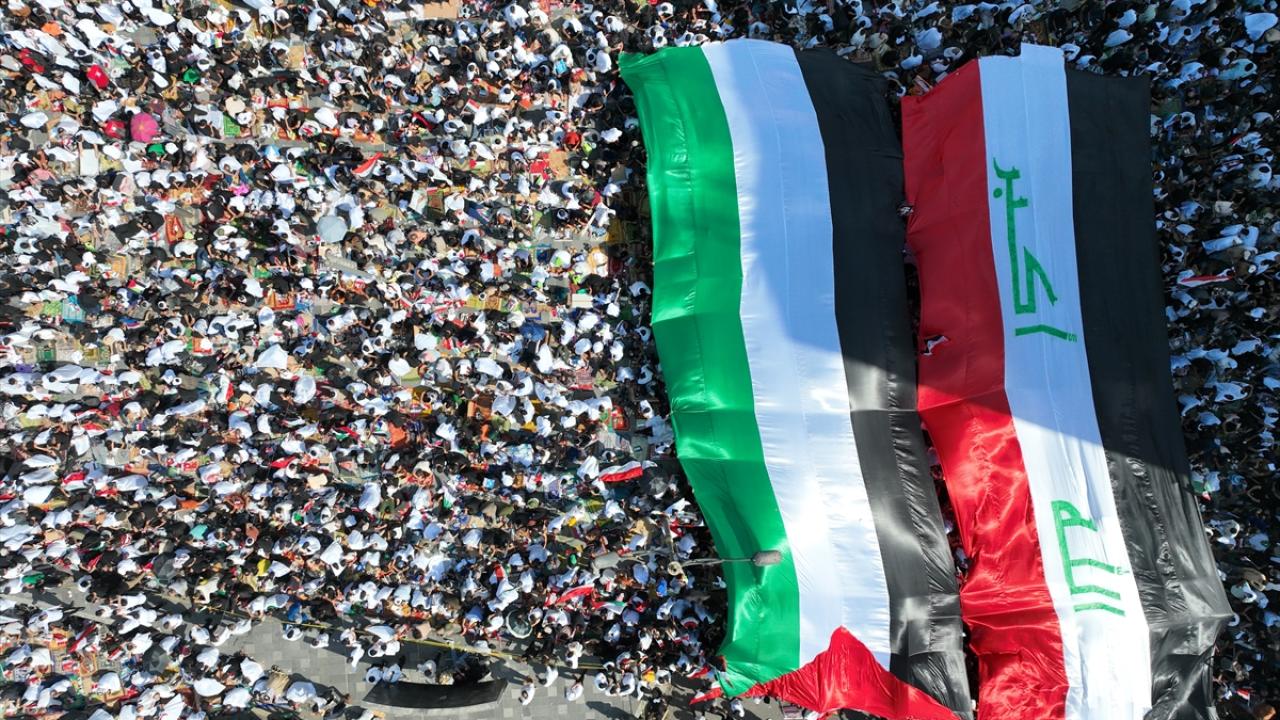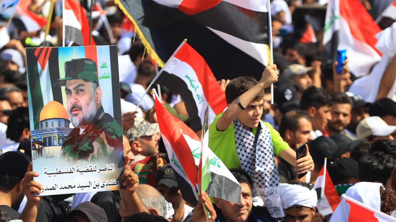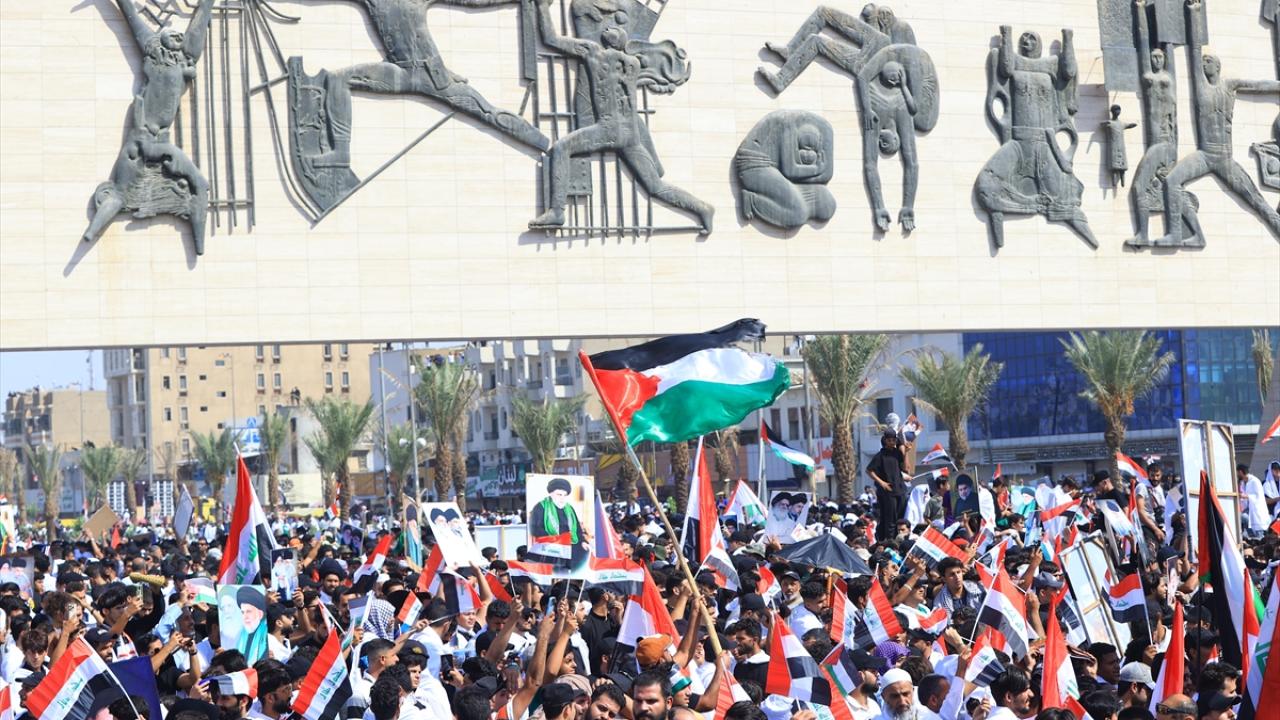 Irak'ın başkenti Bağdat'taki Tahrir Meydanı'nda toplanan binlerce Iraklı, Filistin'e destek gösterisinde bulundu.