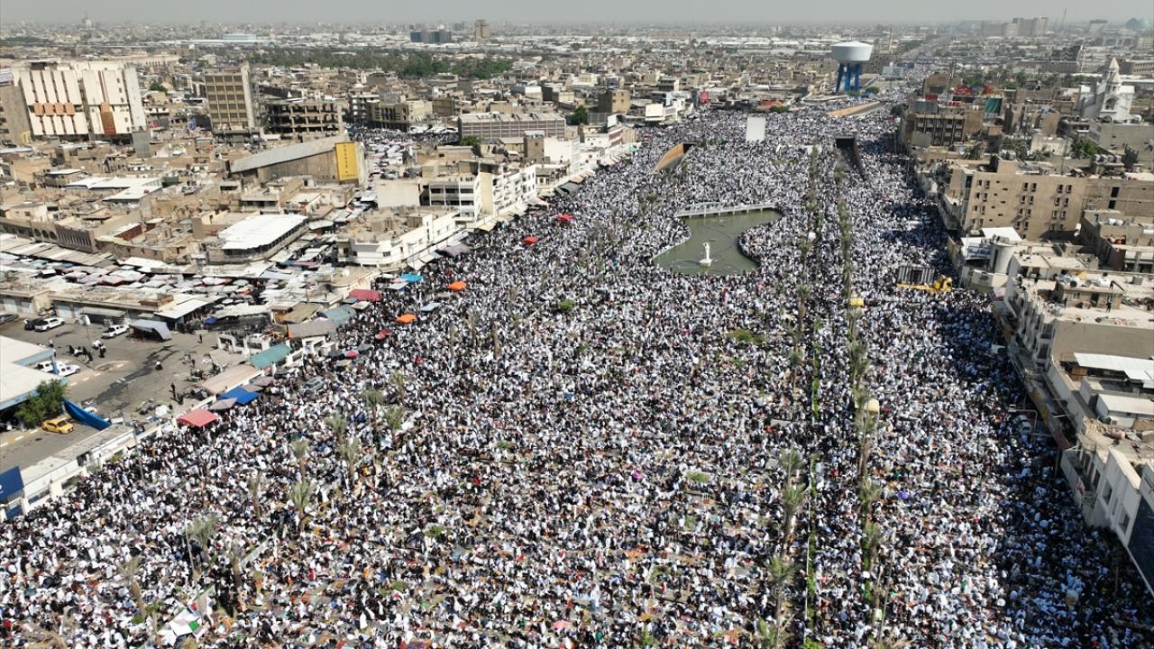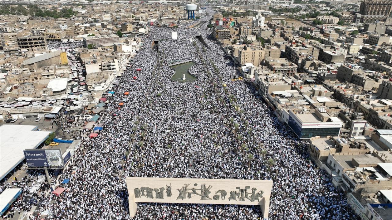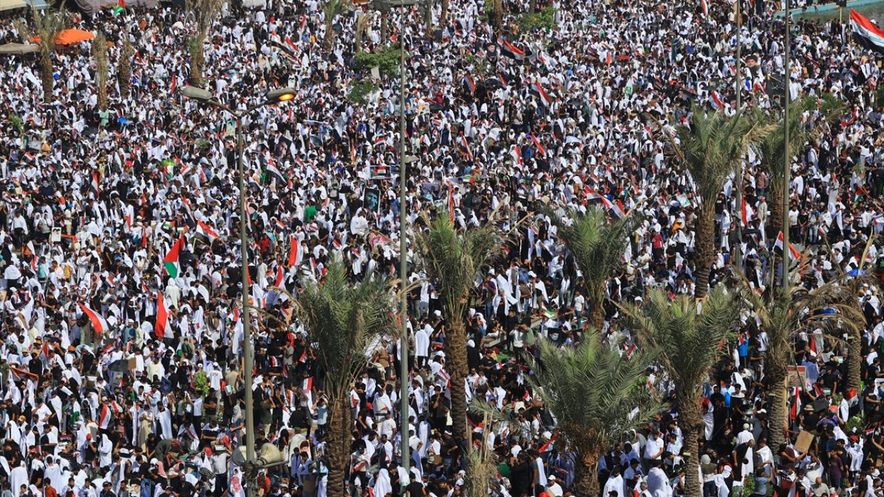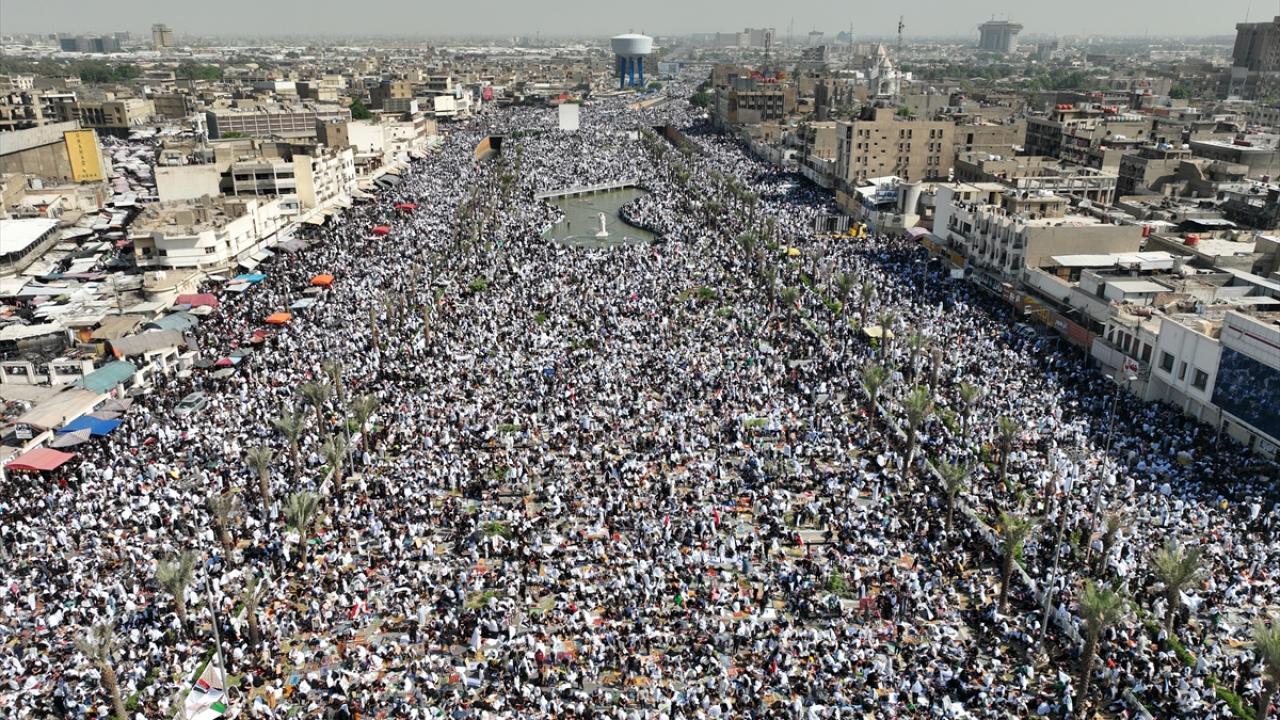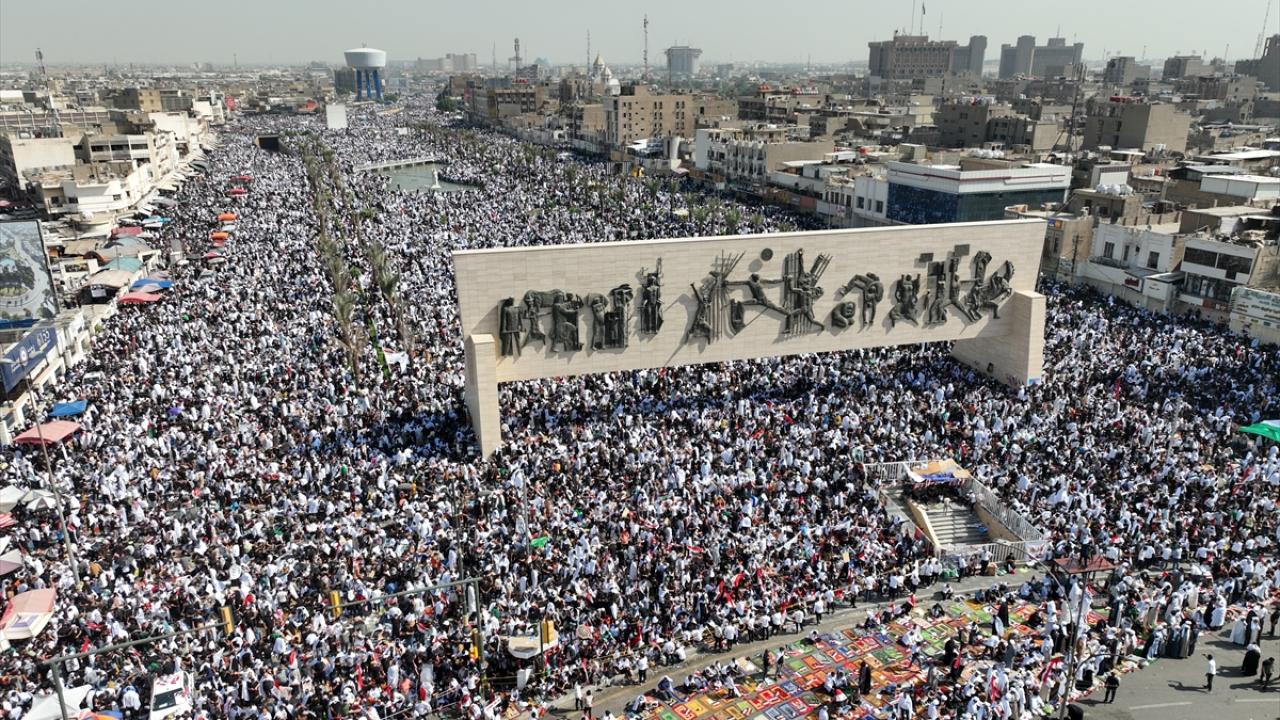 Irak'ın başkenti Bağdat'taki Tahrir Meydanı'nda toplanan binlerce Iraklı, Filistin'e destek gösterisinde bulundu.