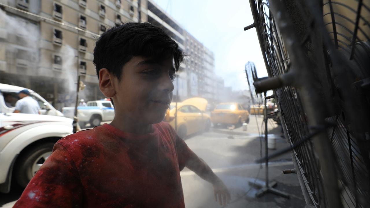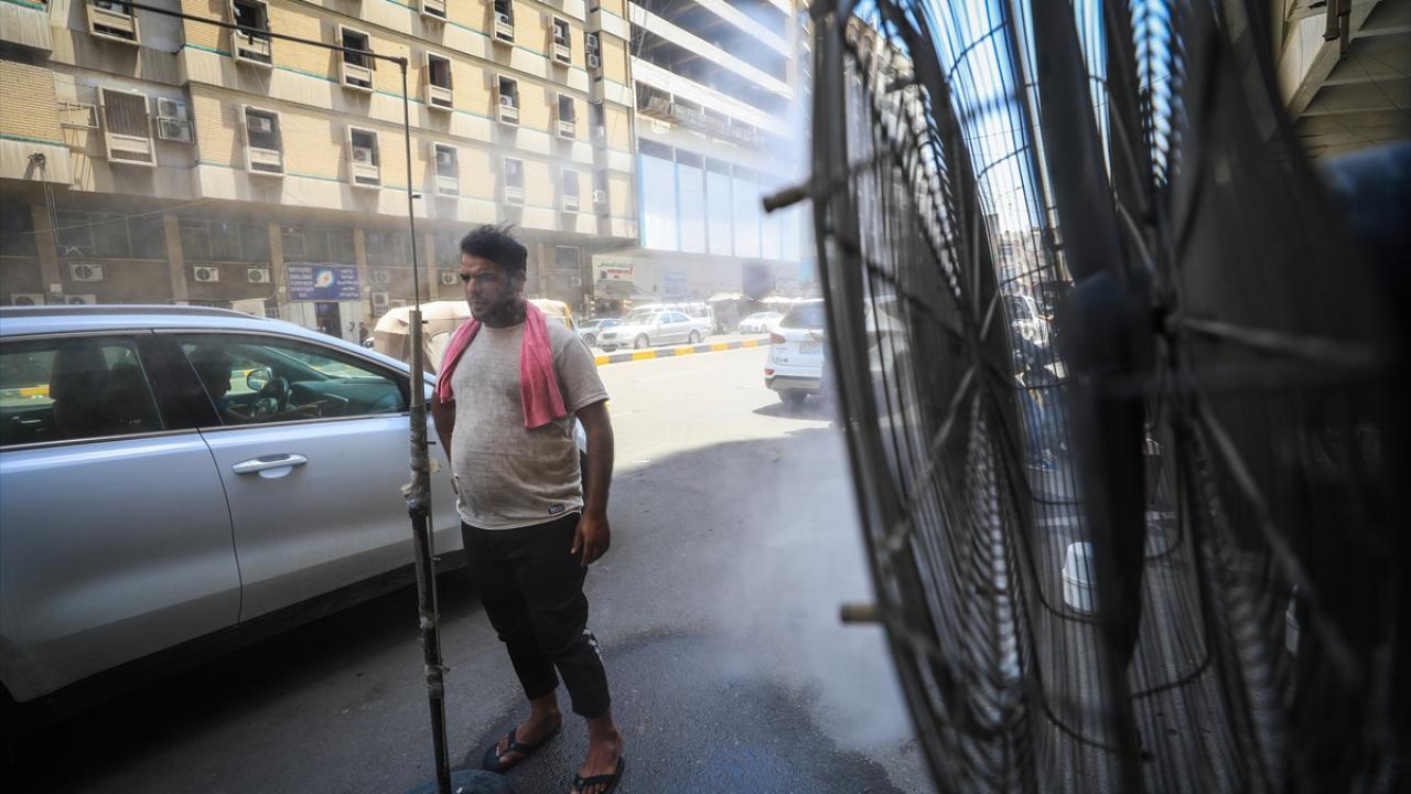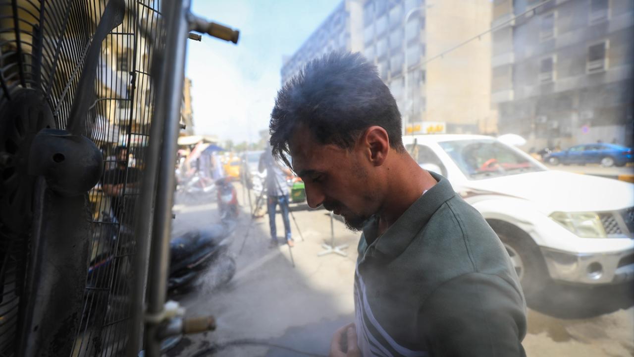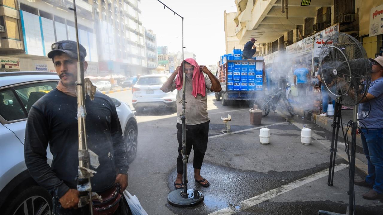 Bağdat`ta insan yoğunluğunun fazla olduğu Sinek ve Alavi bölgelerindeki esnaf, kavurucu sıcağın zirve yaptığı öğle saatlerinde yol kenarlarına yerleştirdiği "su püskürtmeli" vantilatörler ile vatandaşlara ücretsiz serinleme hizmeti veriyor.