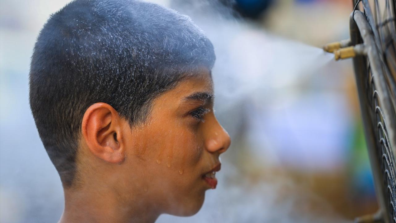 Yoldan geçenler yakıcı güneşin etkisinden bir anlık da olsa kurtulmak için kendilerini bu vantilatörlerin önüne atıyor. Su püskürtmeli vantilatörlerin önünde biraz uzun kalanlar ıslanmayı da dert etmiyor.