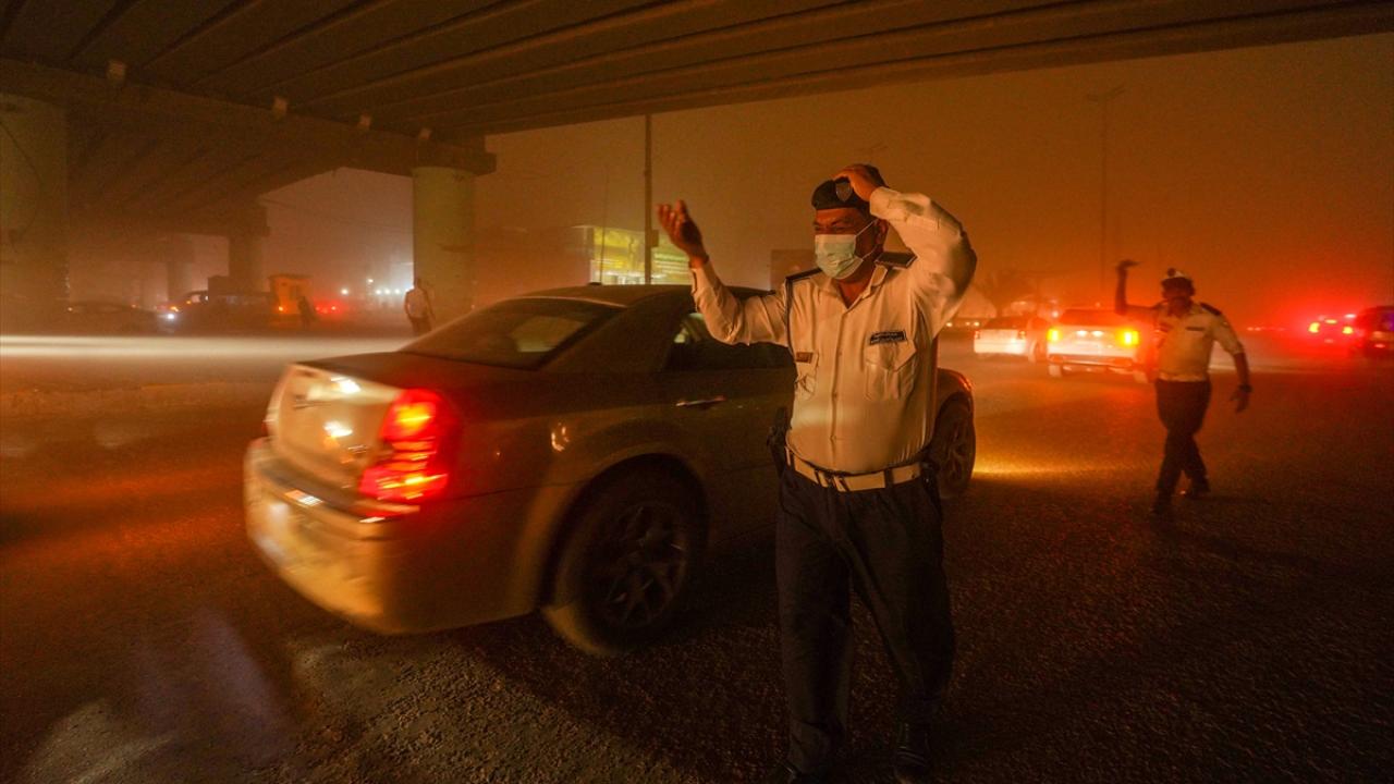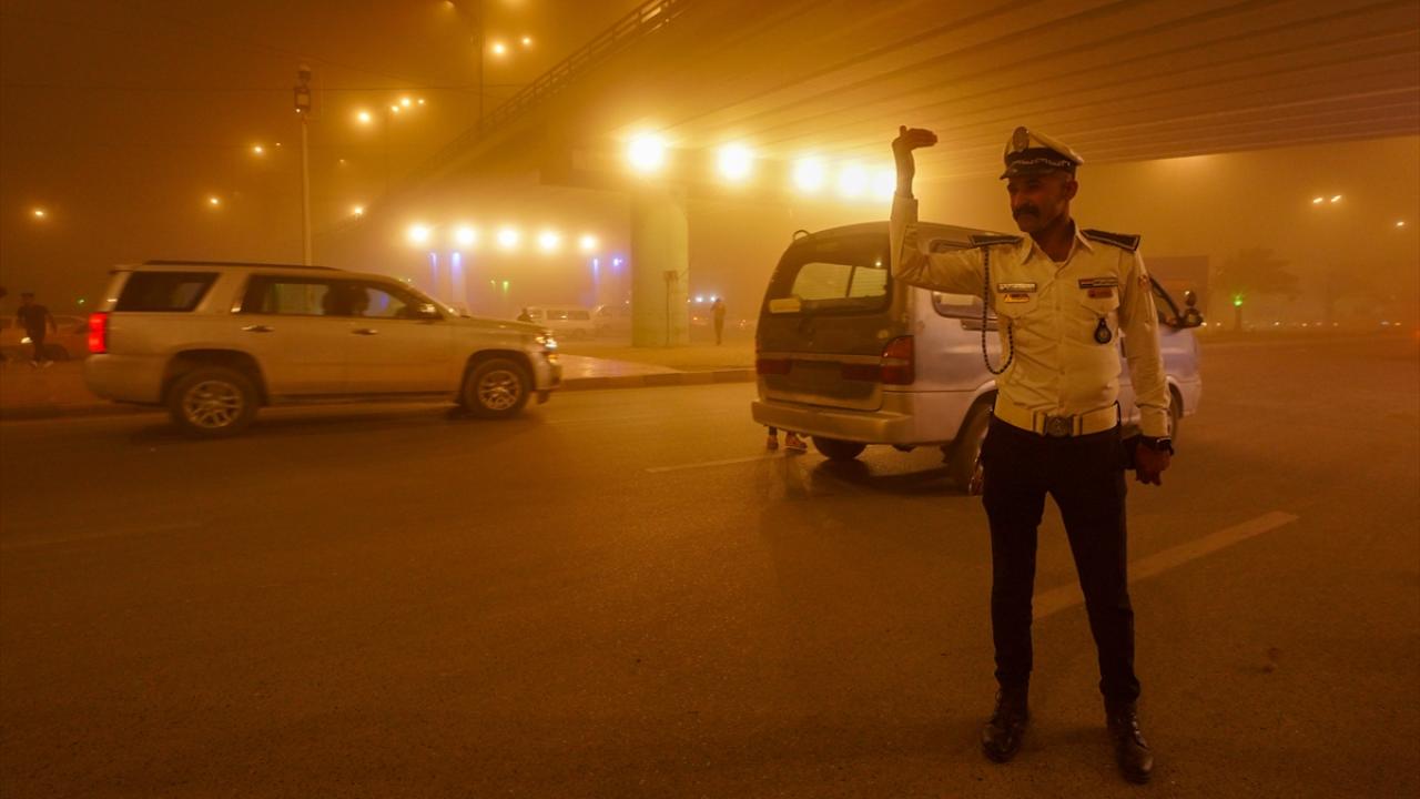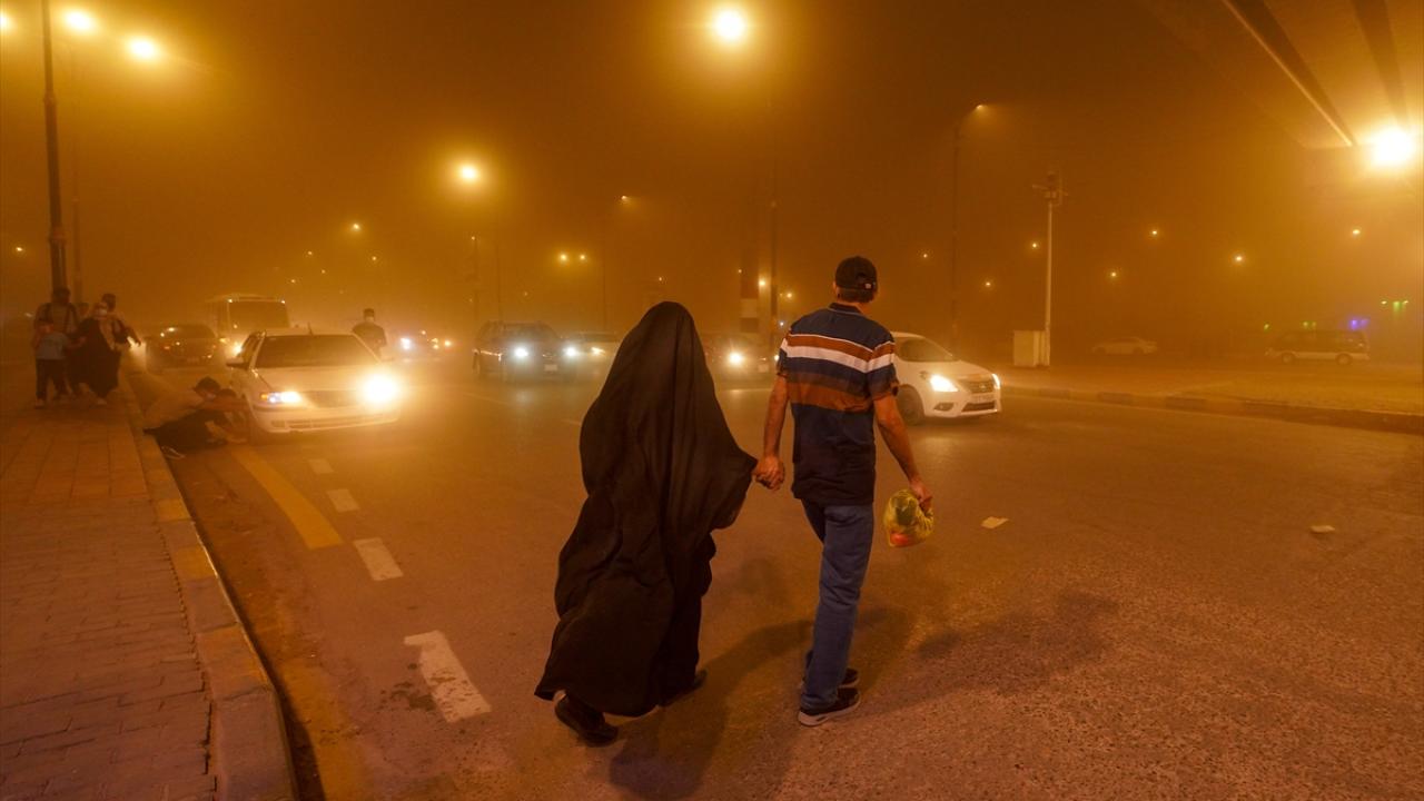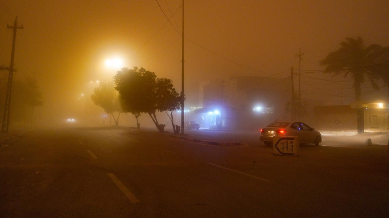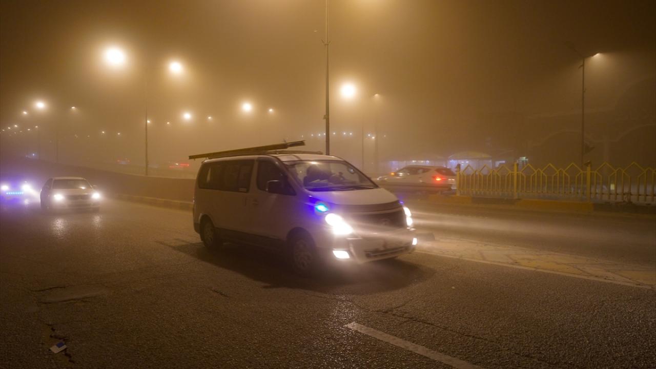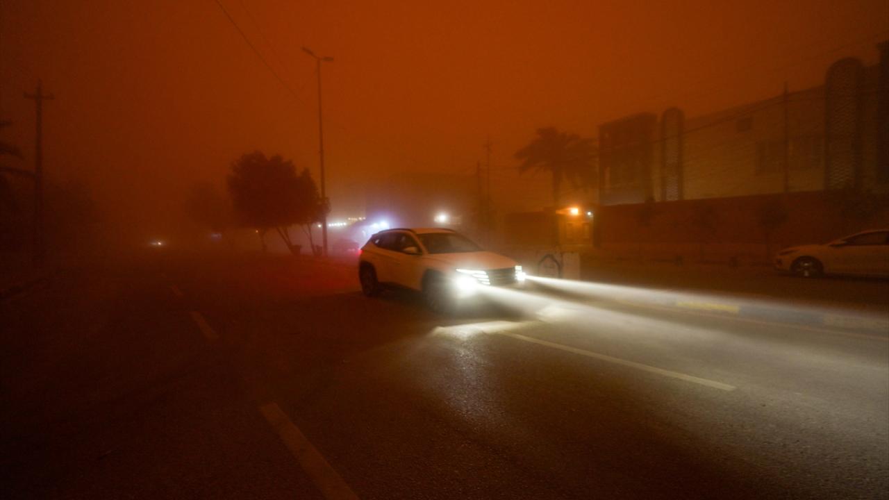 Irak'ın Necef kentinde etkili olan kum fırtınası yaşamı olumsuz etkiledi. Kum fırtınası nedeniyle trafikte görüş mesafesi kısaldı.