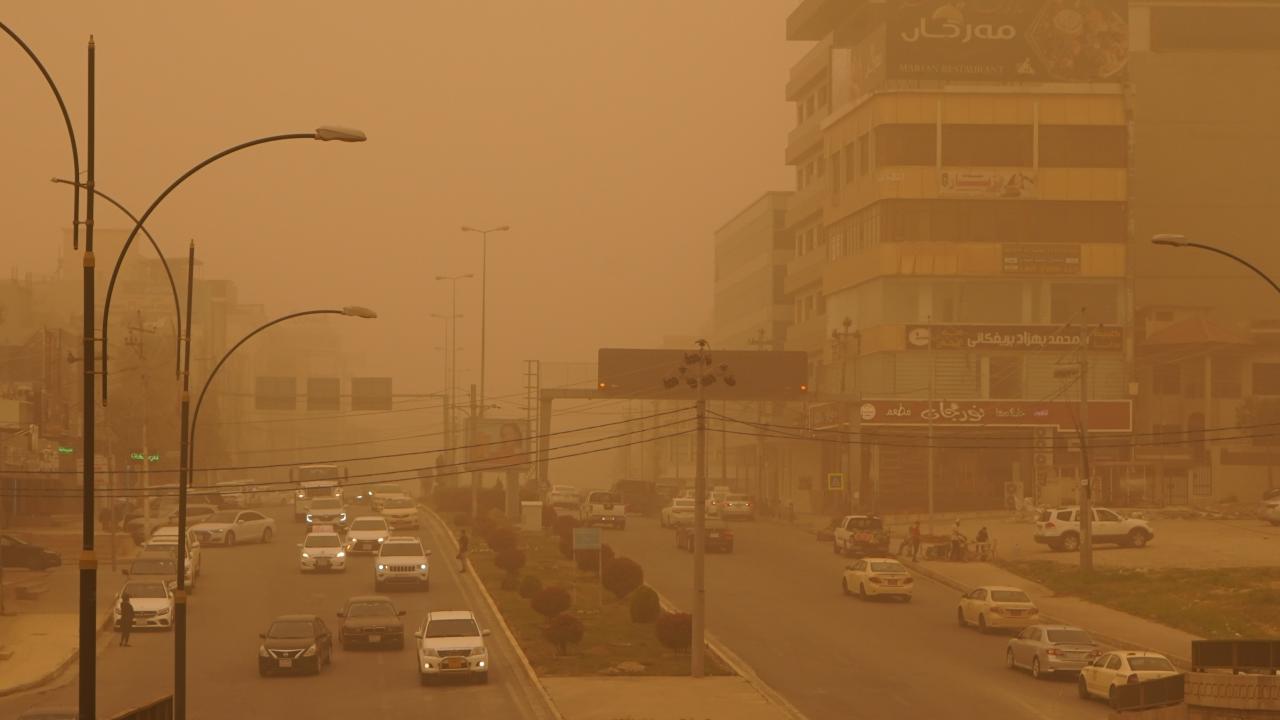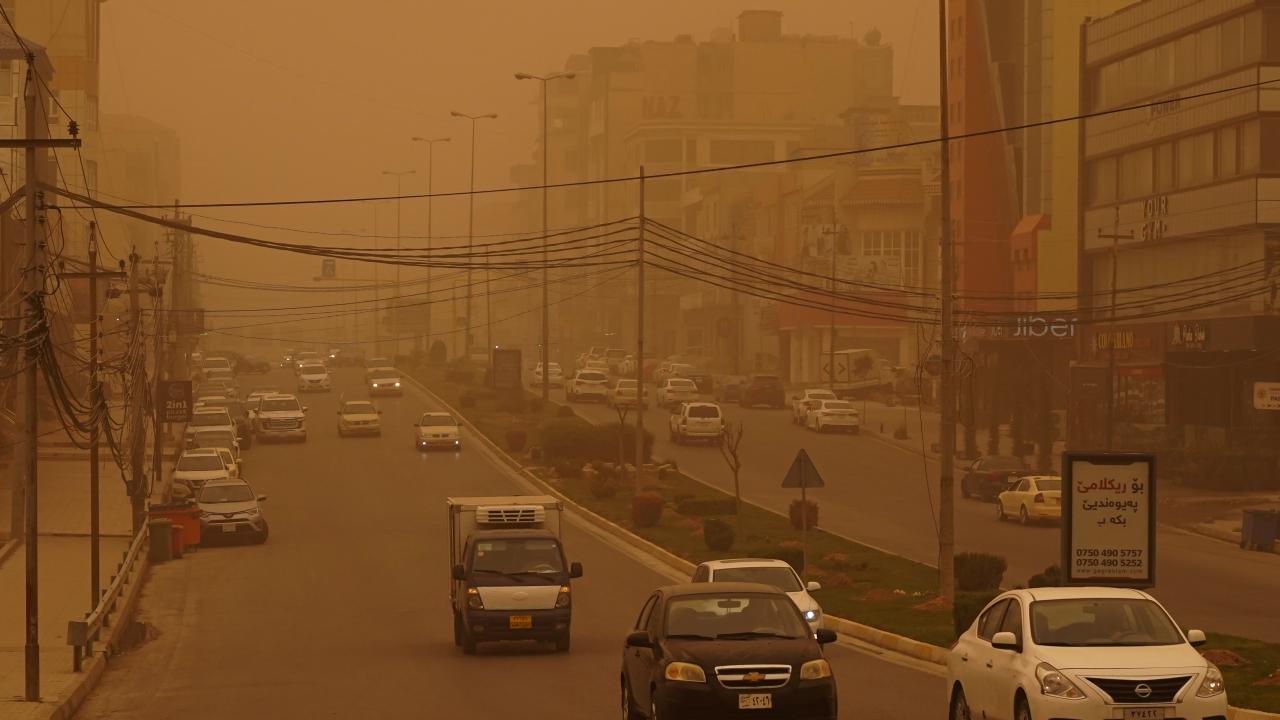 Irak'ın Duhok kentinde etkili olan kum fırtınası yaşamı olumsuz etkiledi.