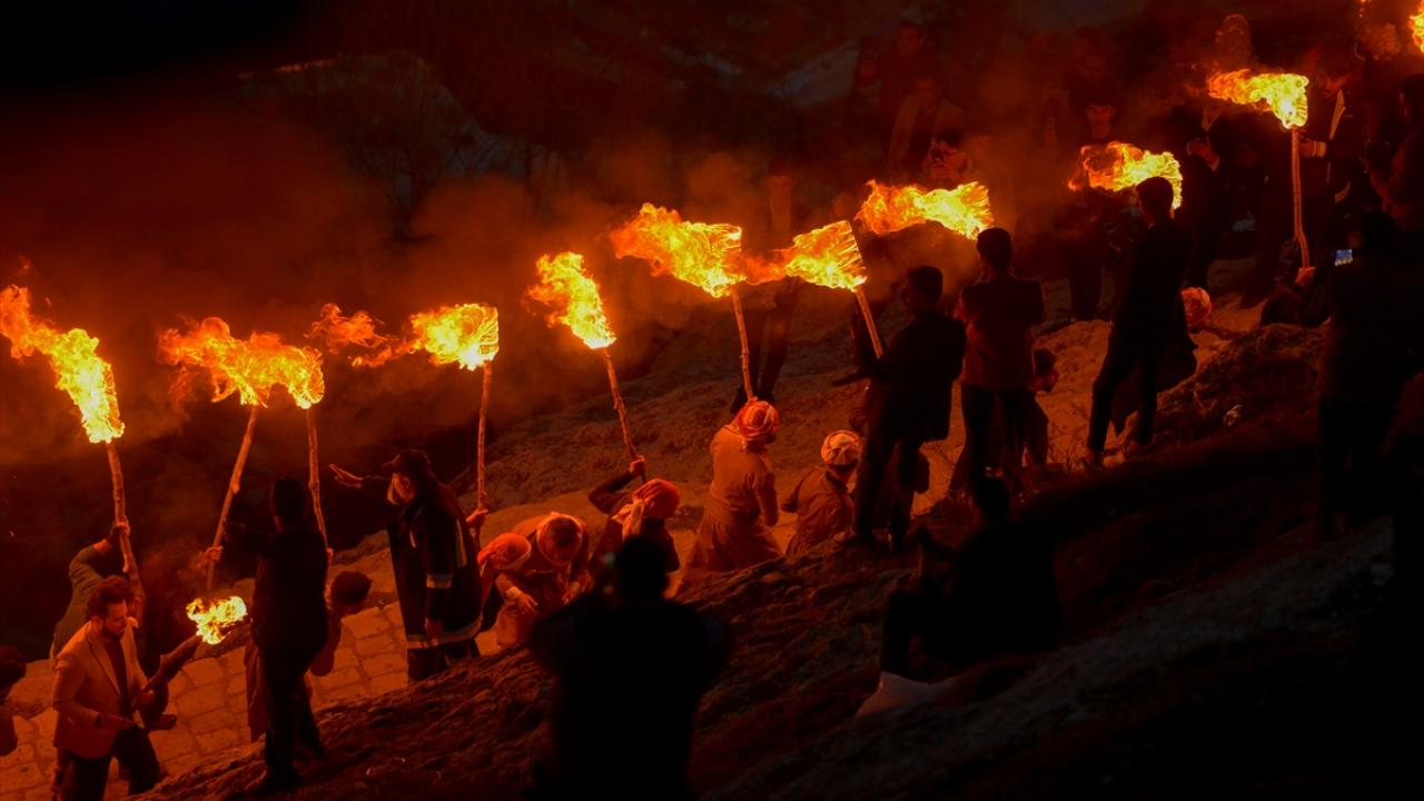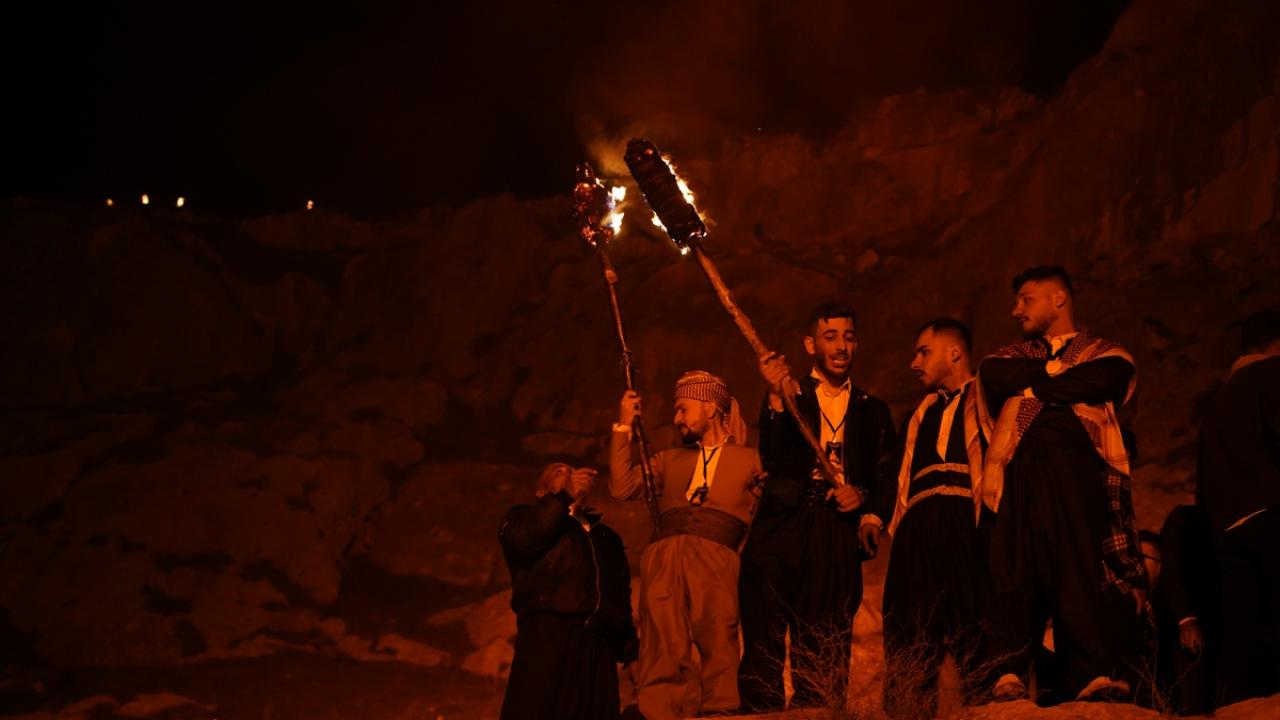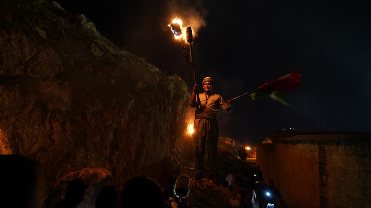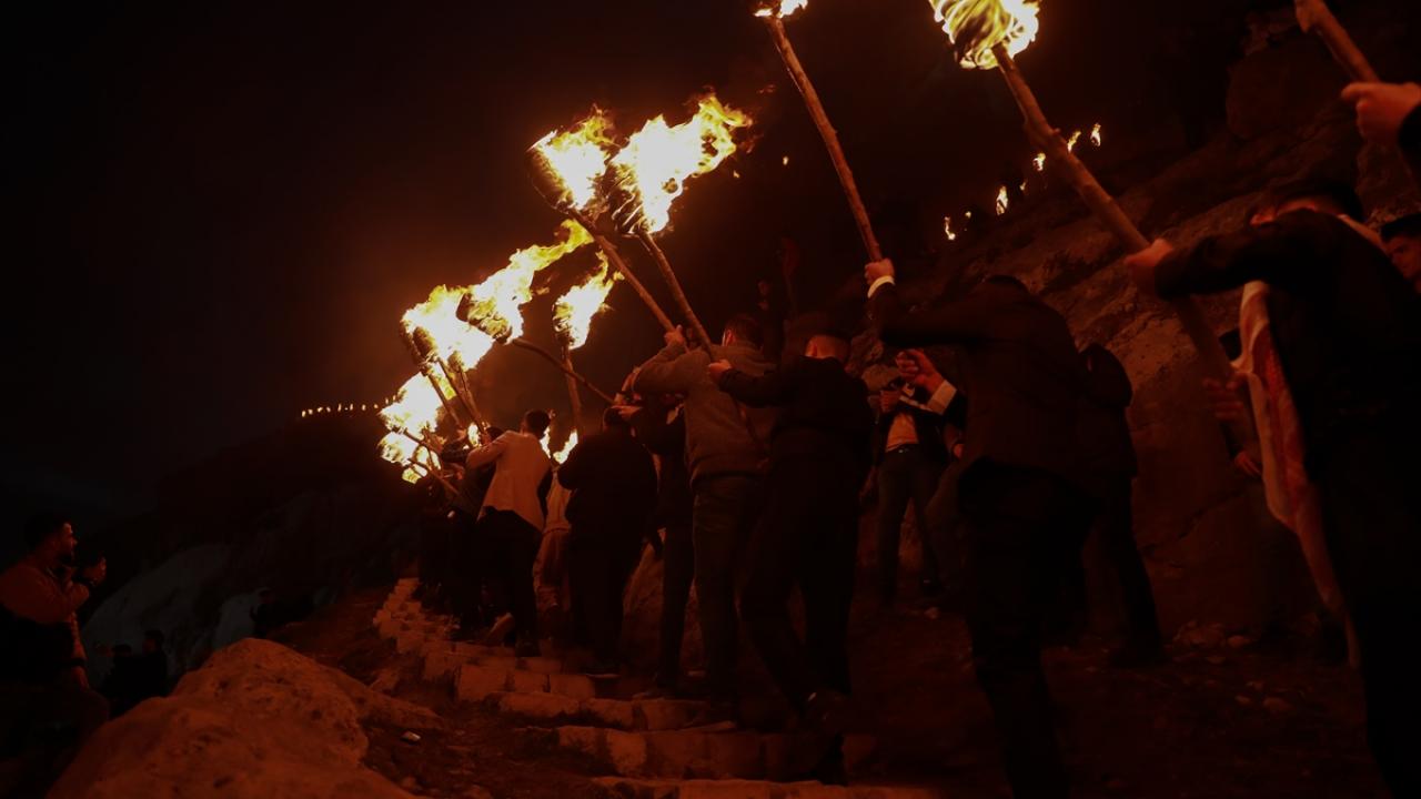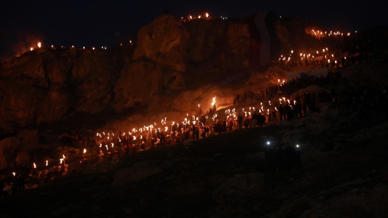 Kutlamalara katılan Iraklılar, ellerine aldıkları meşalelerle Kele Dağı`na doğru yürüdü.