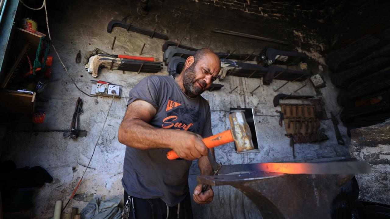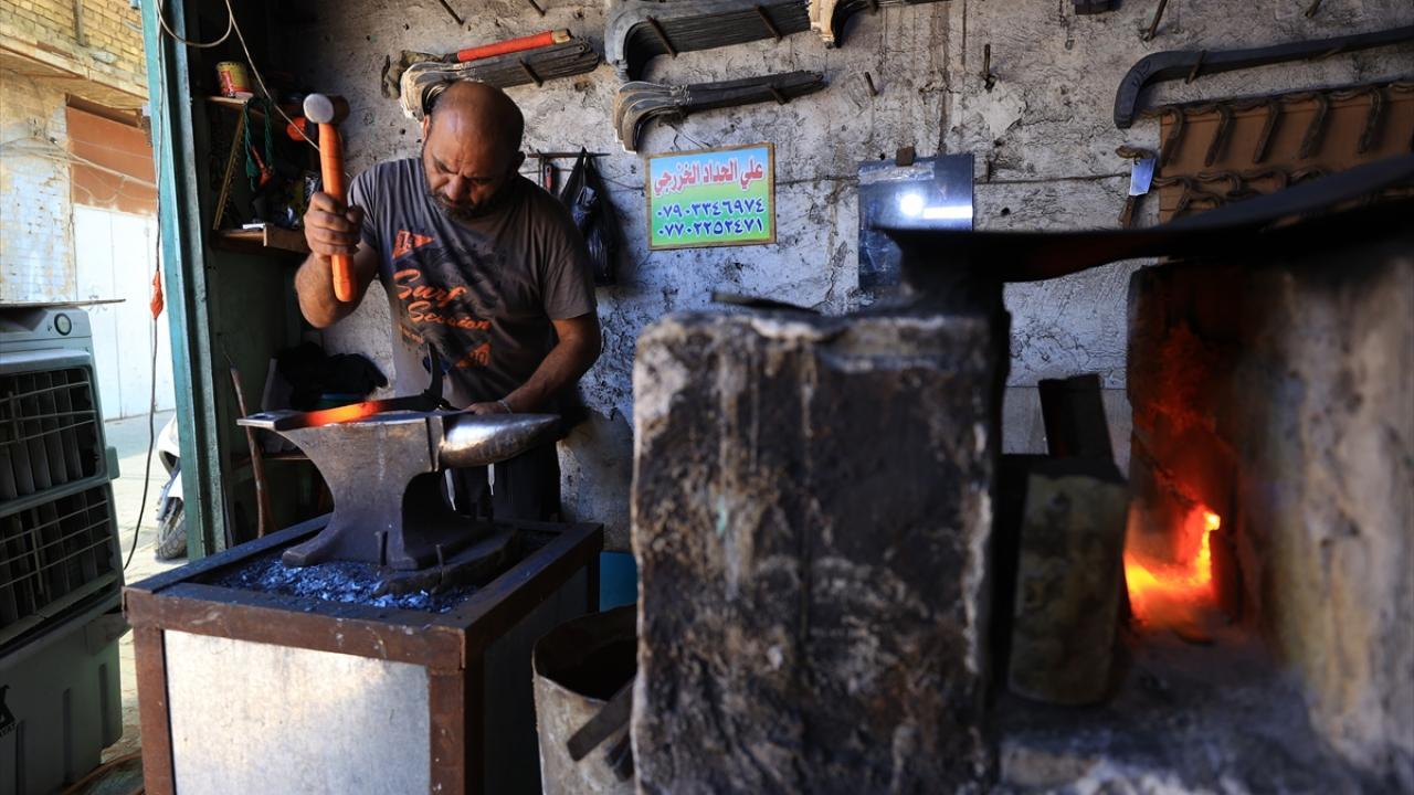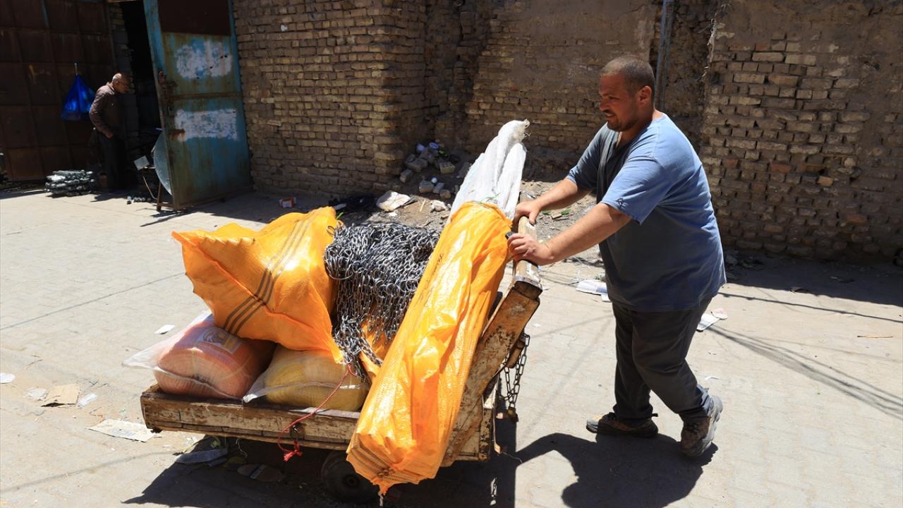 Başkent Bağdat`ta inşaat işçisi, demirci, fırıncı ve seyyar satıcılık gibi mesleklerde çalışan Iraklılar, kavurucu sıcaklara rağmen yoğun mesai yapıyor.