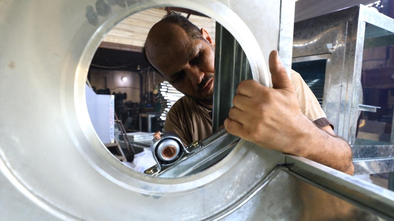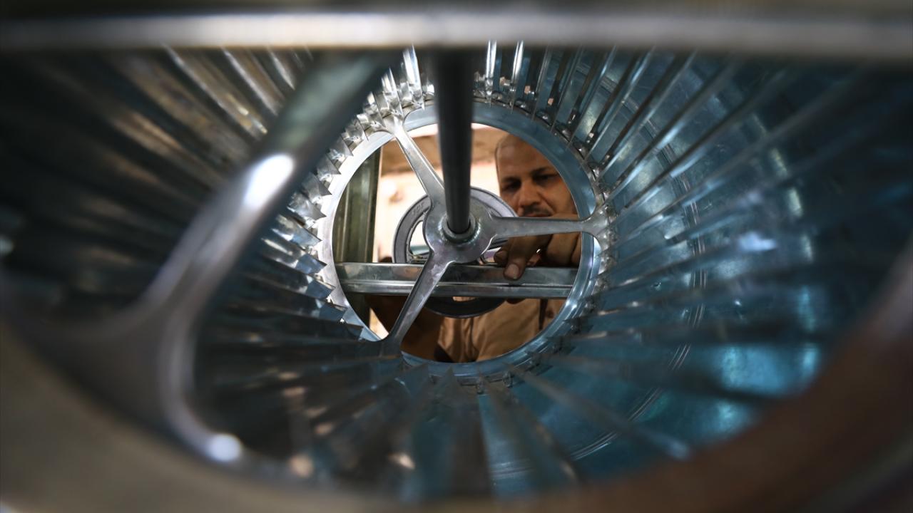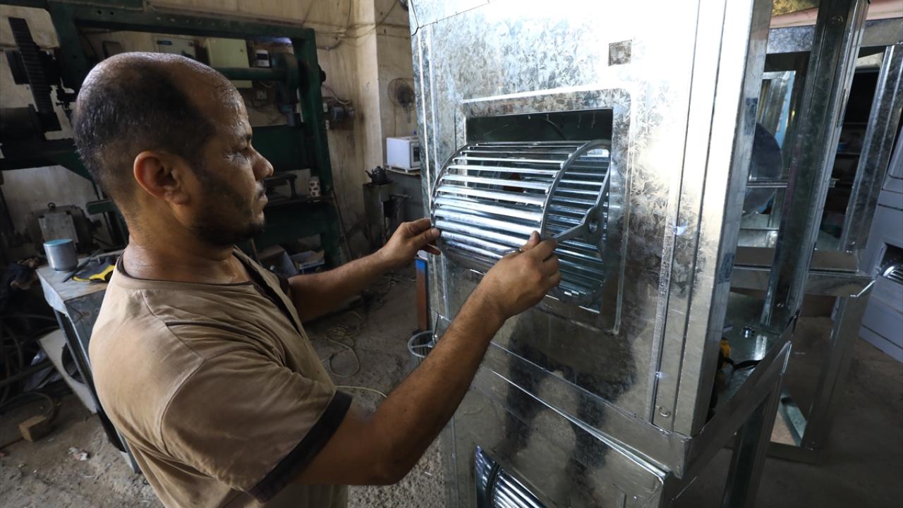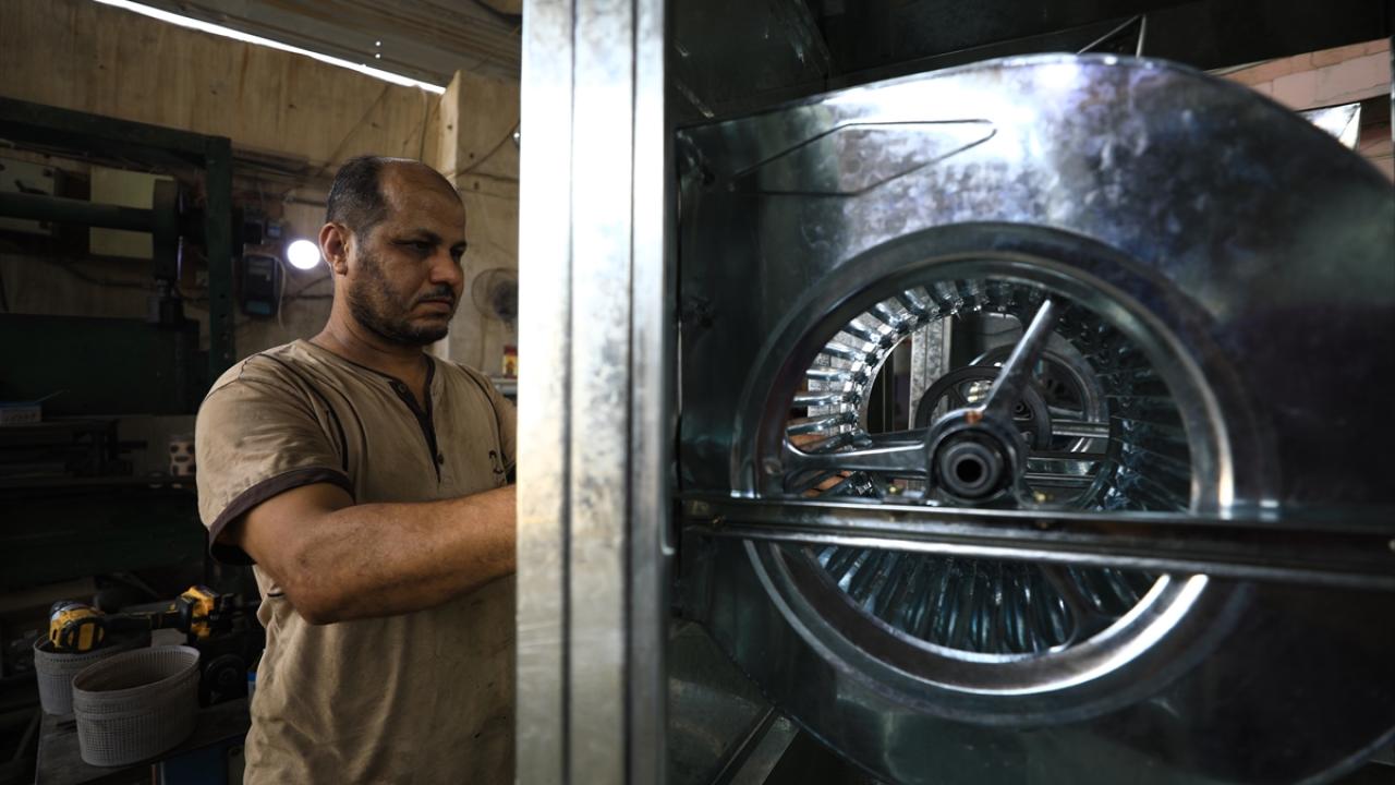 Başkent Bağdat’taki sulu klima imalatı yapan bir işletmenin çalışanları, artan talebi karşılamaya çalışıyor.