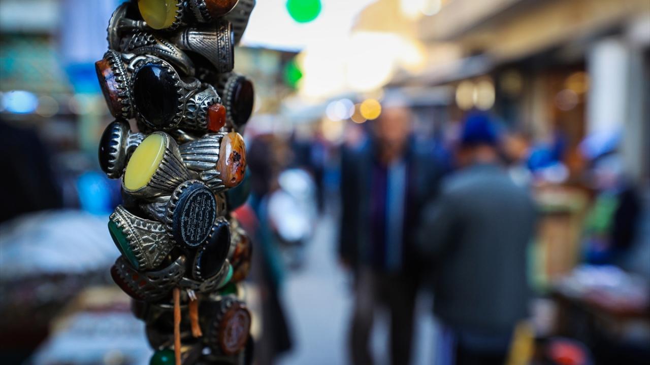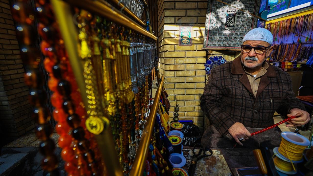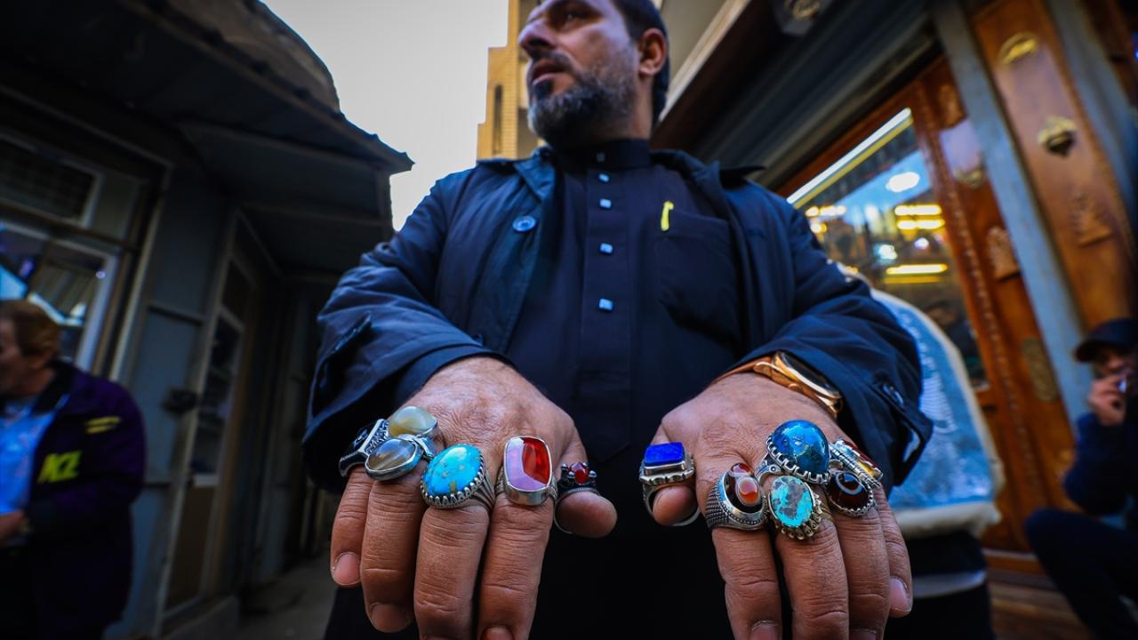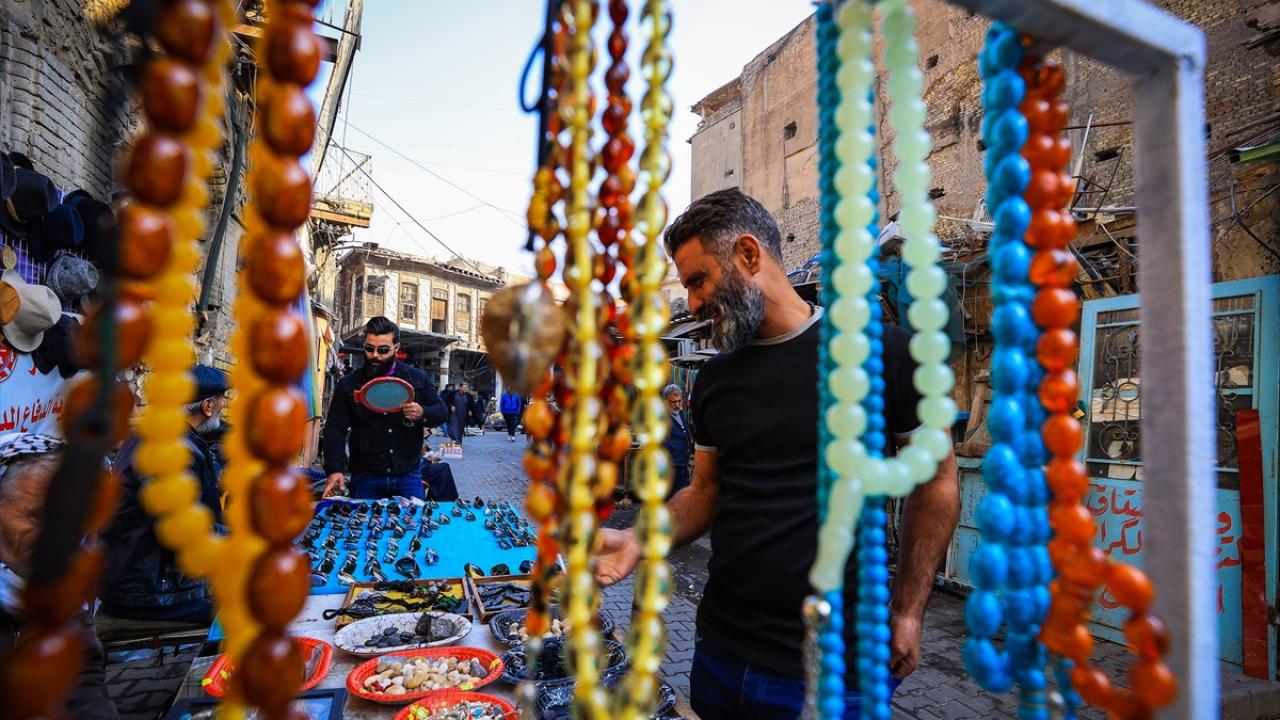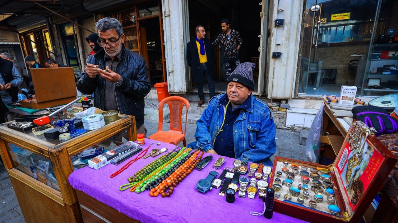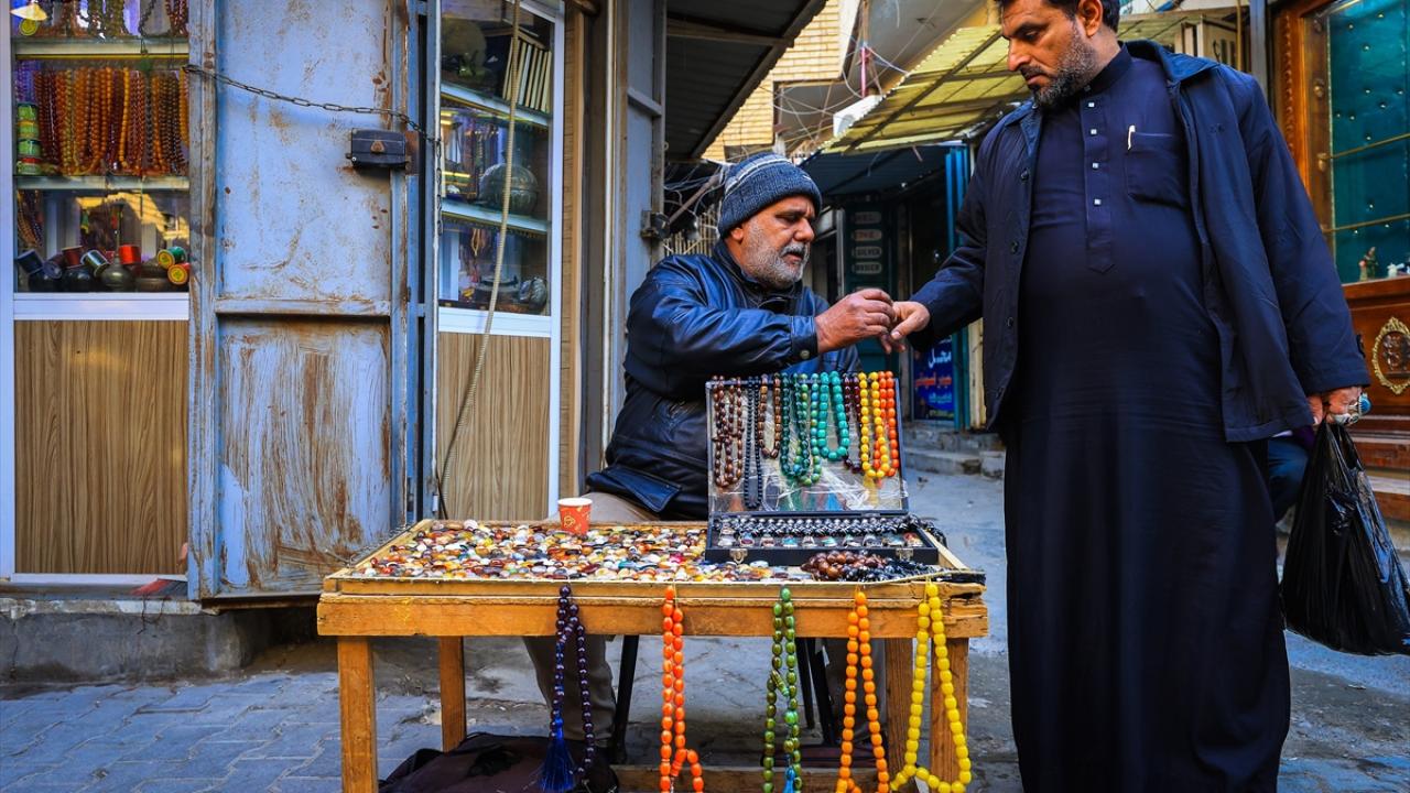 Başkent Bağdat`ta tezgahlarını açan tesbih ve yüzük satıcıları, oltu taşından kehribara, eski dönemlere ait taş, gümüş yüzükler ve tesbihlerden farklı çeşitlere kadar çok sayıda ürünü sergiliyor.