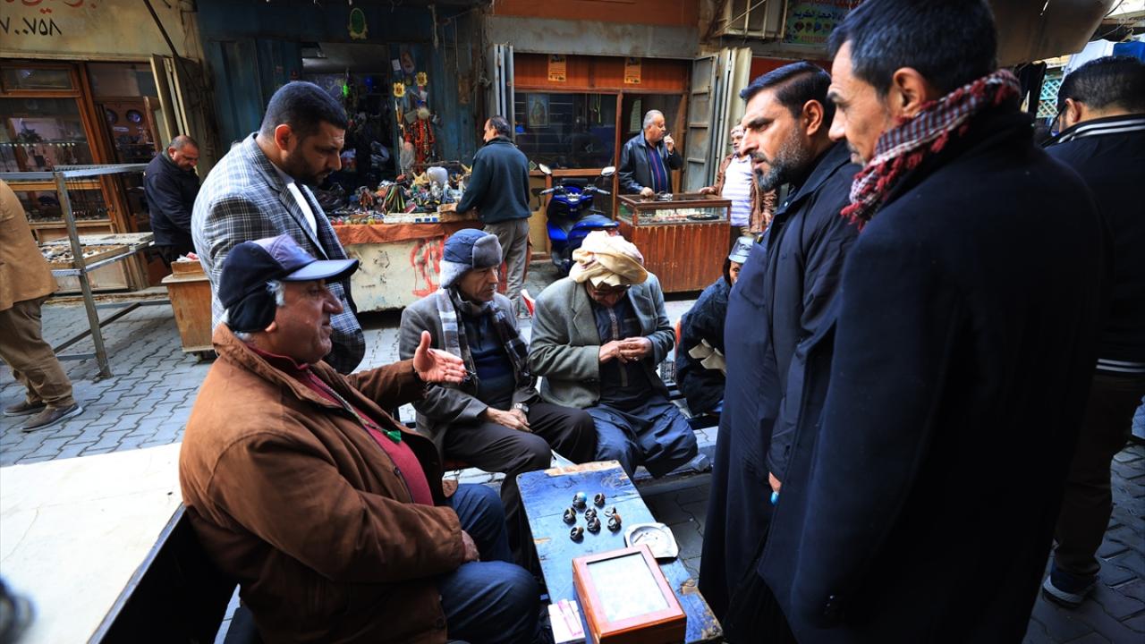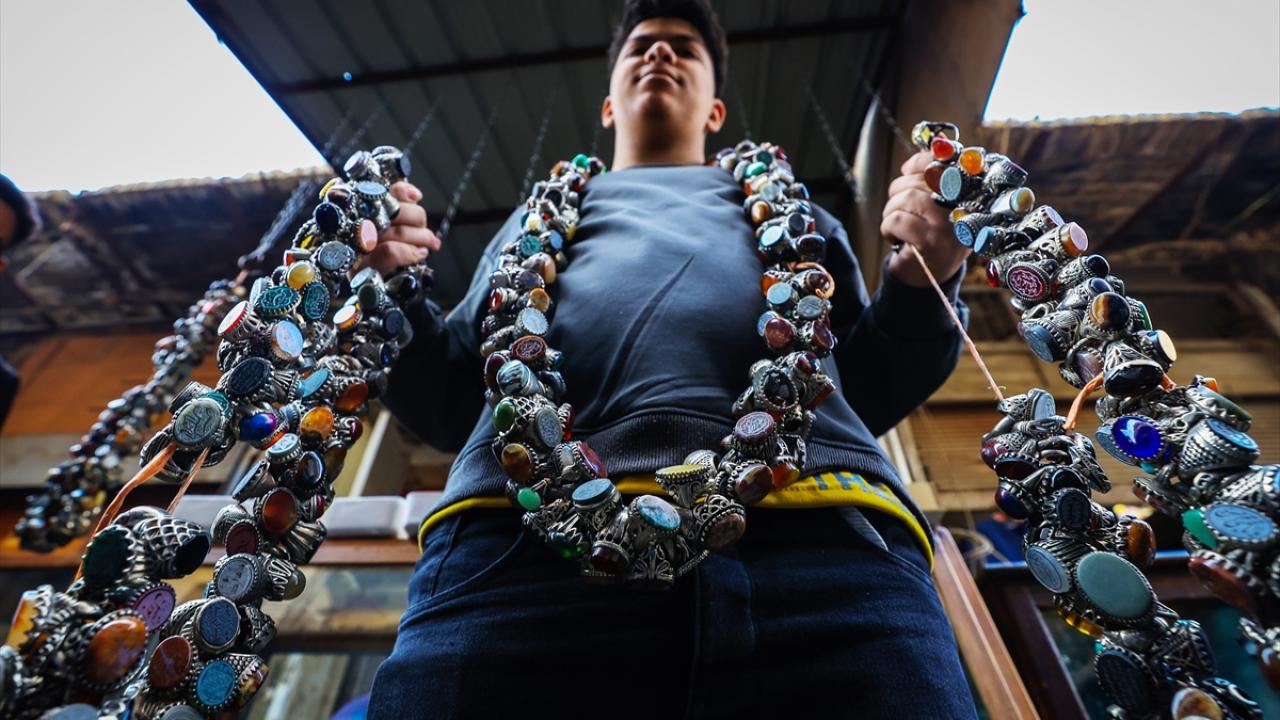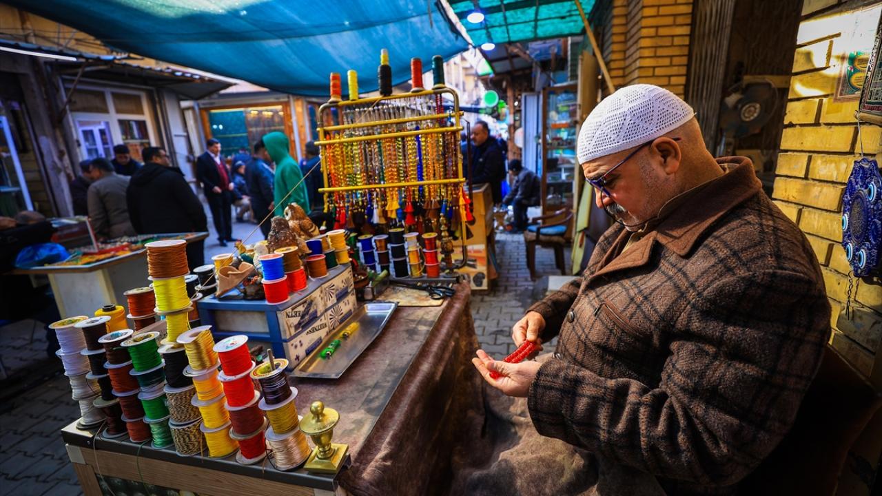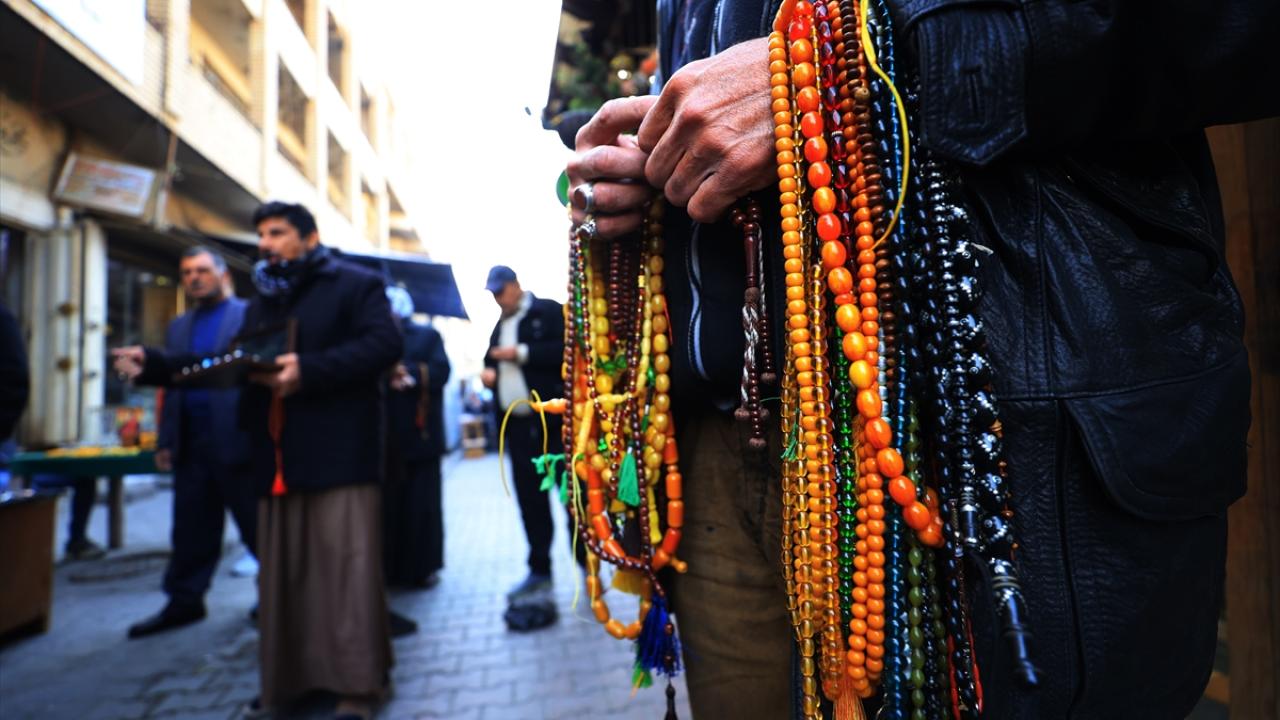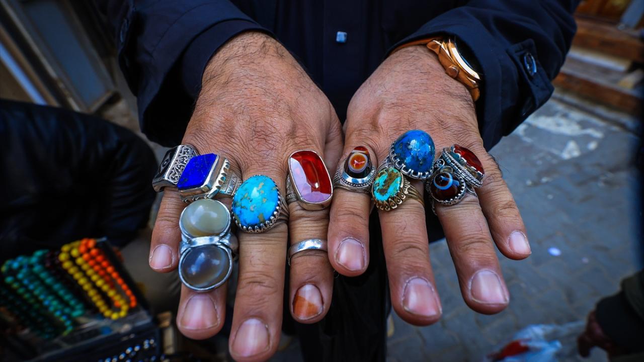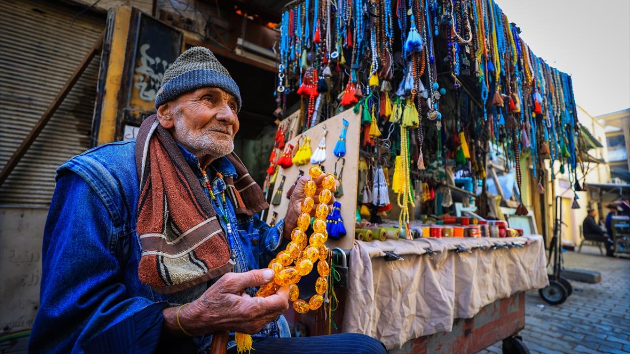 Başkent Bağdat`ta tezgahlarını açan tesbih ve yüzük satıcıları, oltu taşından kehribara, eski dönemlere ait taş, gümüş yüzükler ve tesbihlerden farklı çeşitlere kadar çok sayıda ürünü sergiliyor.