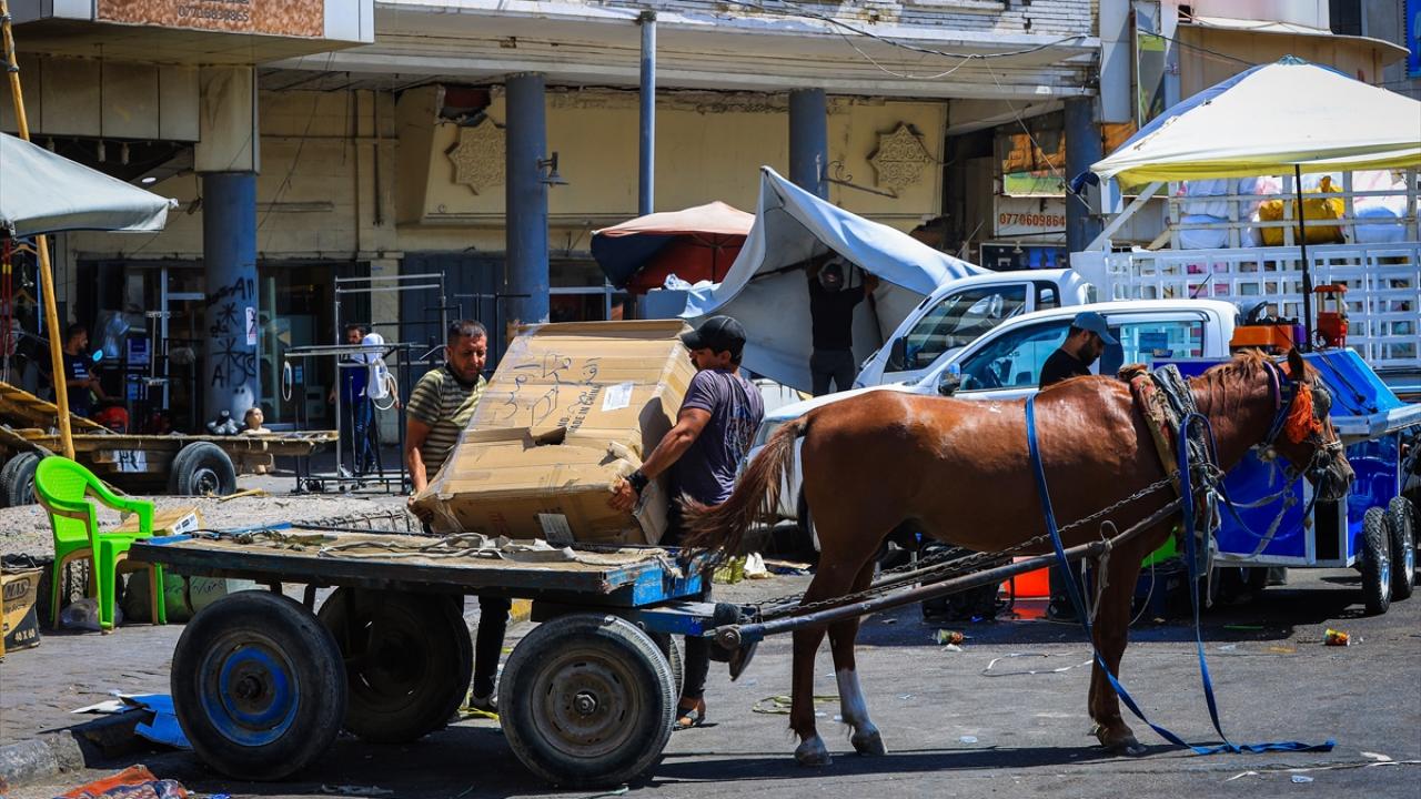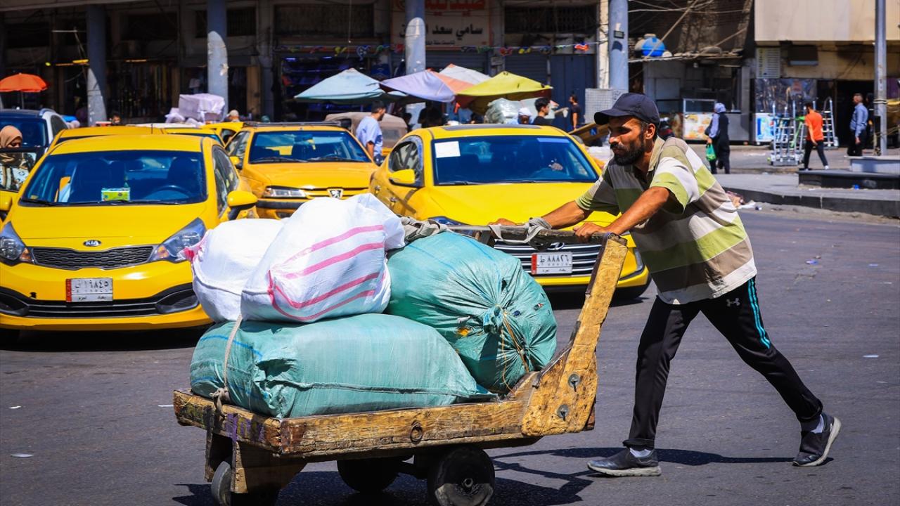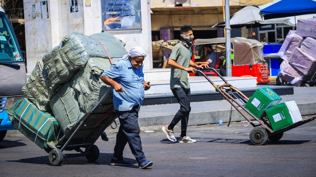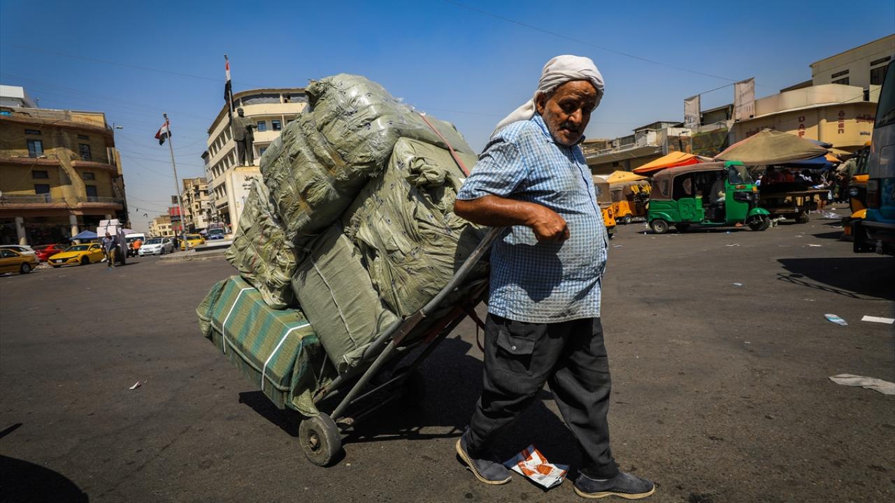 Irak'ta hiçbir sosyal güvencesi olmayan yevmiyeli işçiler, kavurucu yaz sıcaklarında günde yaklaşık 10 saat sırtlarında ağır yük taşıyarak evlerini geçindirmeye çalışıyor.