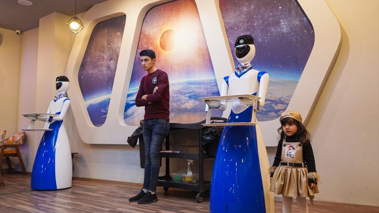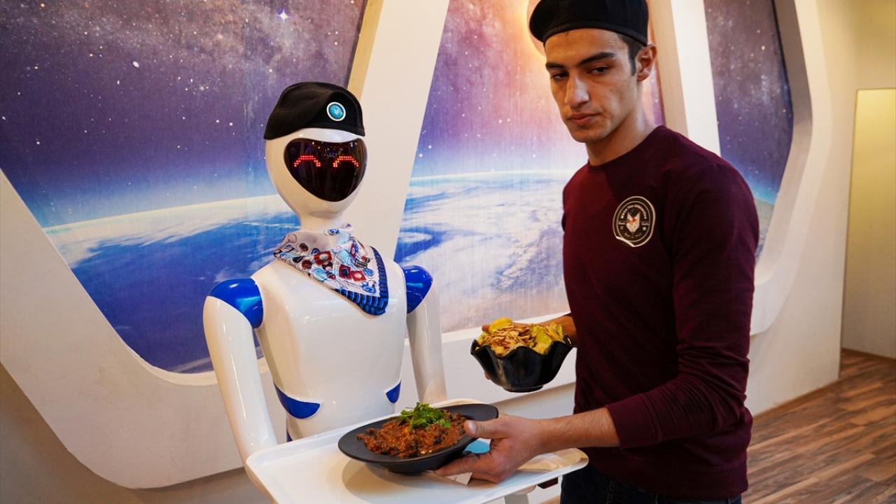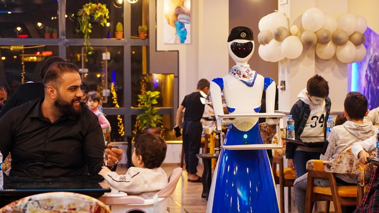 Siparişten servise kadar müşterilere her türlü hizmeti sunan robotlar 15 çeşitten oluşan menüyü servis ediyor.