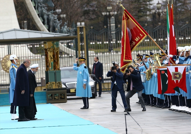 Türkiye Cumhurbaşkanı Recep Tayyip Erdoğan, İran Cumhurbaşkanı Hasan Ruhani’yi, Cumhurbaşkanlığı Külliyesi’nde resmi törenle karşıladı.