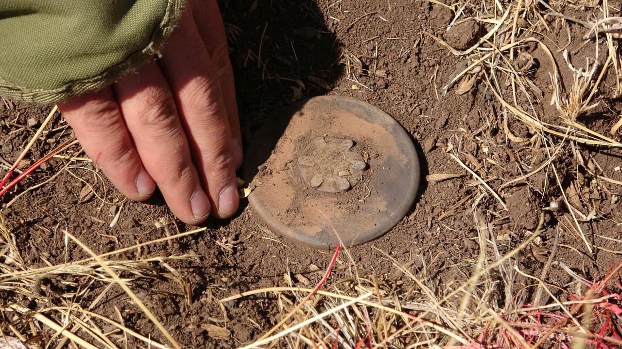 Mayınları tespit eden ekipler, daha sonra titiz çalışmanın sonucunda mayını emniyetli bir şekilde etkisiz hale getiriyor.