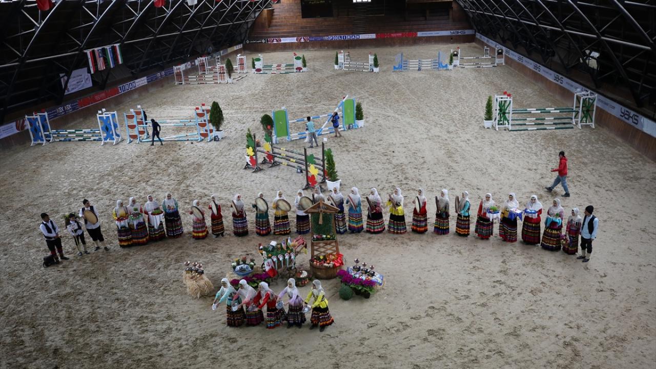 Yarış öncesi yapılan etkinlikte İranlı kadınlar, yöresel kıyafetleriyle def çalıp gösteri sundu.