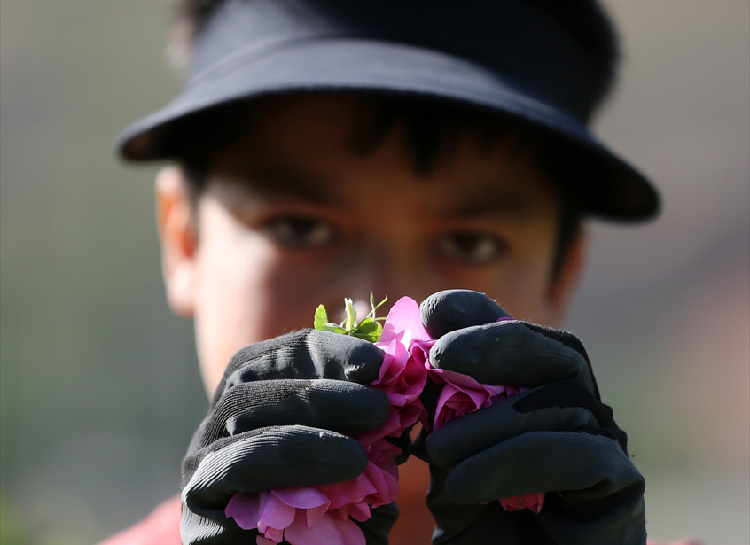Gül toplama işinde çalışanların büyük çoğunluğu Afgan mültecilerden oluşken, gül bahçelerine yakın yerlerden ve çevre şehirlerden gelen işçileri görmek de mümkün.