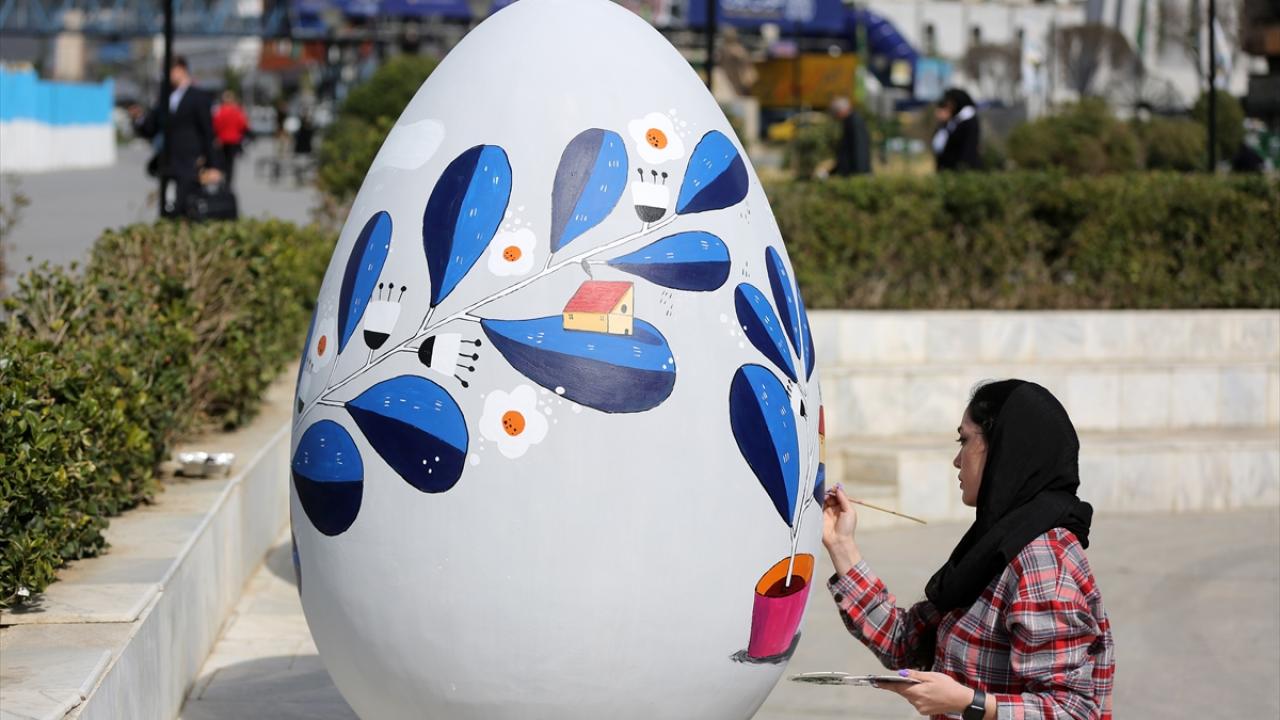 İran'da Hicri Şemsi takvimine göre 21 Mart günü kutlanacak olan Nevruz bayramı öncesi bir grup sanatçı, başkent Tahran'da Nevruz Bayramı'nın simgesi olan dekoratif yumurtalara renkli çizimler yaparak süsledi.