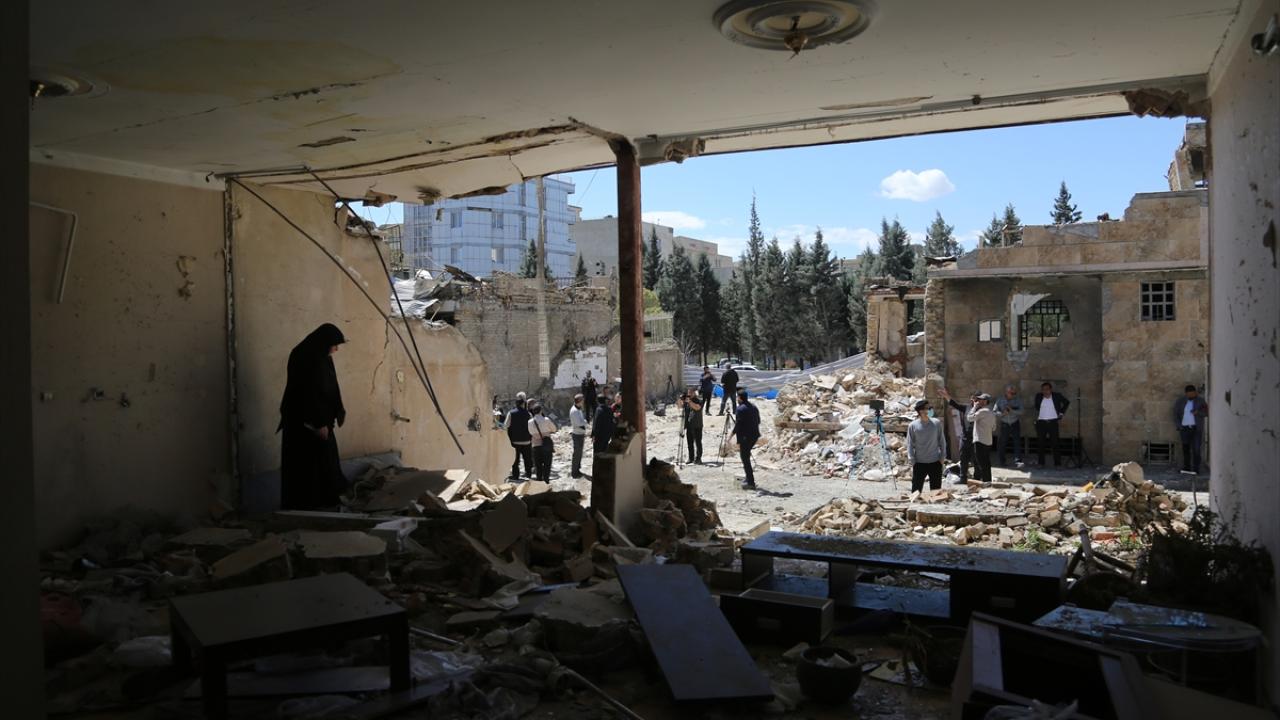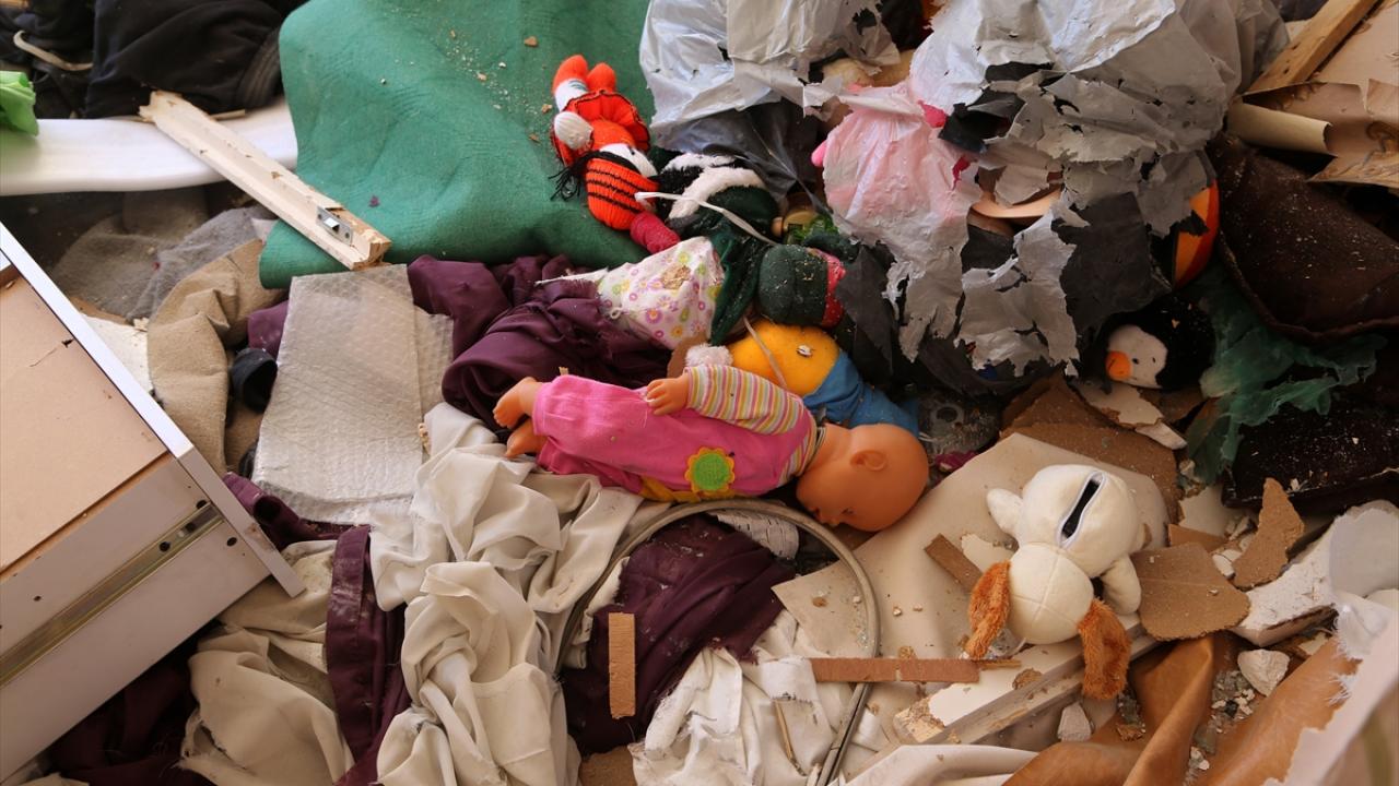 AA ekibi, hedef alınan sivil bölgedeki hasarın boyutunu görüntüledi.