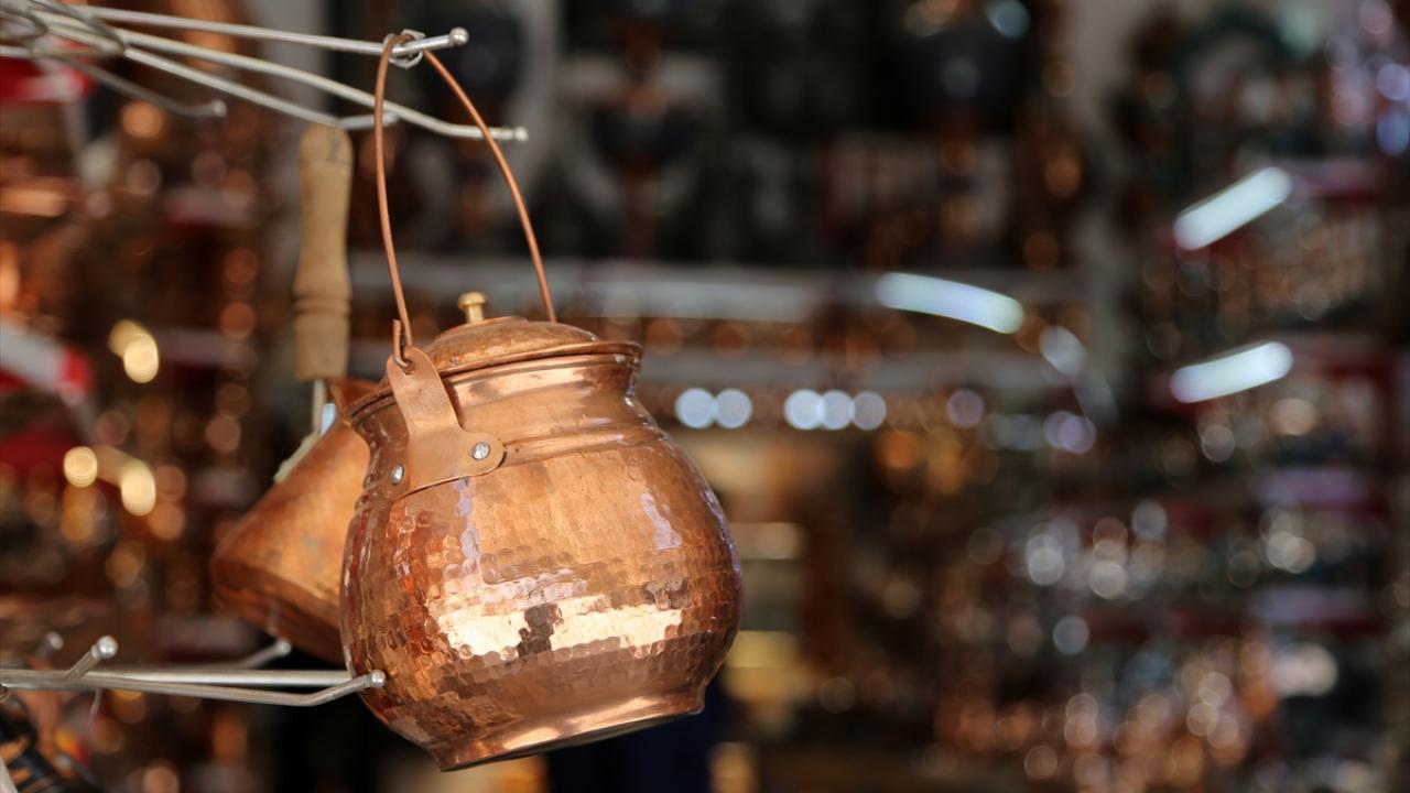 Pazarda sadece bakır kap ve süs eşyası satan dükkanlar varlığını sürdürüyor.